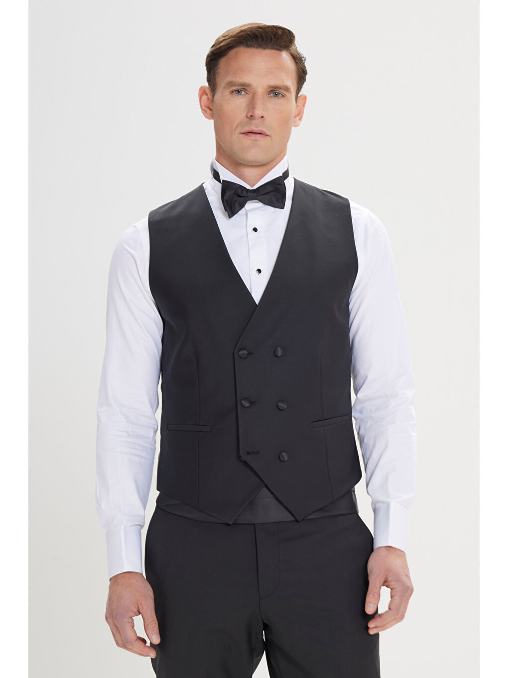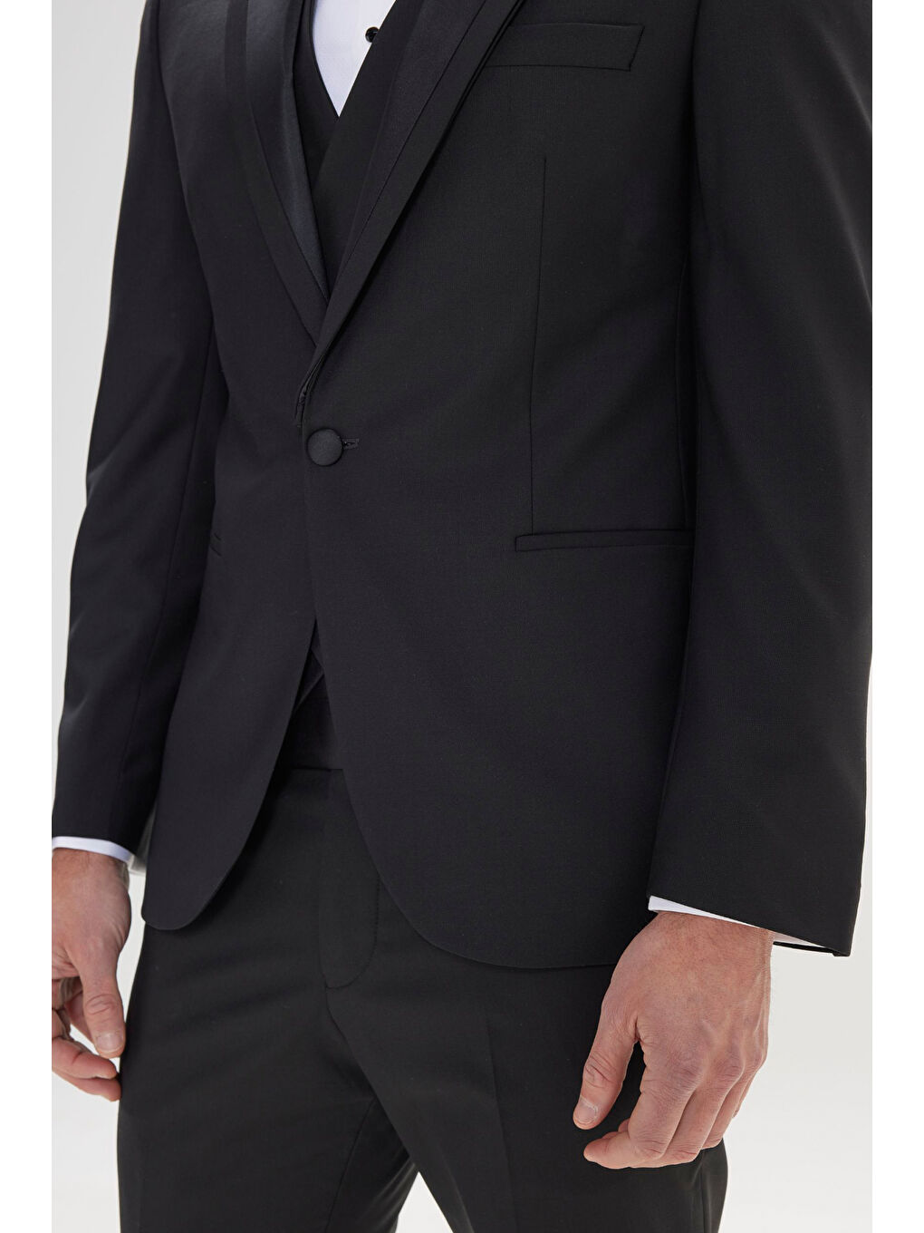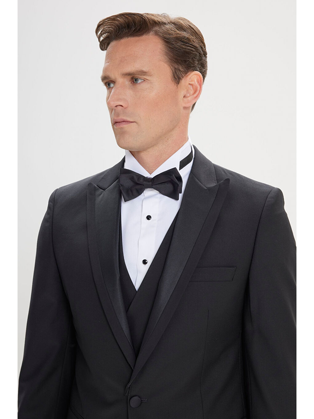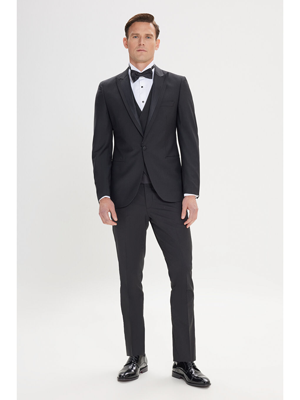 کت و شلوار تاکسیدو مردانه مشکی، یقه چلچلهای، اسلیم کات، جلیقه ساده کلاسیک