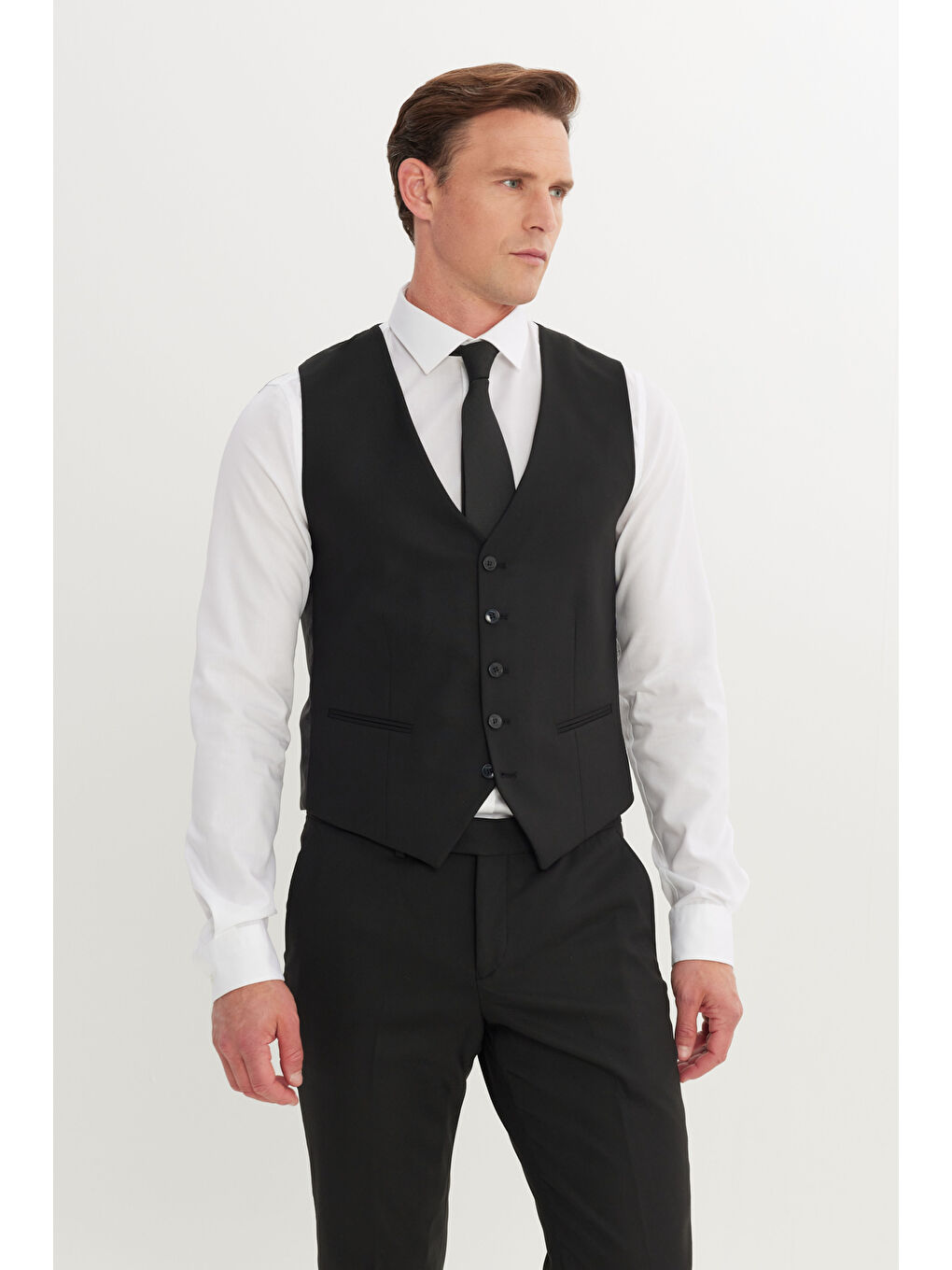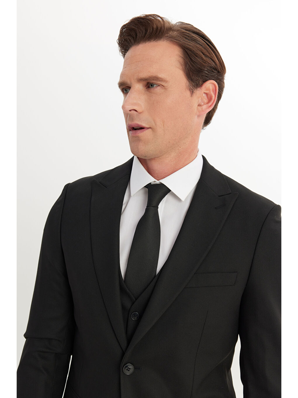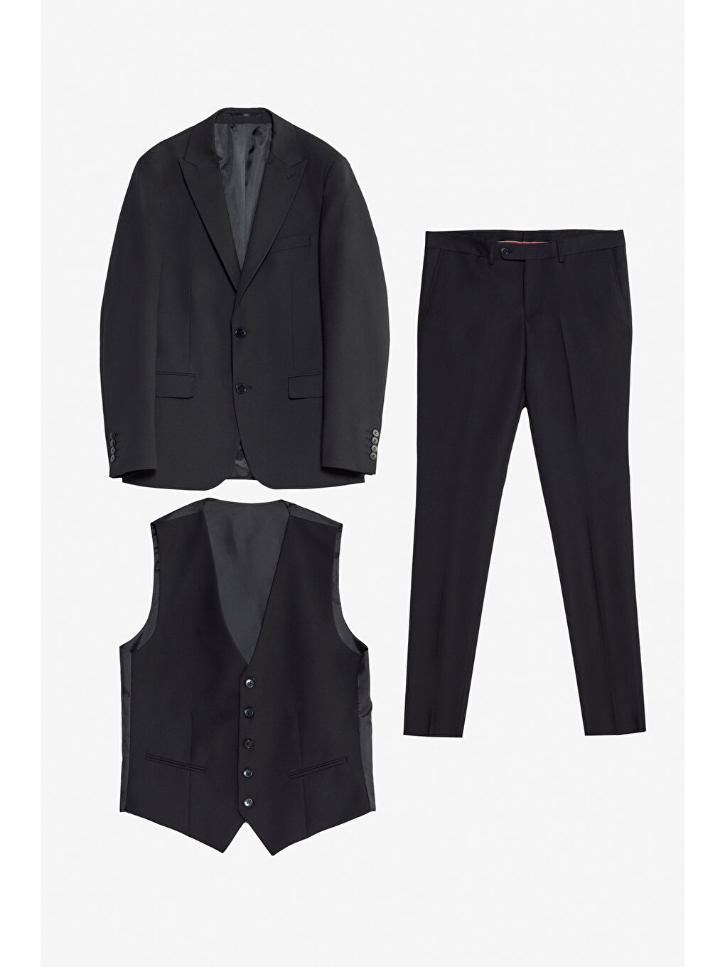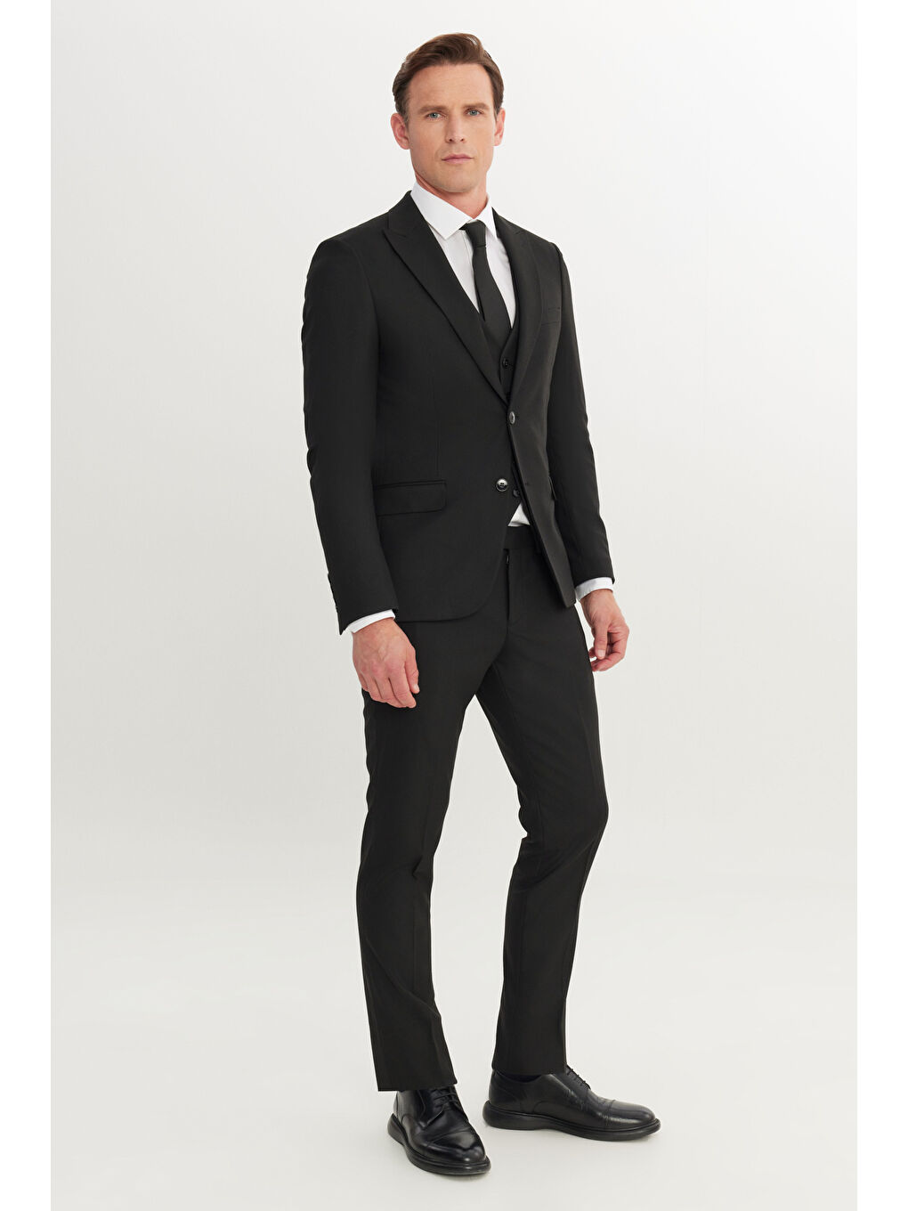 کت و شلوار جلیقه جیبی با یقه باریک مردانه مشکی باریک