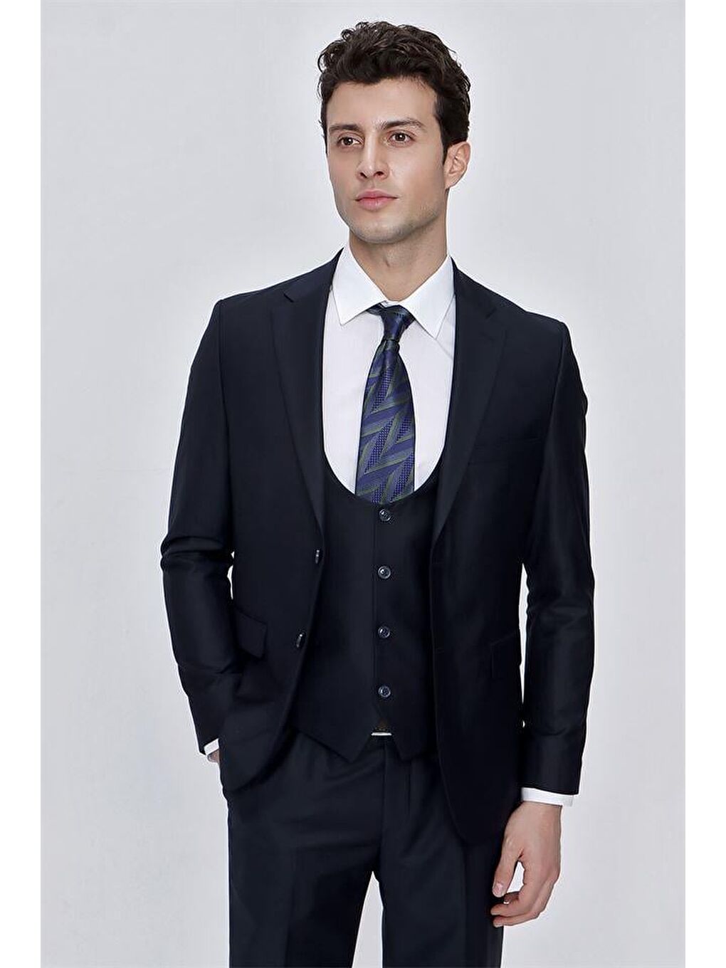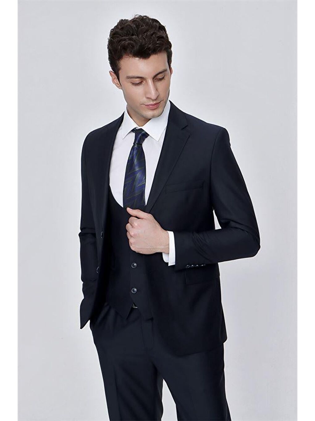 جلیقه آستردار یقه مونو سرمهای ۶ دراپ، کت و شلوار اسلیم فیت، کد ۱۰۰۱۲۲۵۱۸۶