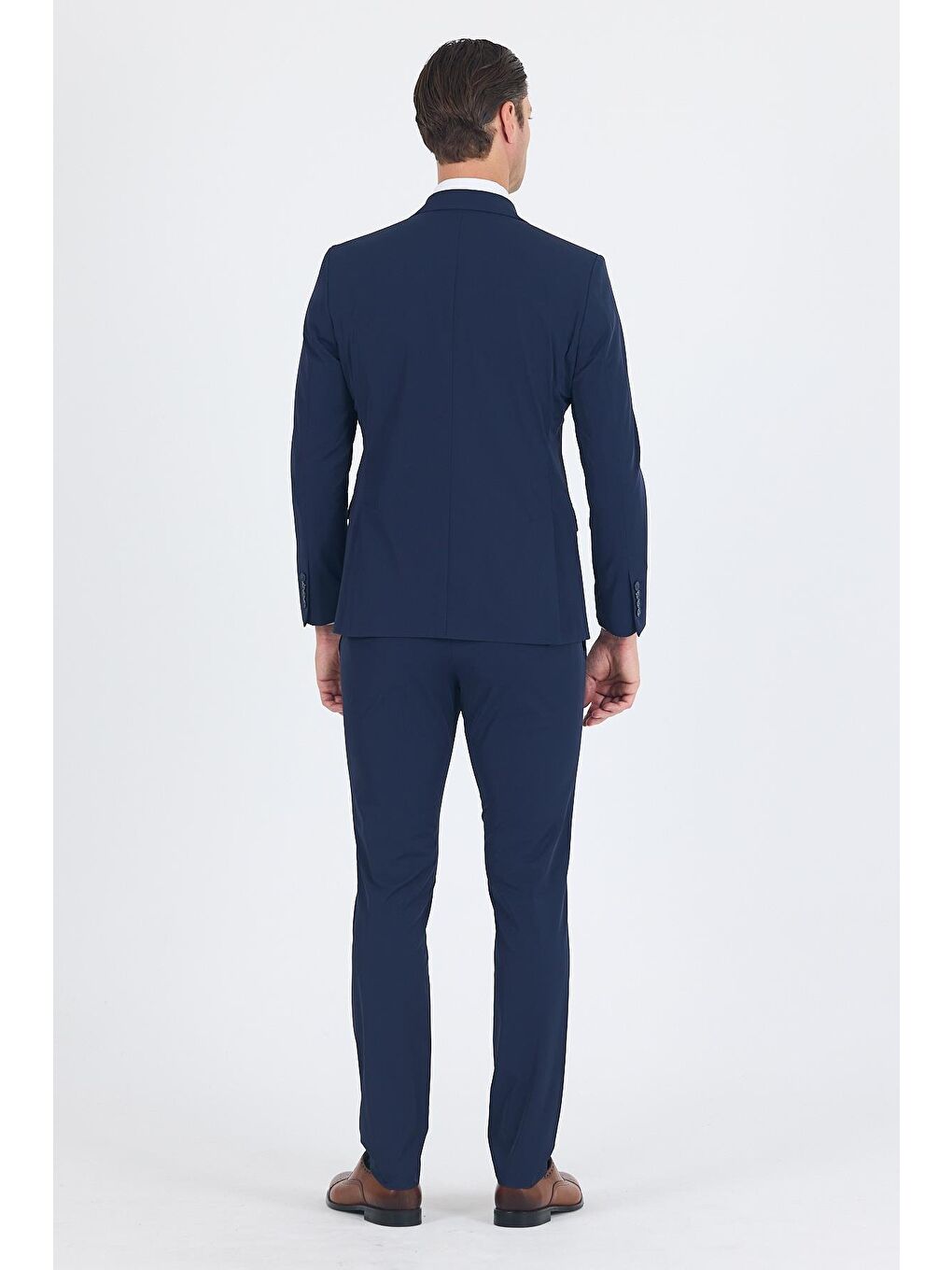 کت و شلوار تک یقه سرمهای، نیم آستر، سایز ۶، کمر کشی، اسلیم فیت، کد ۱۰۰۱۲۵۰۱۲۱