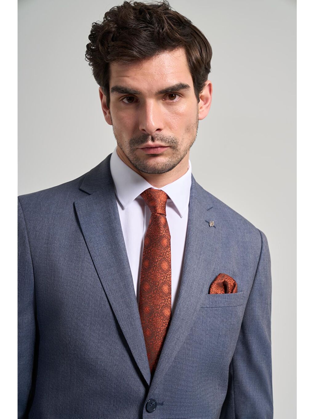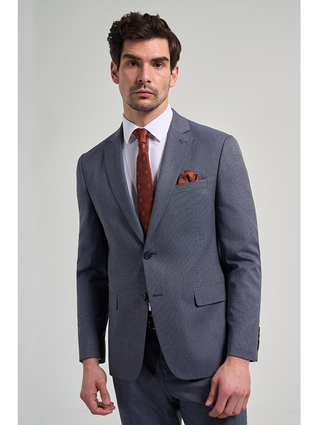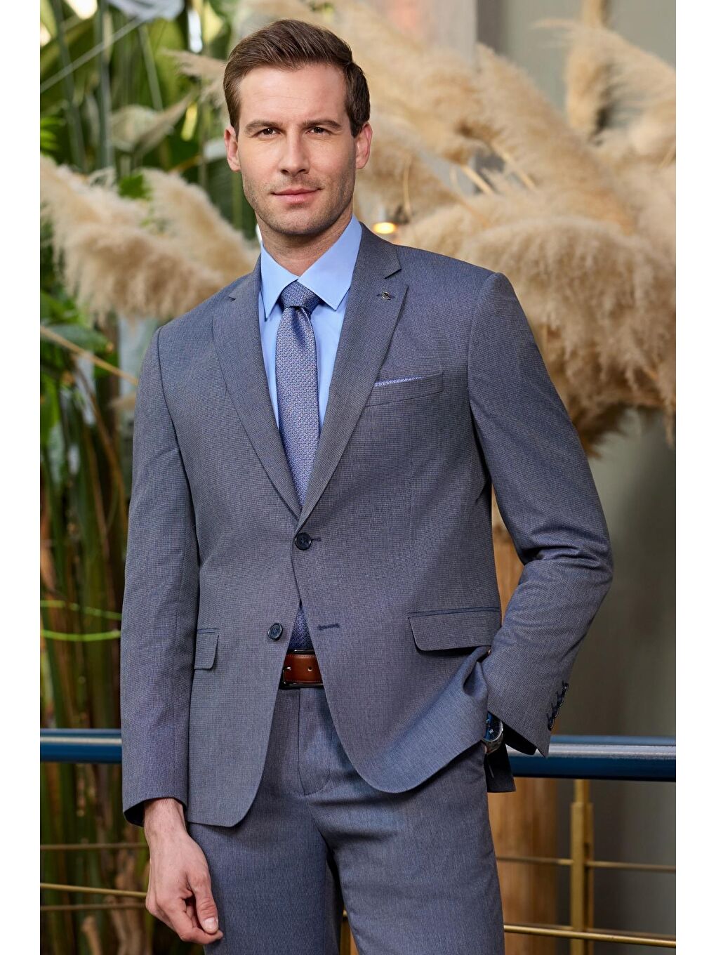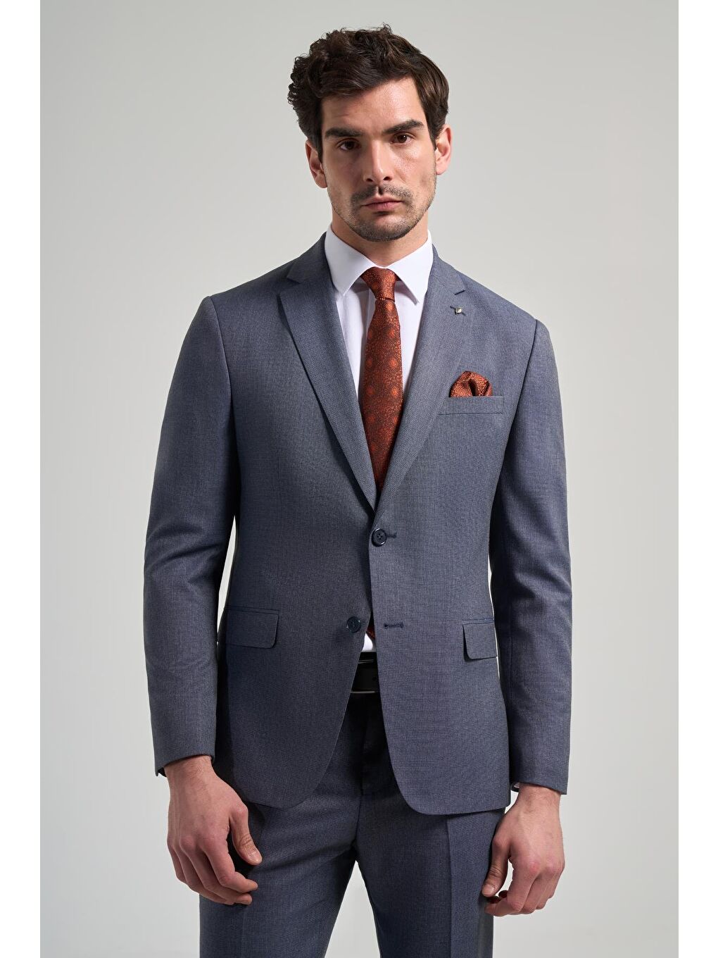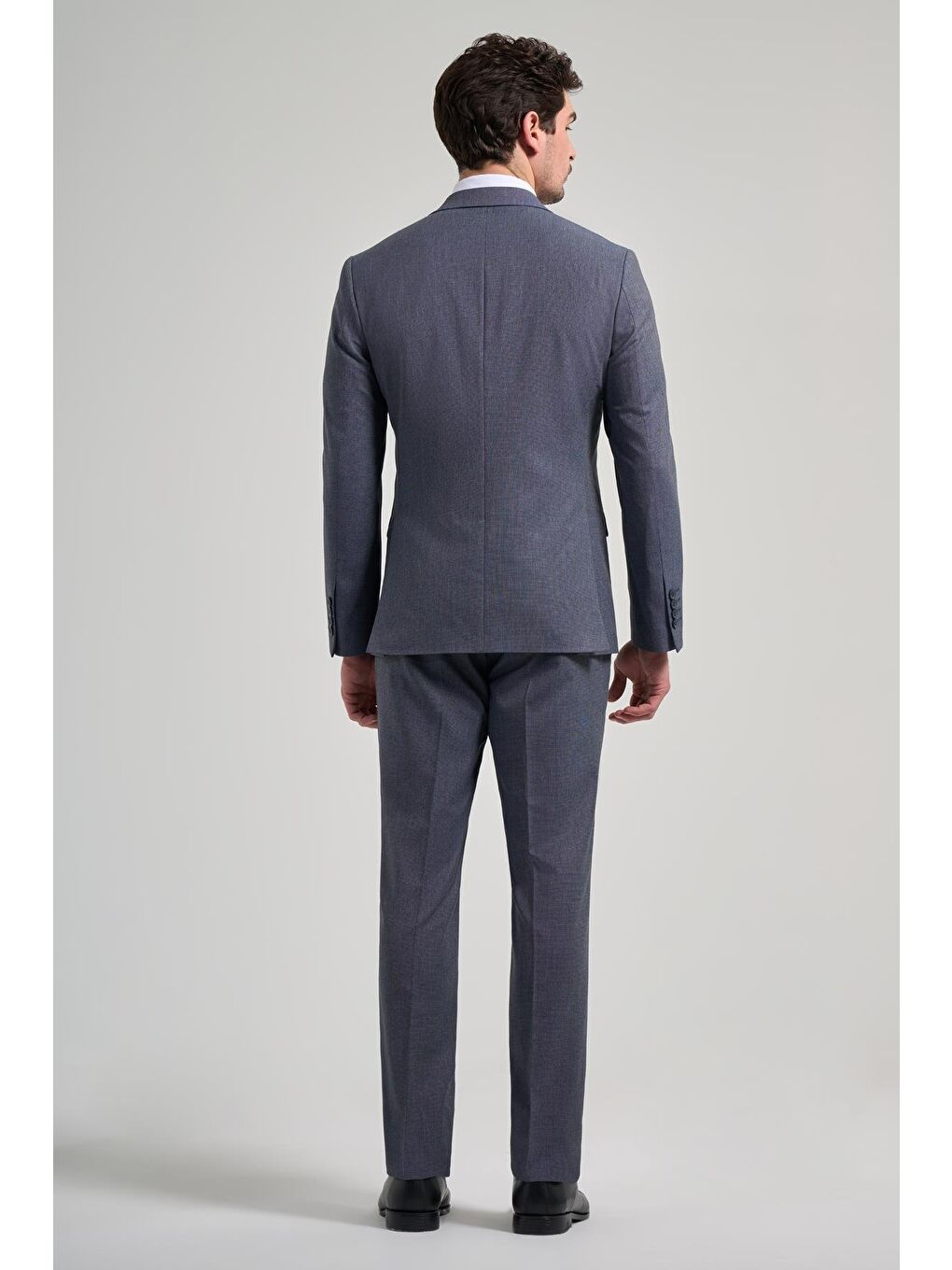 کت و شلوار یقه گرد تک رنگ سرمه ای طرح دار، تمام آستر، انعطاف پذیر، سایز 6 اینچ، کد 1001250168