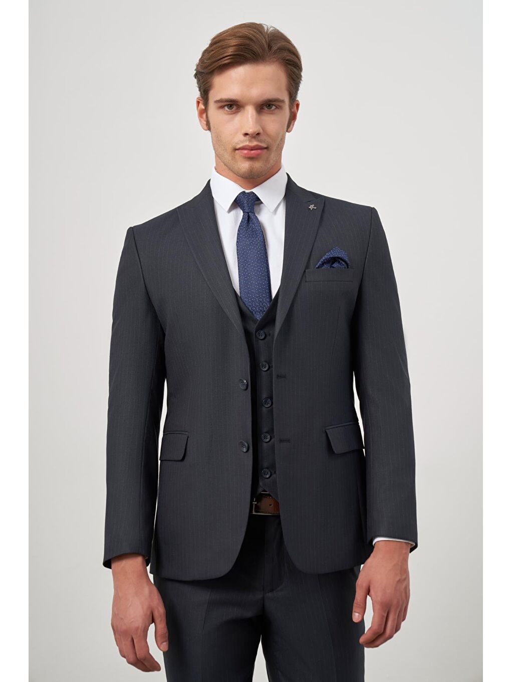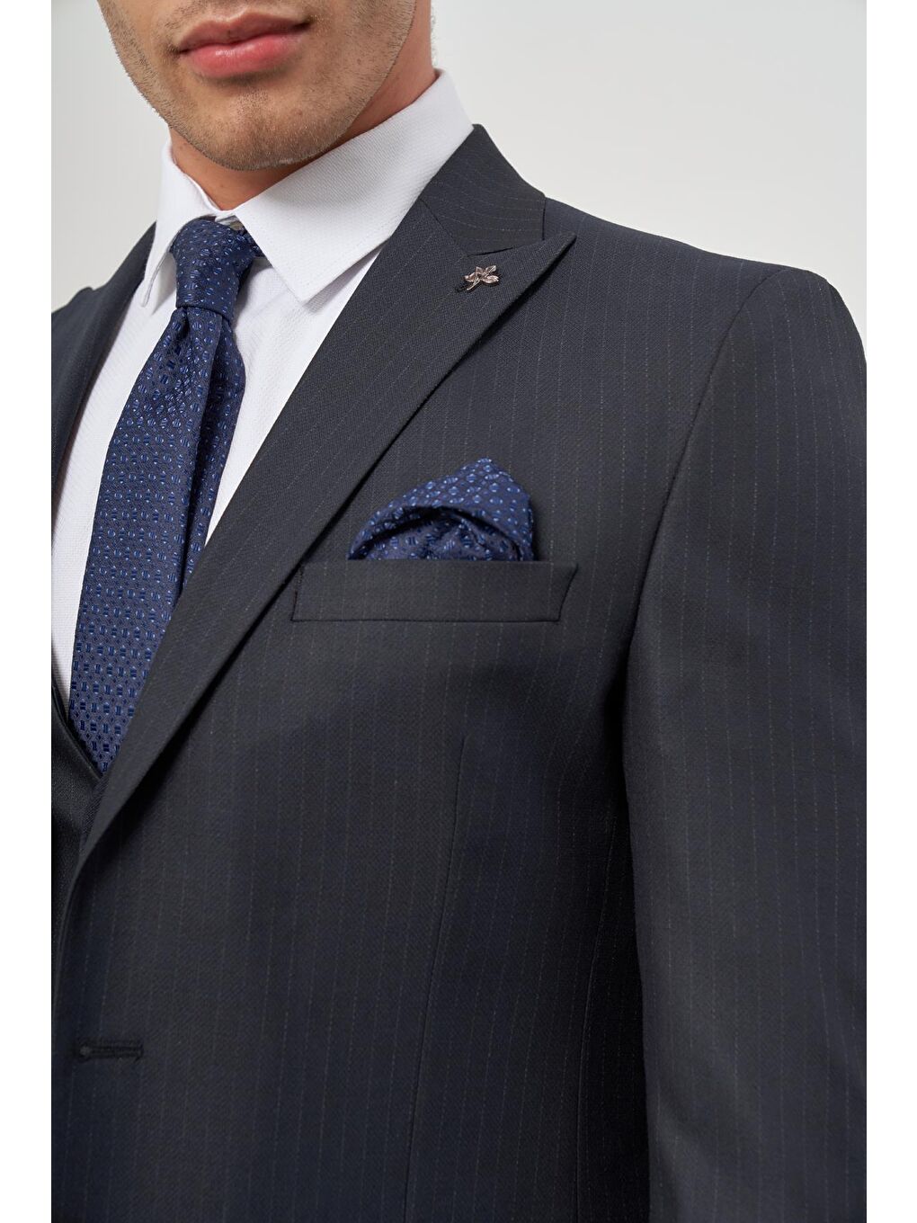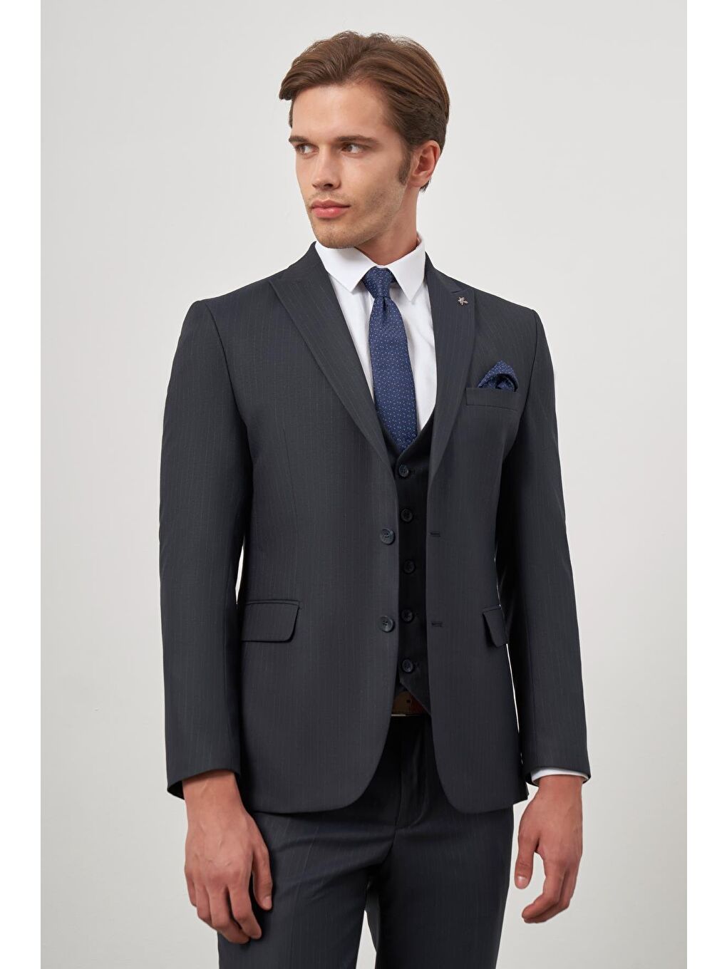 جلیقه یقه شمشیری سرمه‌ای تیره، کت و شلوار کلاسیک اسلیم فیت ۶ دراپ، کد ۱۰۰۱۲۴۵۱۵۴