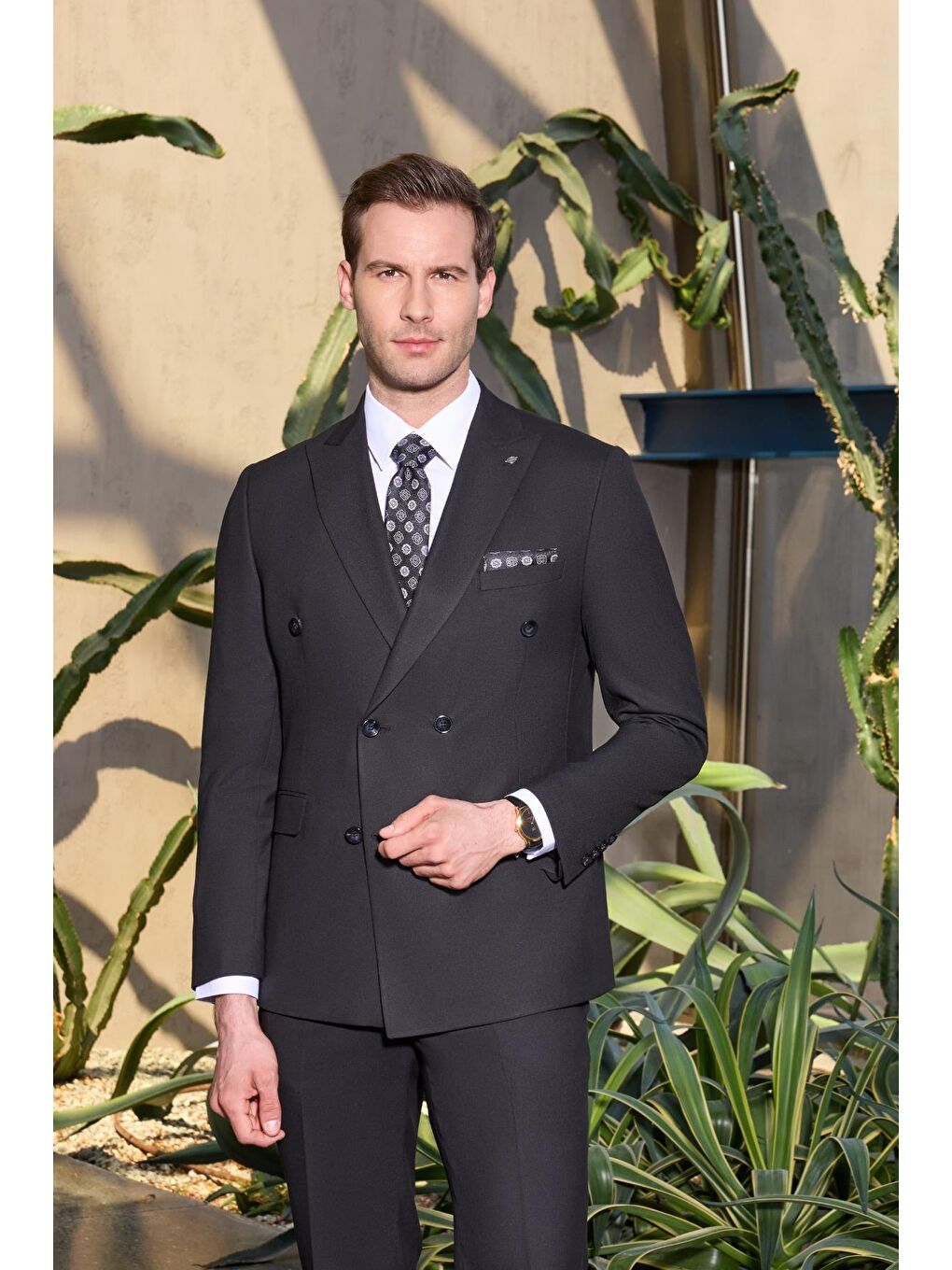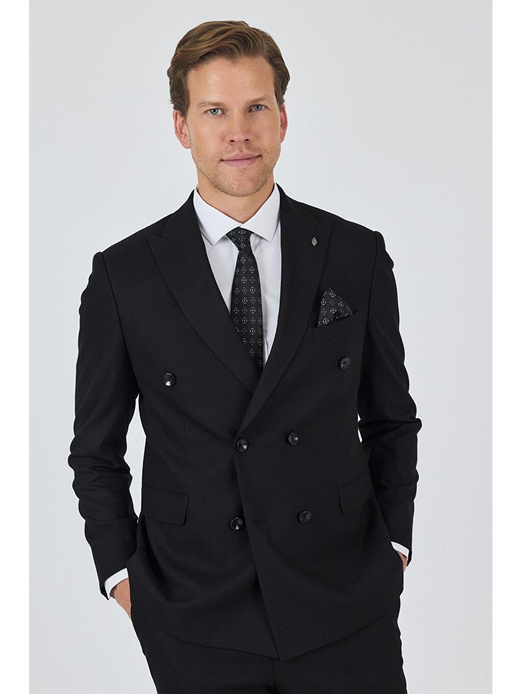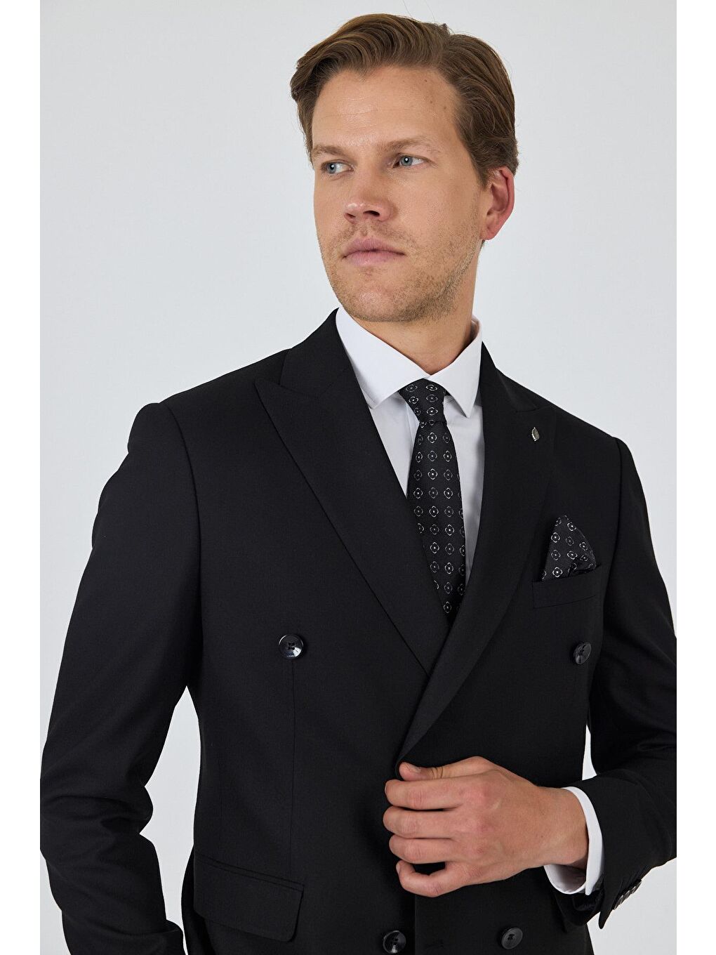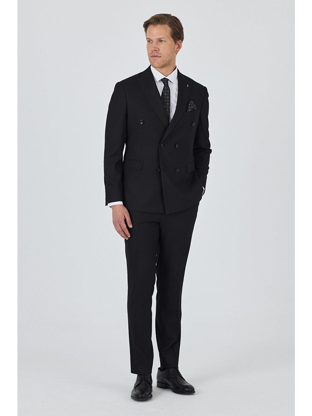 کت و شلوار 1001250172 یقه شمشیر مشکی ساده کلاسیک انعطاف پذیر باریک