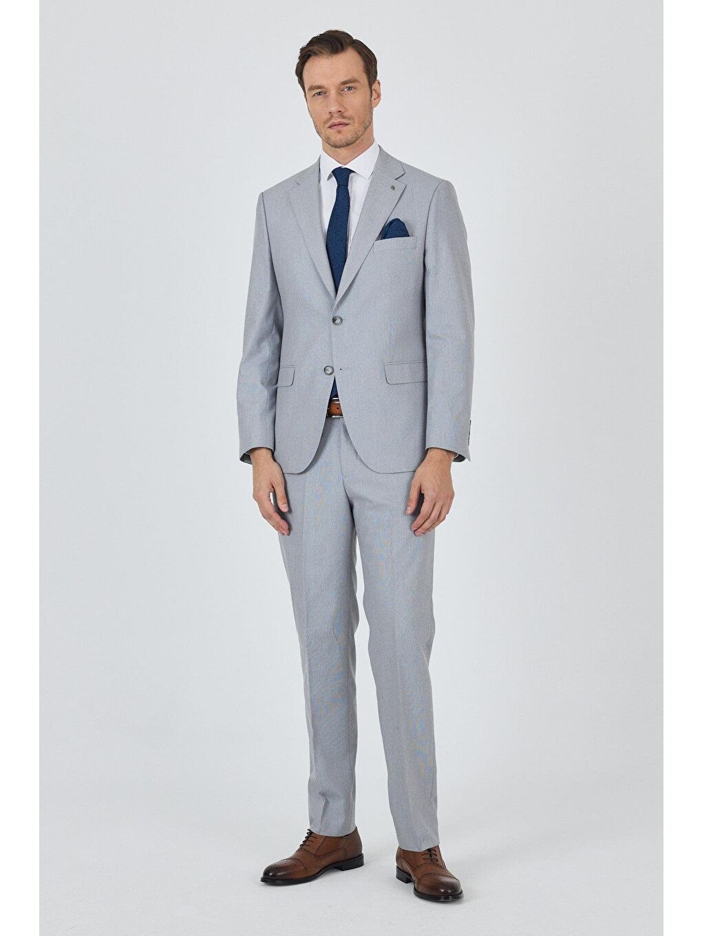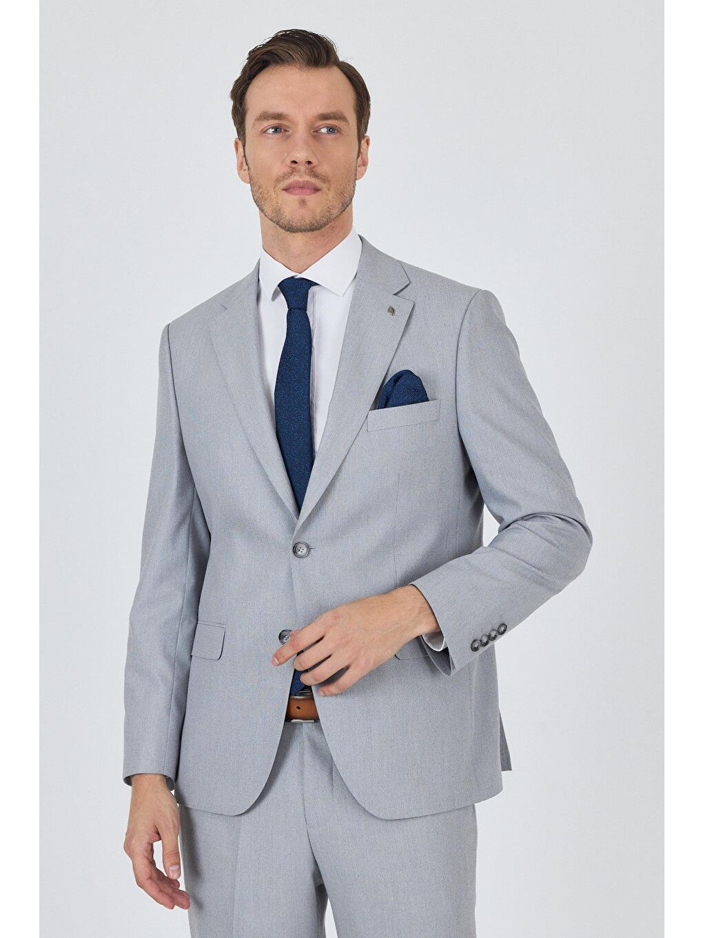 کت و شلوار کلاسیک 1001250161 با طرح یقه تک طوسی با آستر انعطاف پذیر 6 قطره راحت