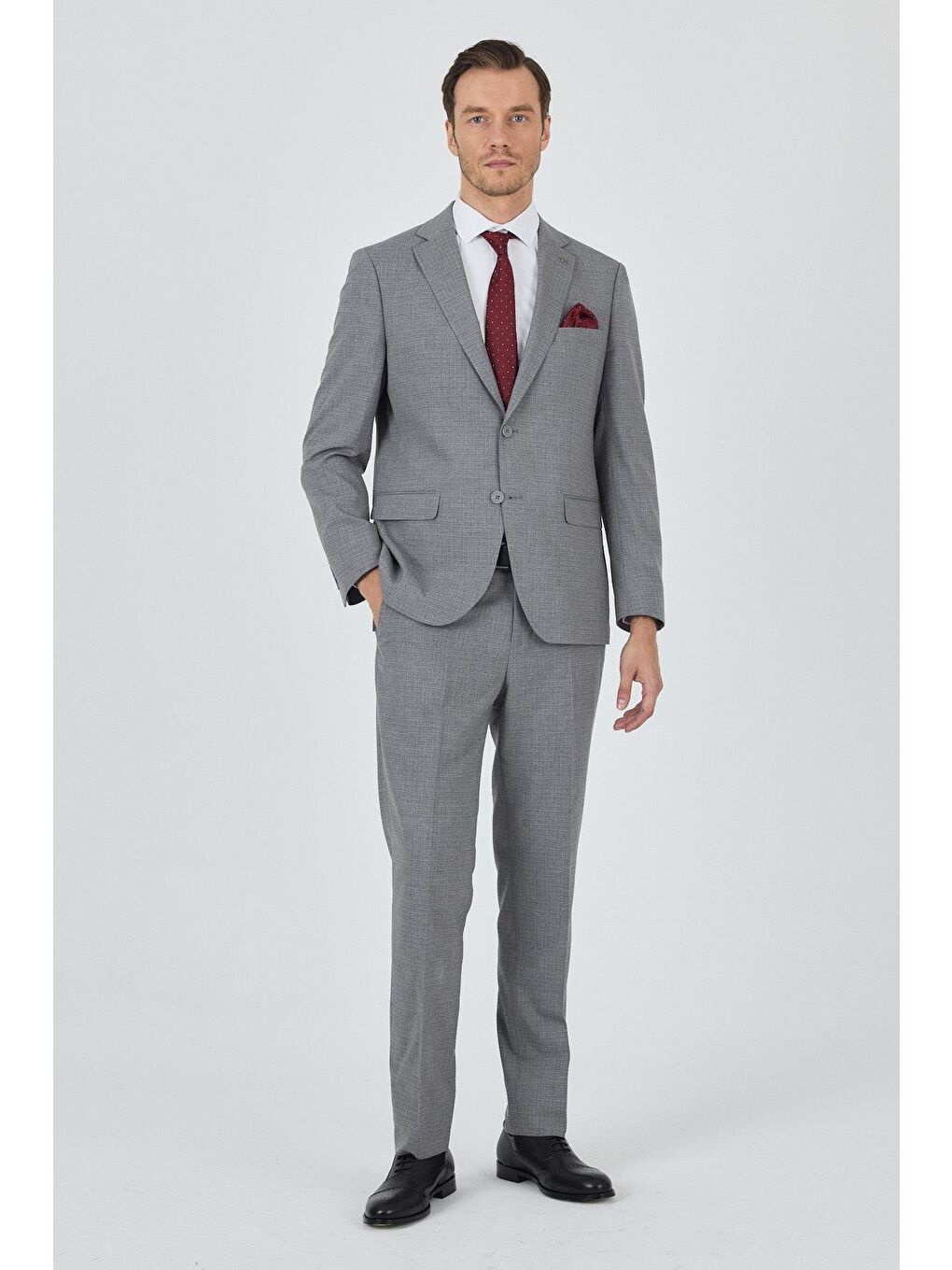 کت و شلوار کلاسیک با یقه تک طوسی انعطاف پذیر 6 قطره راحت 1001250104