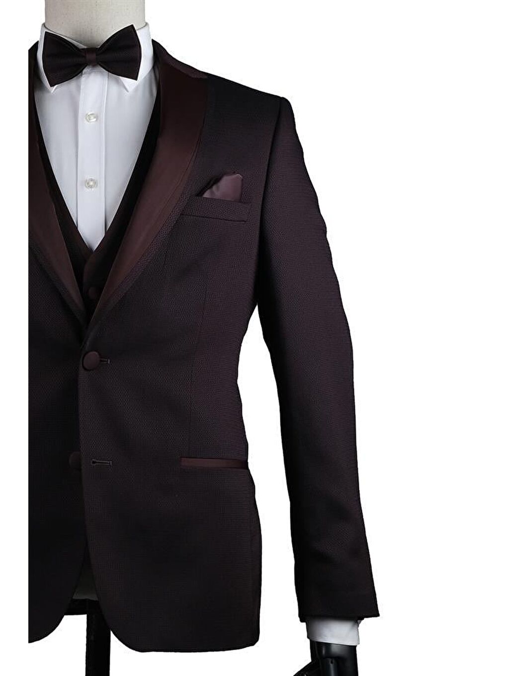 کت و شلوار داماد تاکسیدو باریک 6 Drop Slim Fit جلیقه یقه دوبی بورگوندی 1001200937
