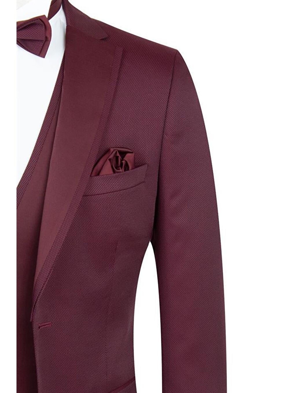 کت و شلوار داماد تاکسیدو باریک 6 قطره باریک با یقه دوبی بورگوندی 1001195219