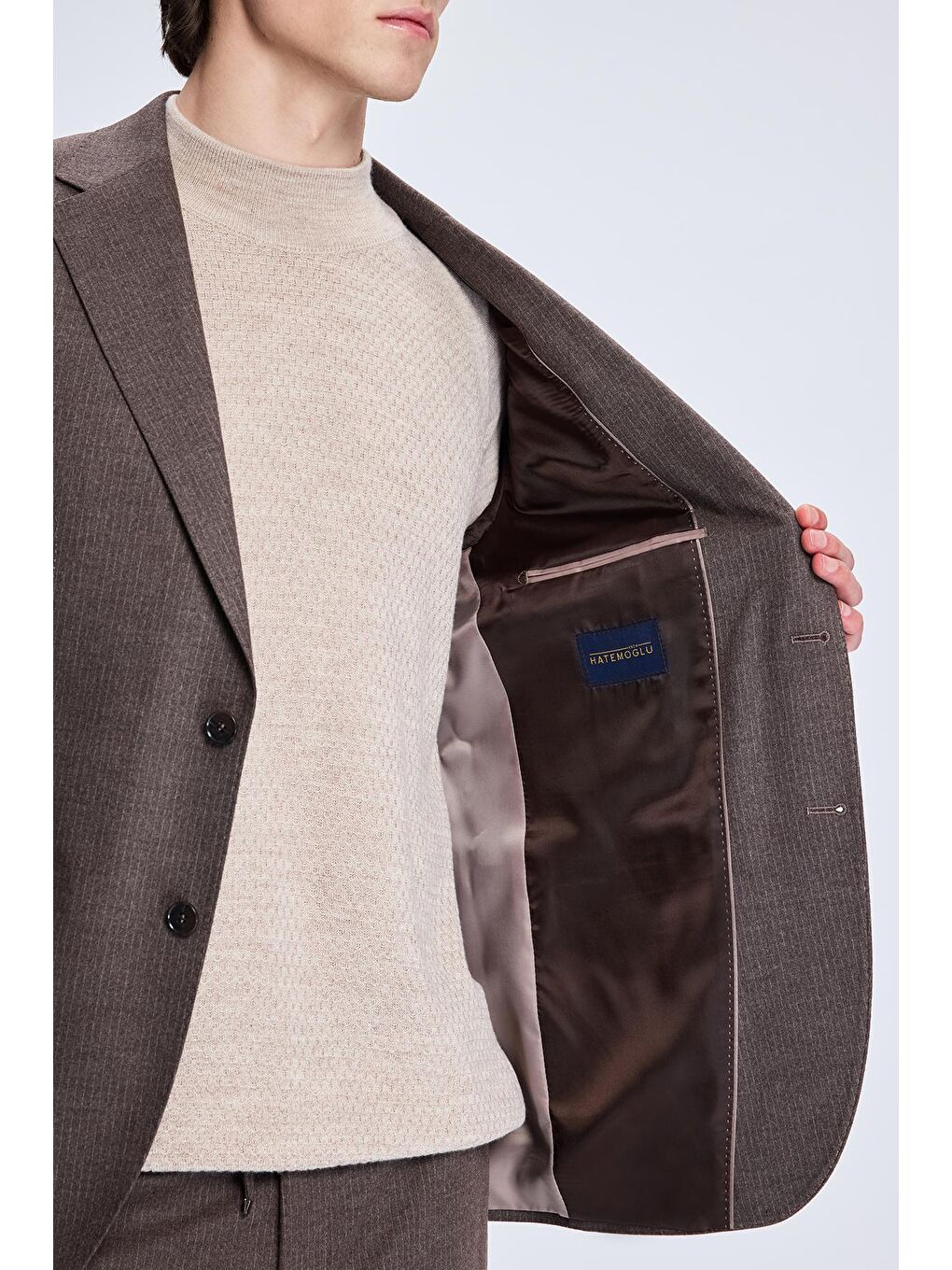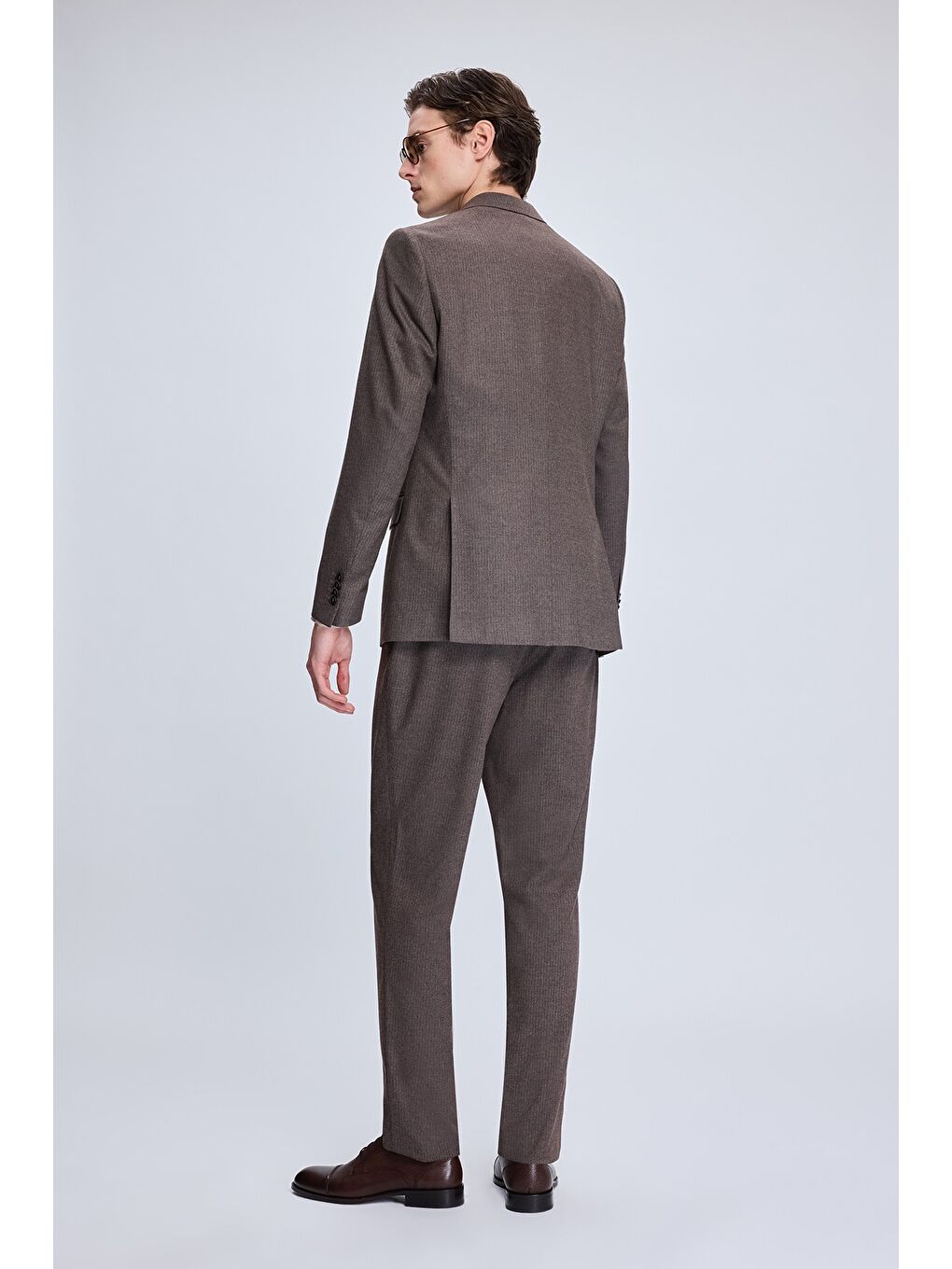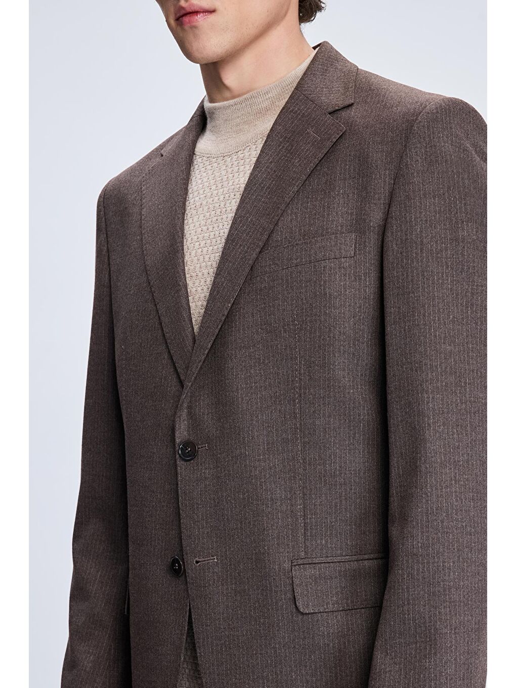کت و شلوار کلاسیک قهوهای اسلیم فیت، یقه تک راه راه