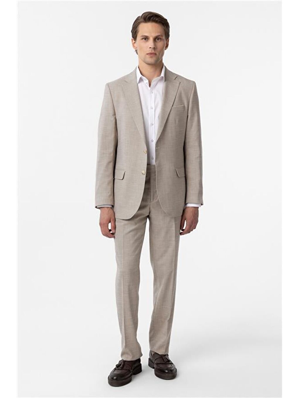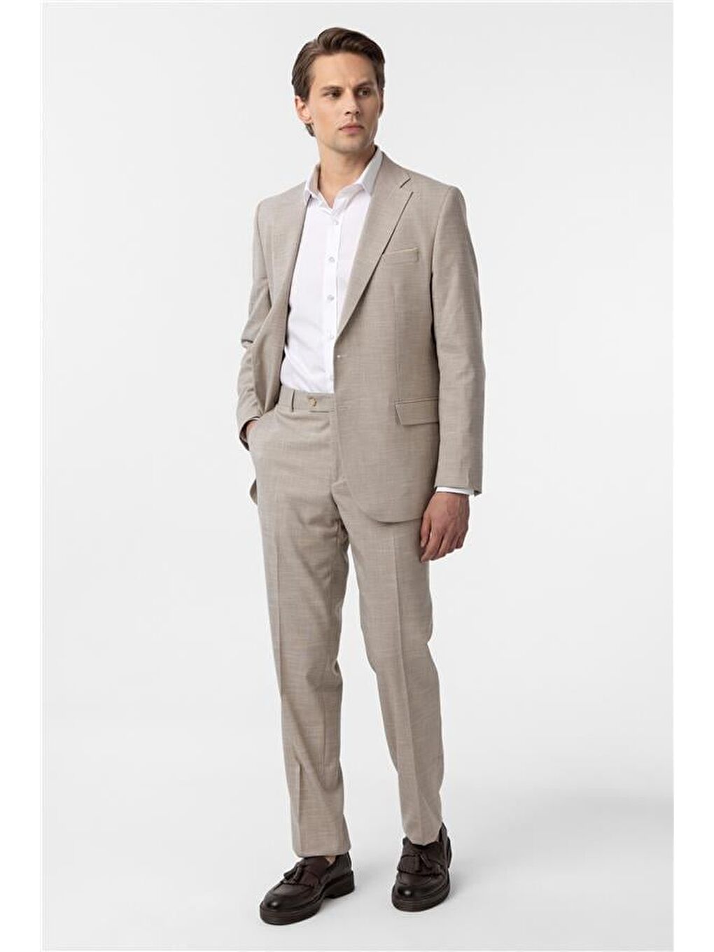 کت و شلوار شش تکه طرح دار بژ معمولی