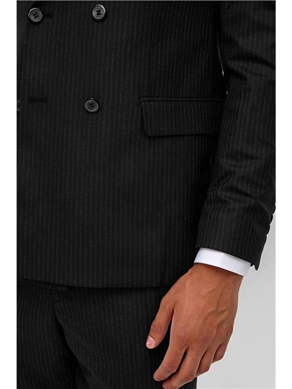 کت و شلوار مشکی یقه باریک راه راه نوک تیز 6 دراپ