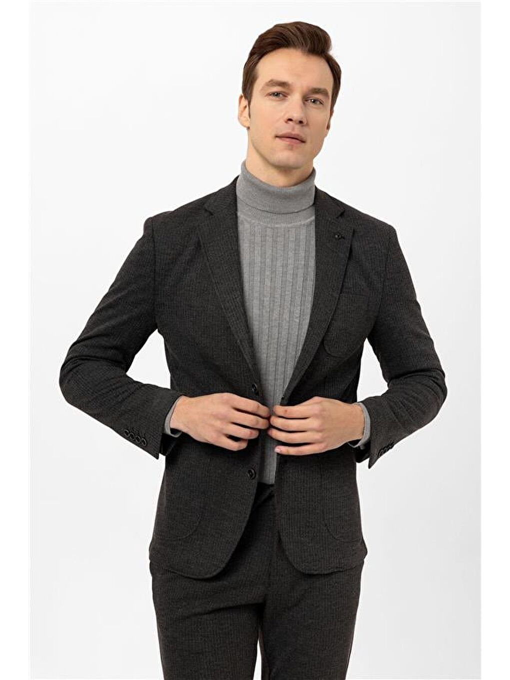 کت و شلوار یقه دابی باریک آنتراسیت آنتراسیت 6 دراپی
