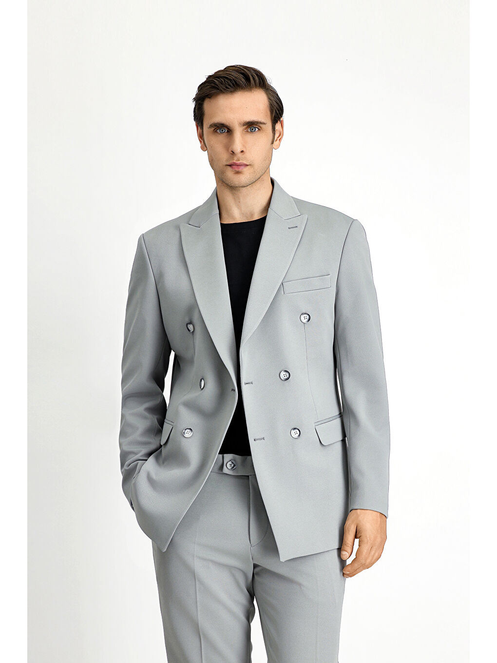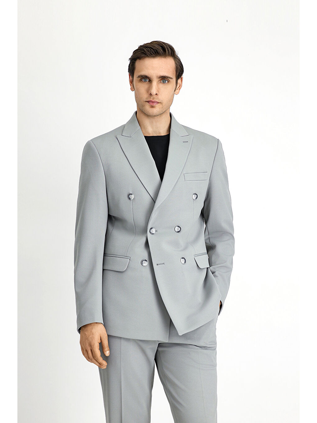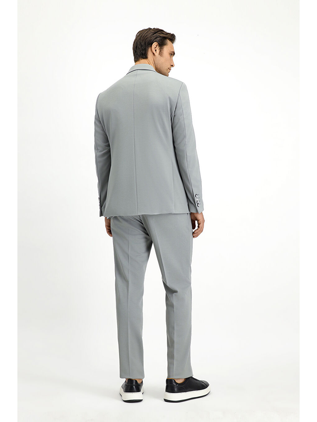 کت و شلوار خاکستری اسلیم فیت، باریک و برش‌دار، دو دکمه