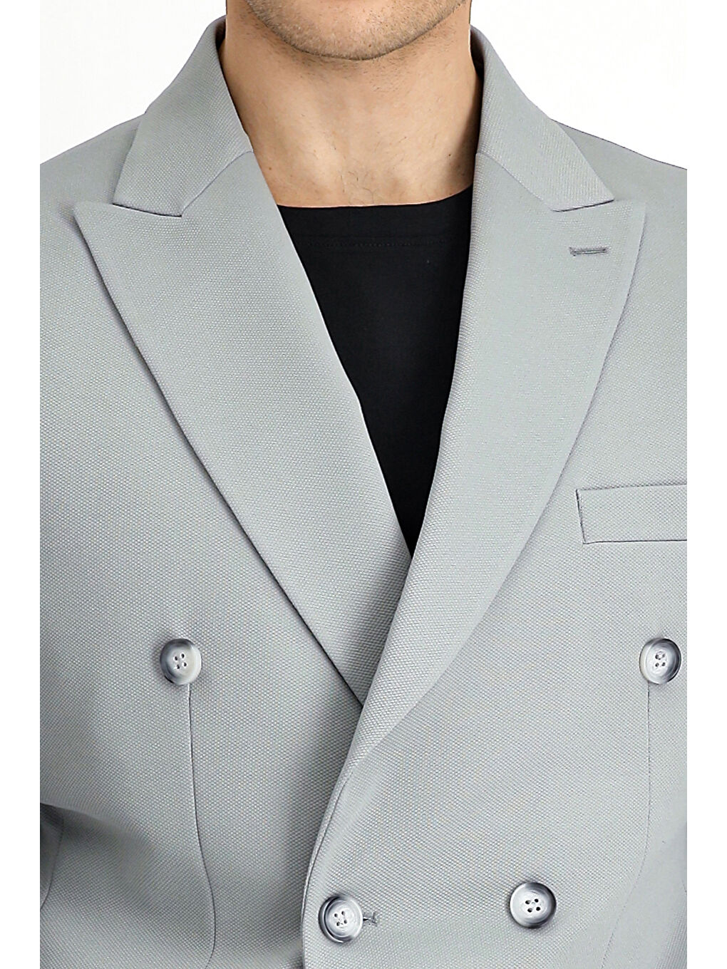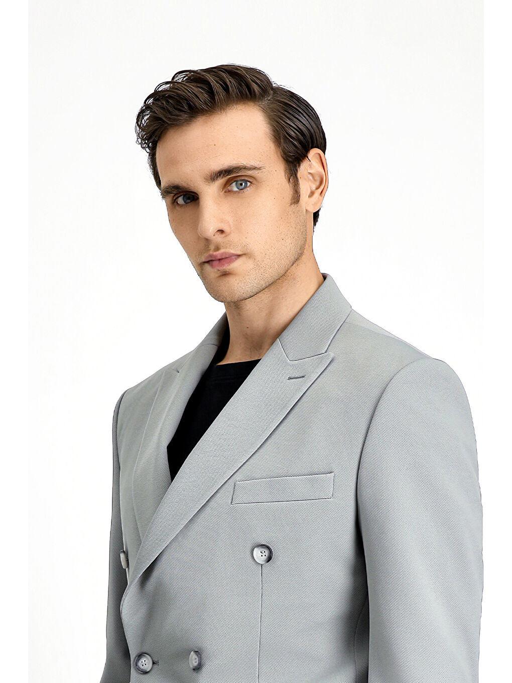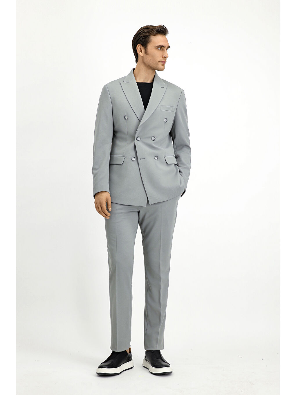 کت و شلوار خاکستری اسلیم فیت، باریک و برش‌دار، دو دکمه