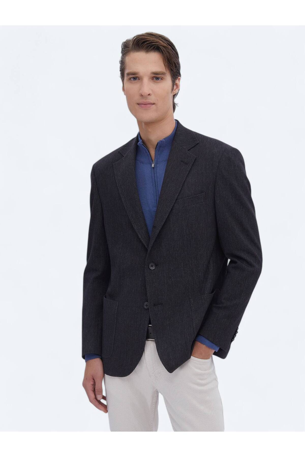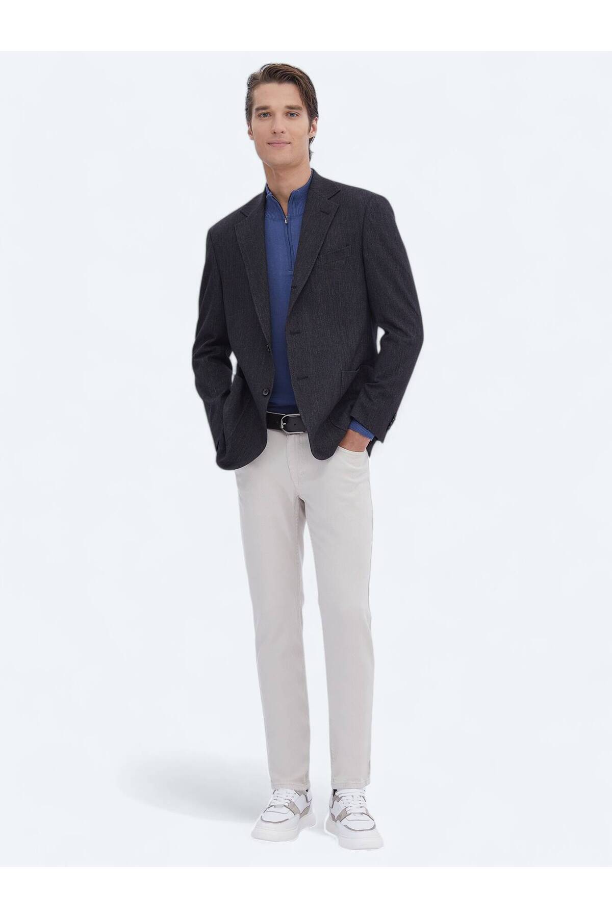 الگوی کت و شلوار: خط یکدست: اسپرت یقه: یقه پروانهای مدل پا: کلاسیک تناسب پا: مدرن تناسب چاک: تک چاک آستر داخلی: نیم آستر نوع کار: نرم جیب: وصله جیب ترکیب: 38% پنبه، 31% ویسکوز، 28% پلیاستر، 3% الاستین جنس: TKM-3613