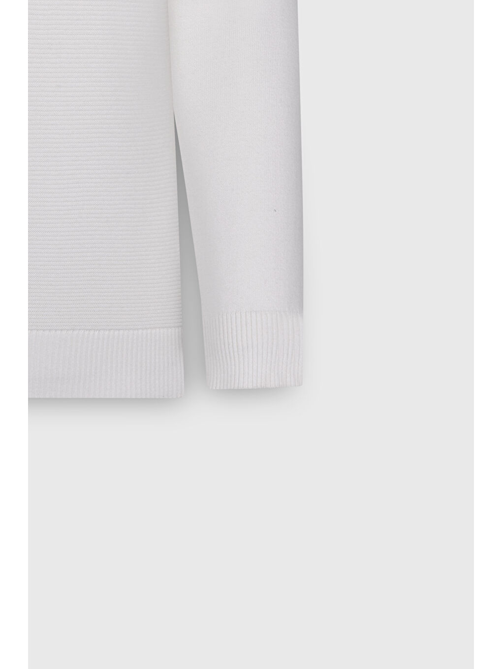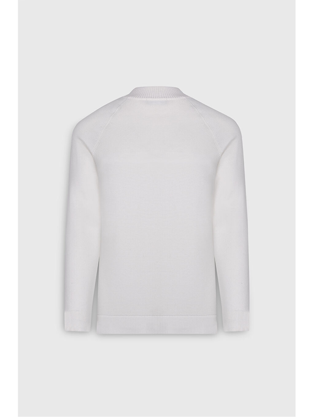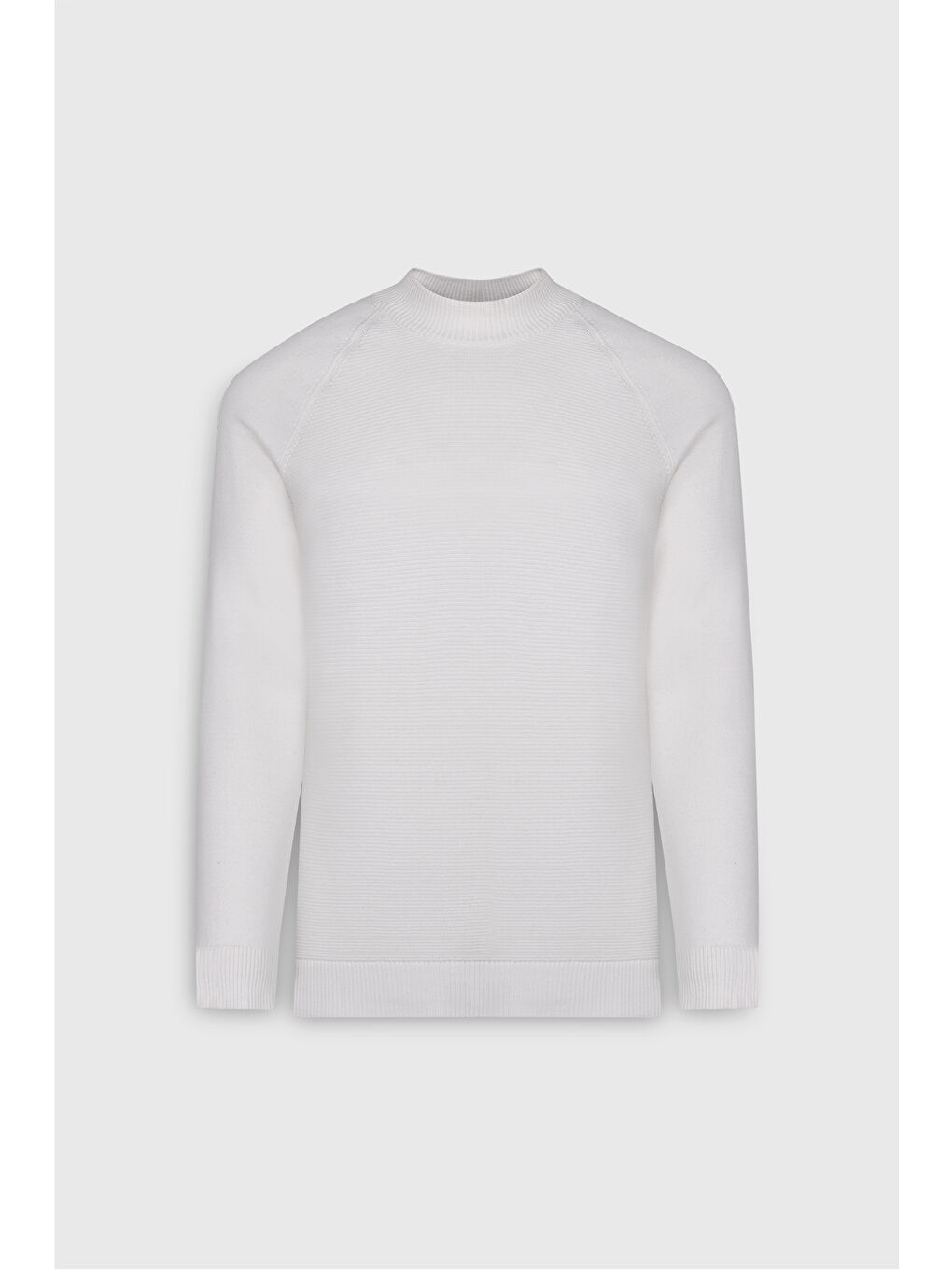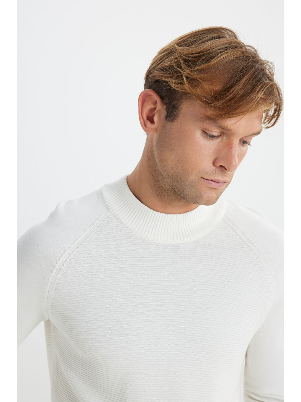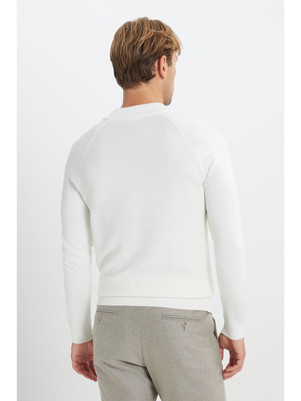 ژاکت بافتنی طرح دار یقه اسکی نیم تنه مردانه Ecru Cotton Standard Fit Regular Cut