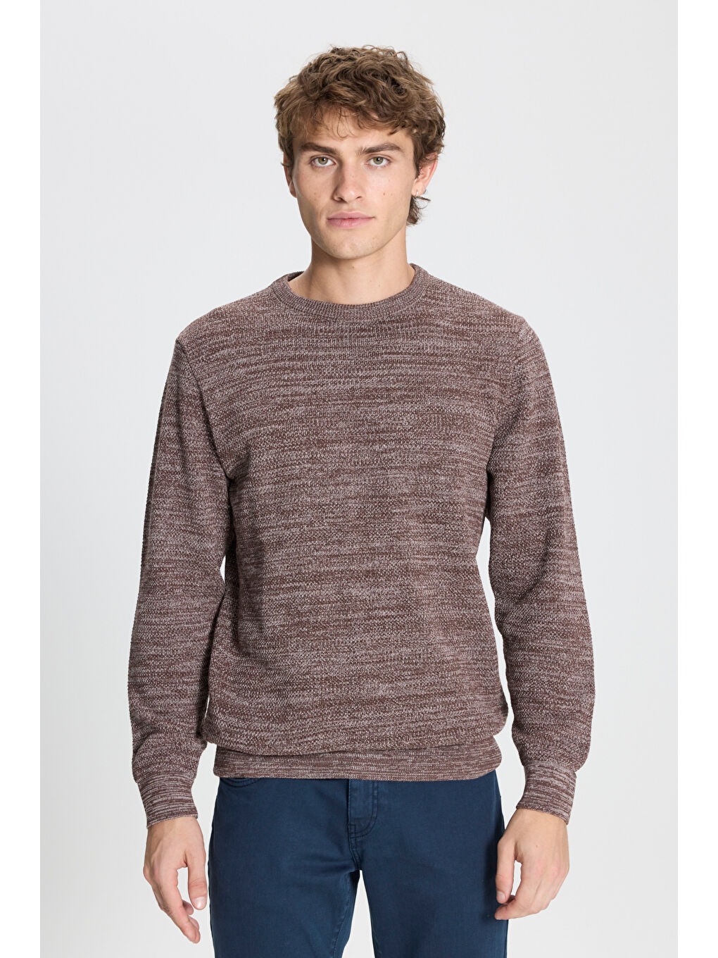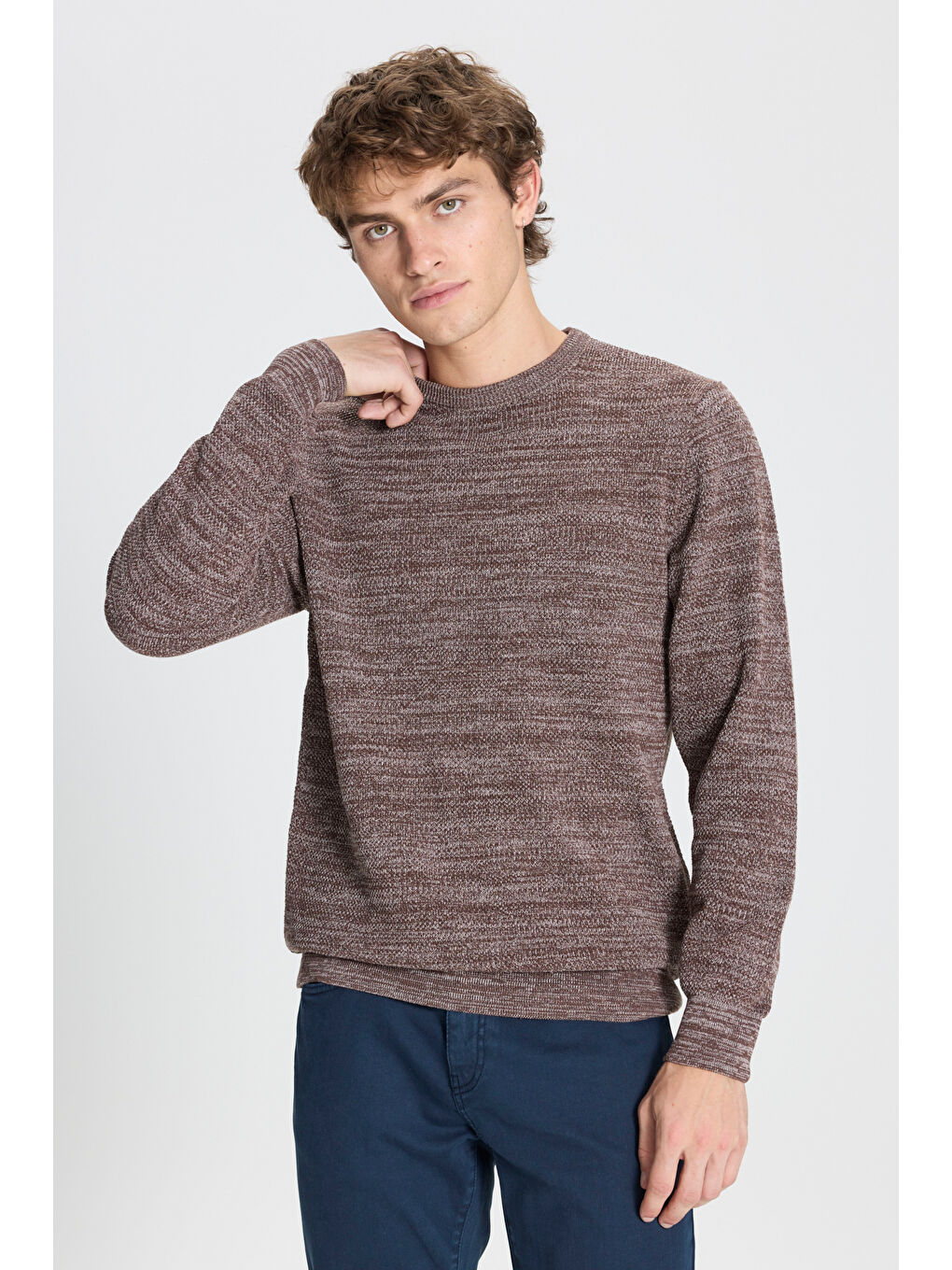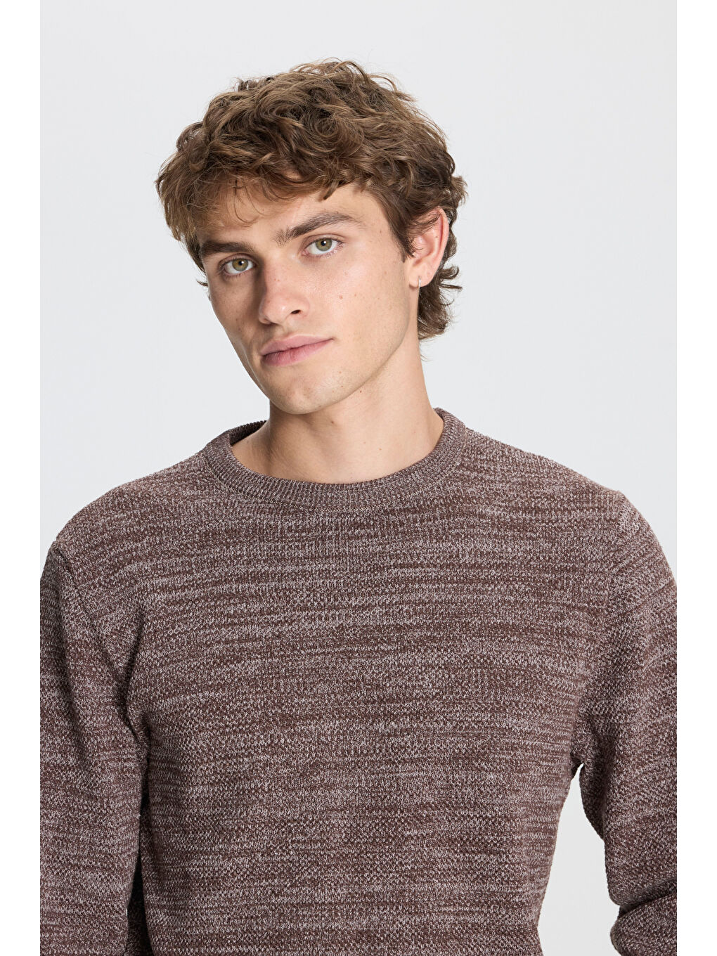 ژاکت بافتنی یقه گرد مردانه قهوهای، قهوهای-خاکستری روشن، بسته ۲ عددی، نخی، برش استاندارد، سایز معمولی