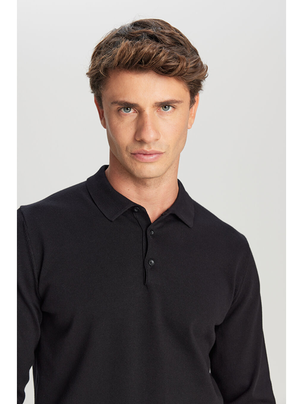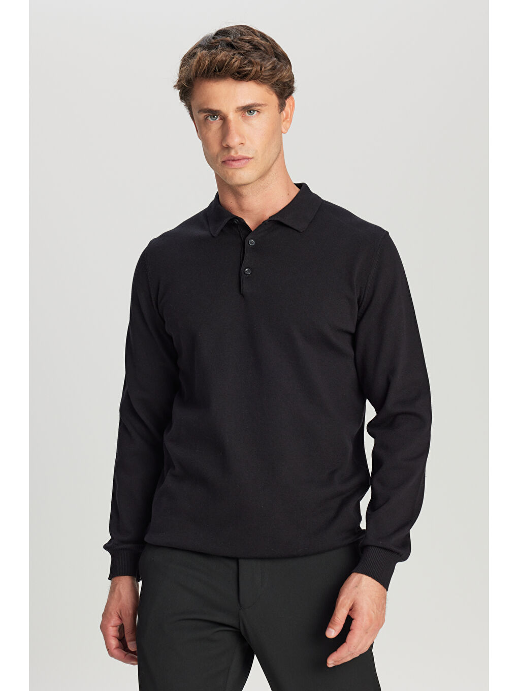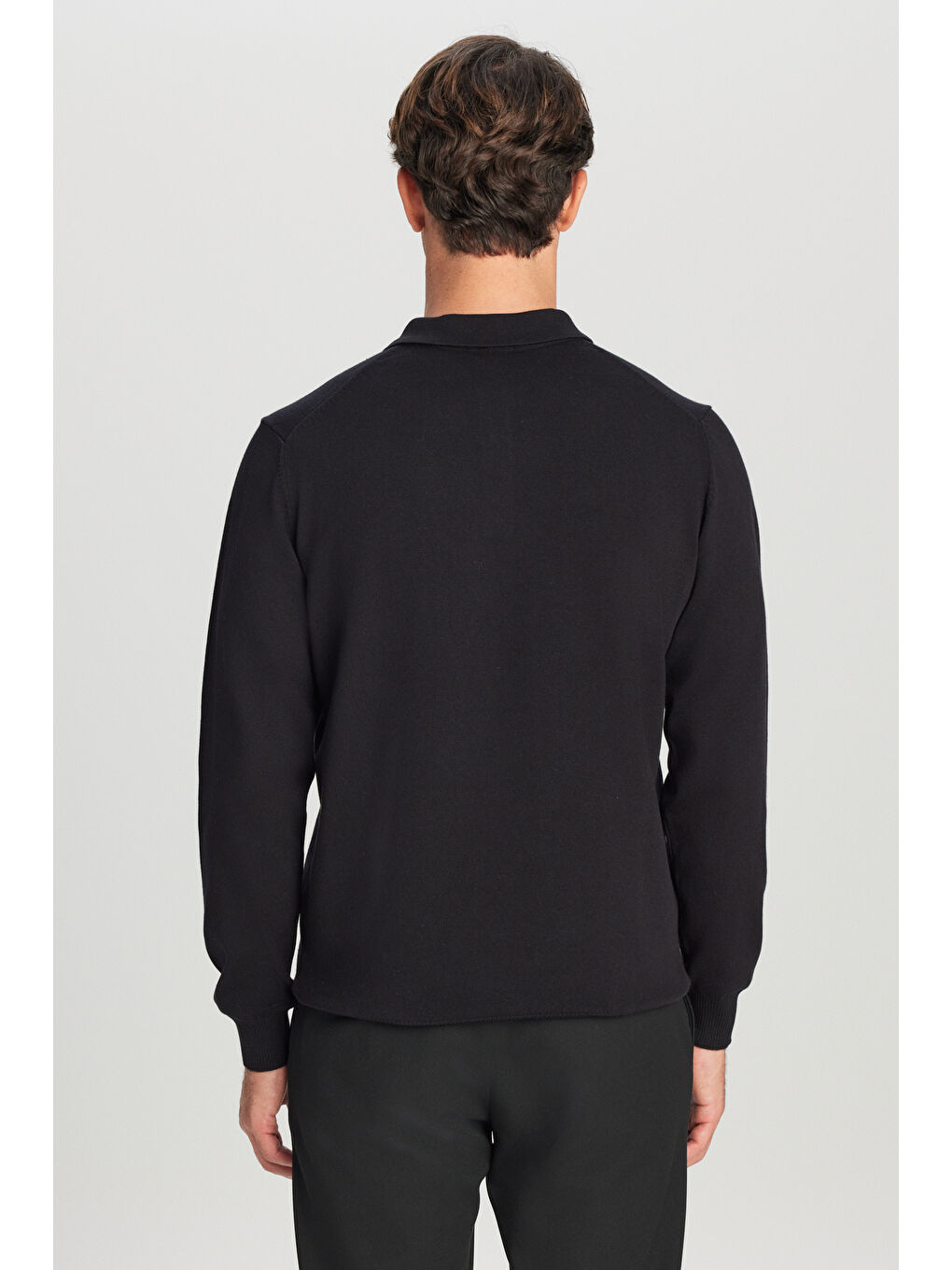 ژاکت بافتنی یقه چوگان برش معمولی مردانه نخی مشکی استاندارد