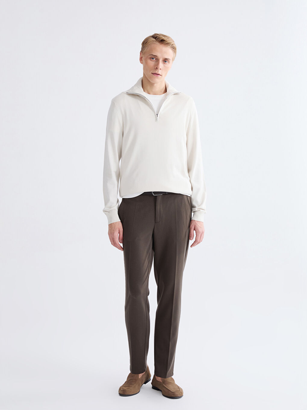 ژاکت بافتنی مردانه یقه ایستاده زیپدار بژ
