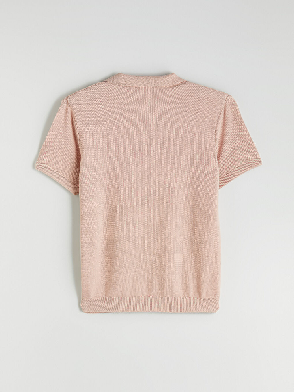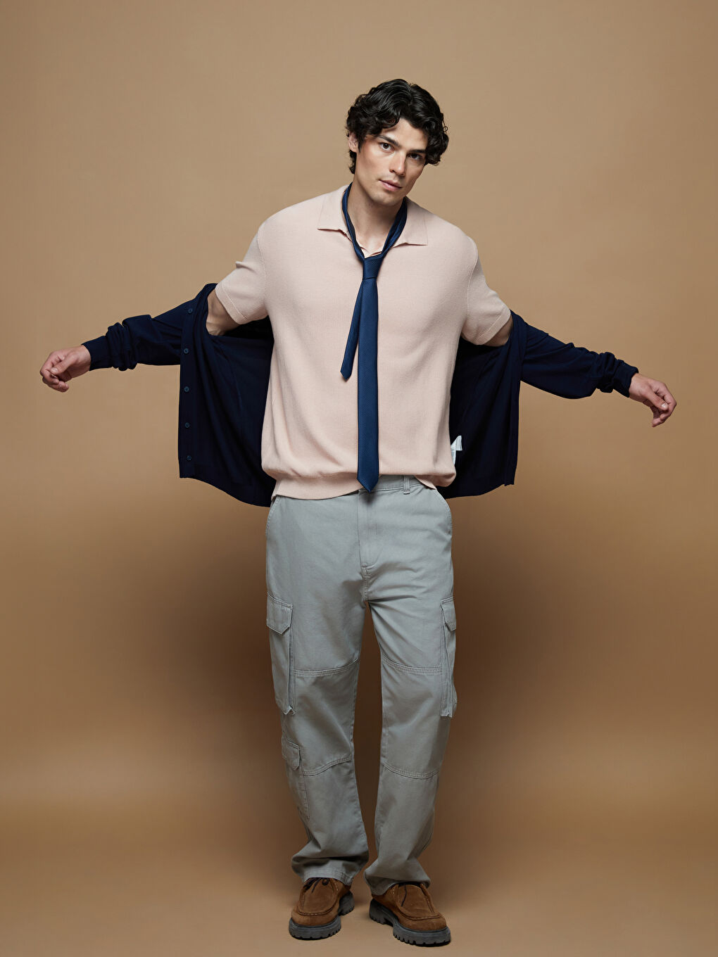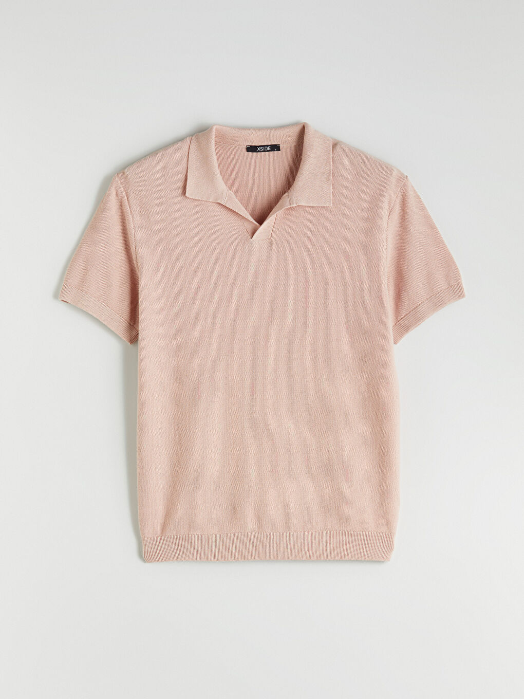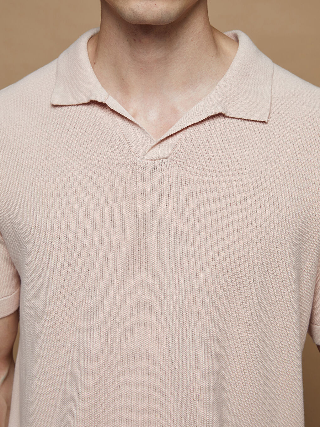 ژاکت بافتنی مردانه یقه پولو صورتی