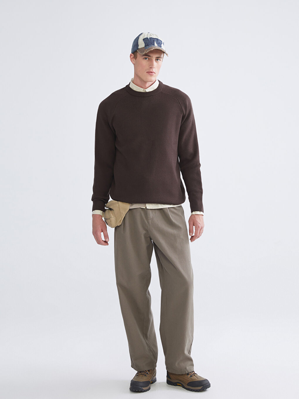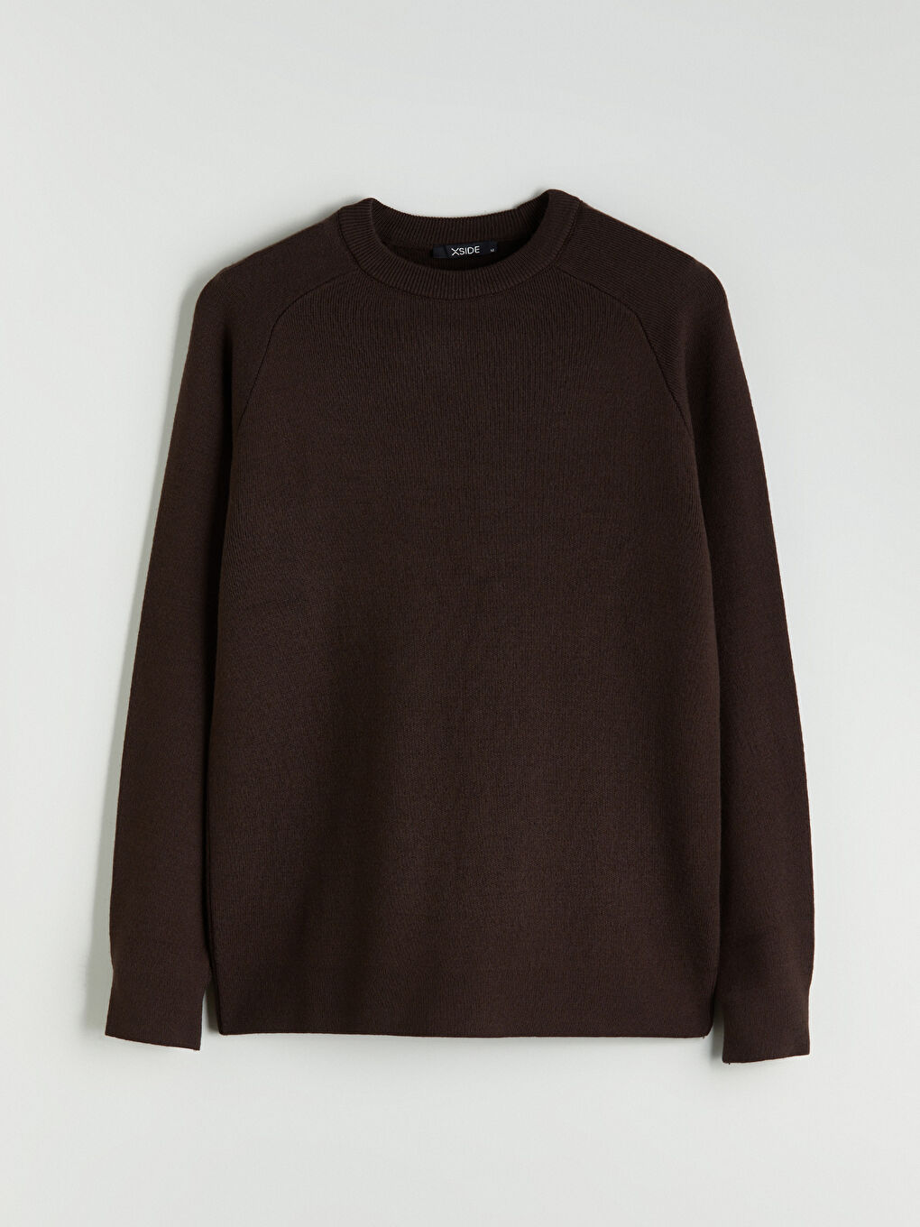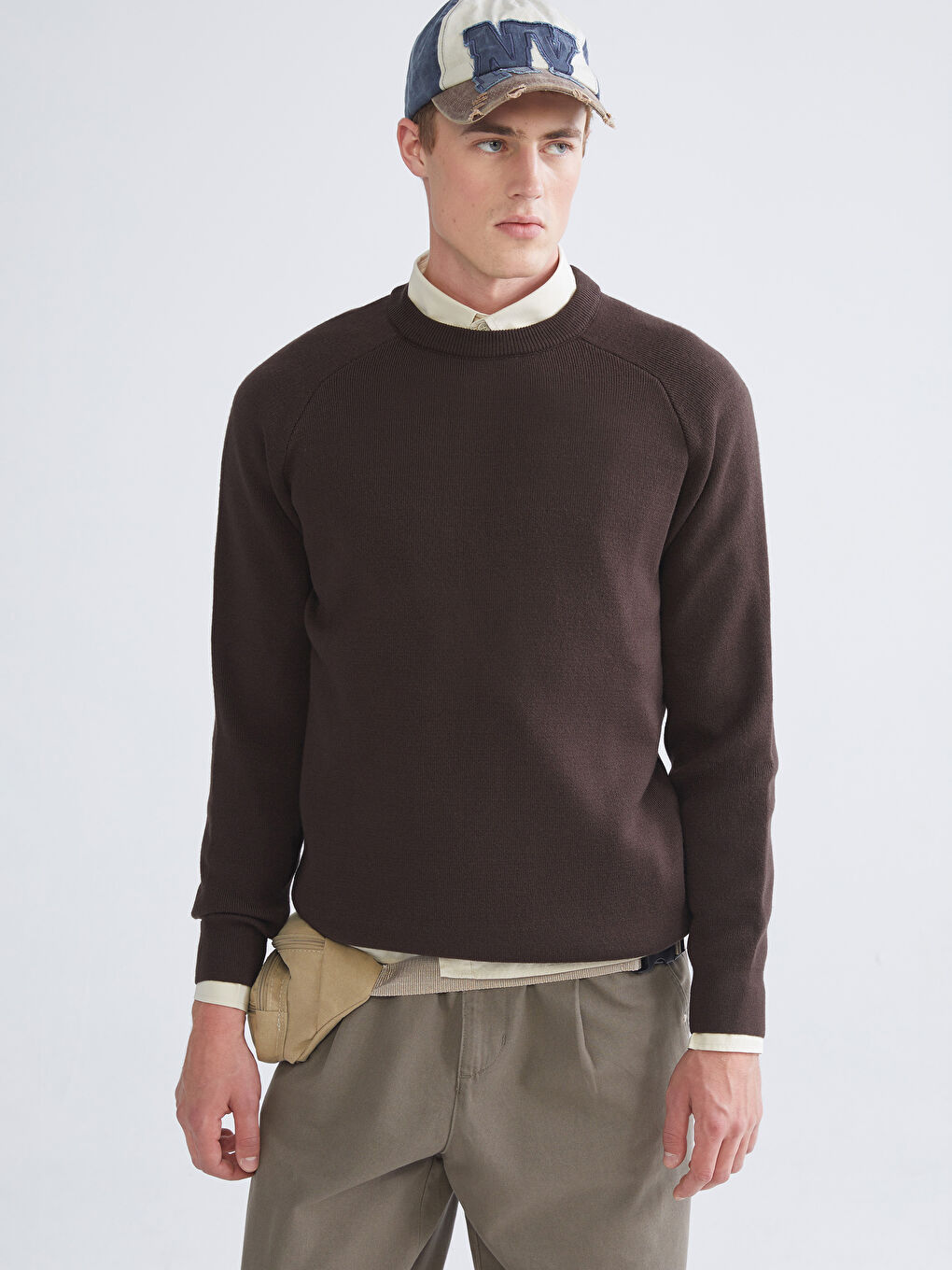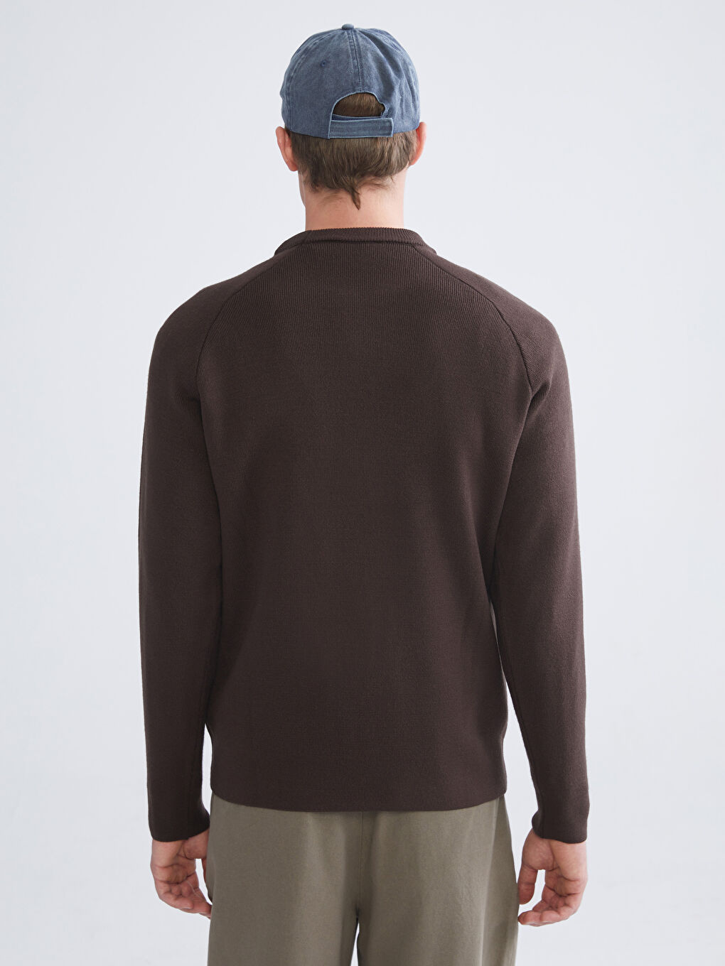 ژاکت بافتنی مردانه یقه گرد قهوهای