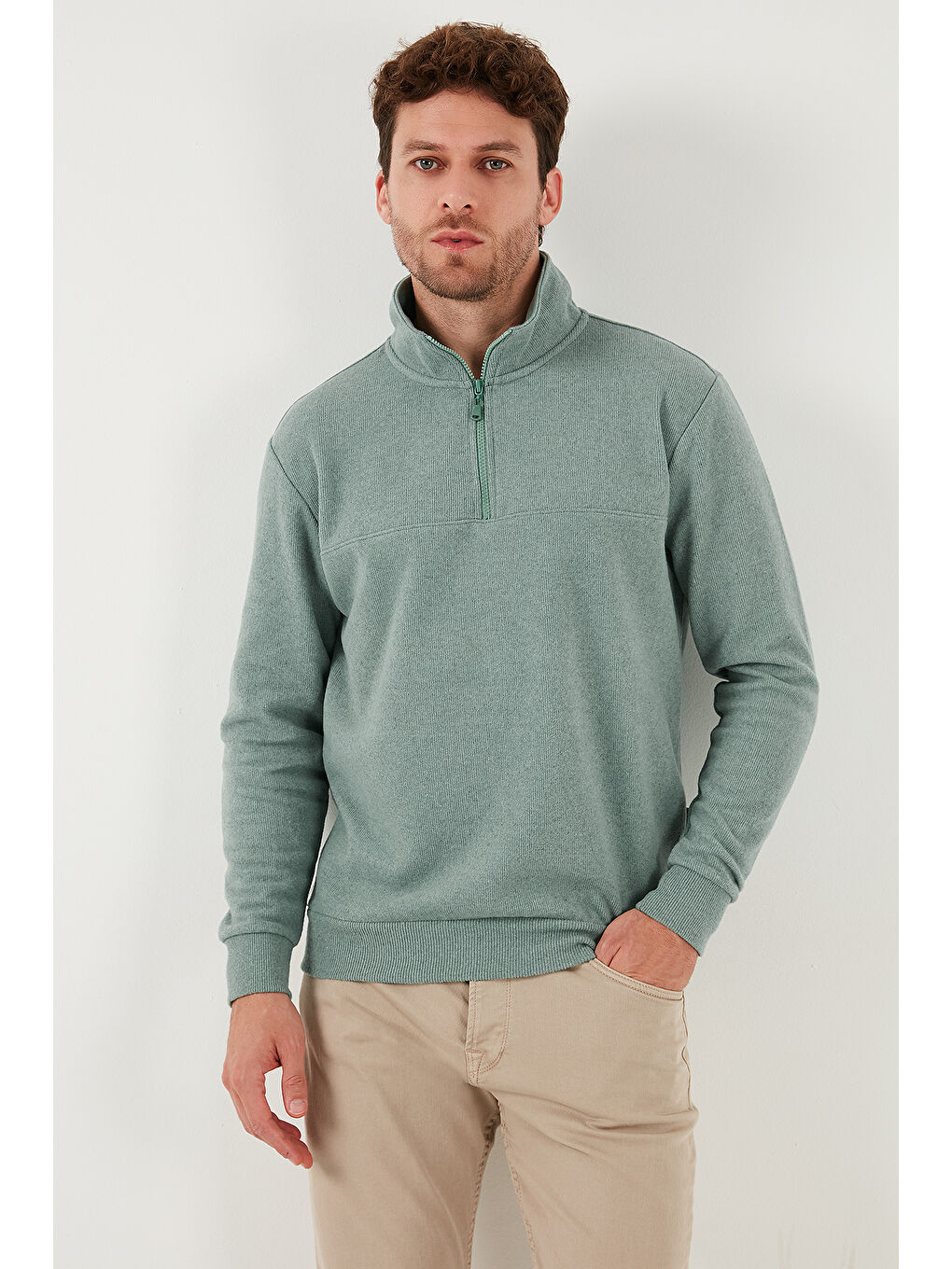 مدل: سویشرت فصل: پاییز/زمستان طول: استاندارد جنس: ۸۰٪ پنبه ۲۰٪ پلی‌استر اطلاعات یقه: یقه ایستاده زیپ‌دار اطلاعات آستین: آستین بلند اطلاعات الگو: سایز معمولی ابعاد مدل: قد: ۱.۸۸ سانتی‌متر / سینه: ۱۰۰ سانتی‌متر / کمر: ۸۱ سانتی‌متر / باسن: ۱۰۱ سانتی‌متر / سایز: L محل تولید: ترکیه