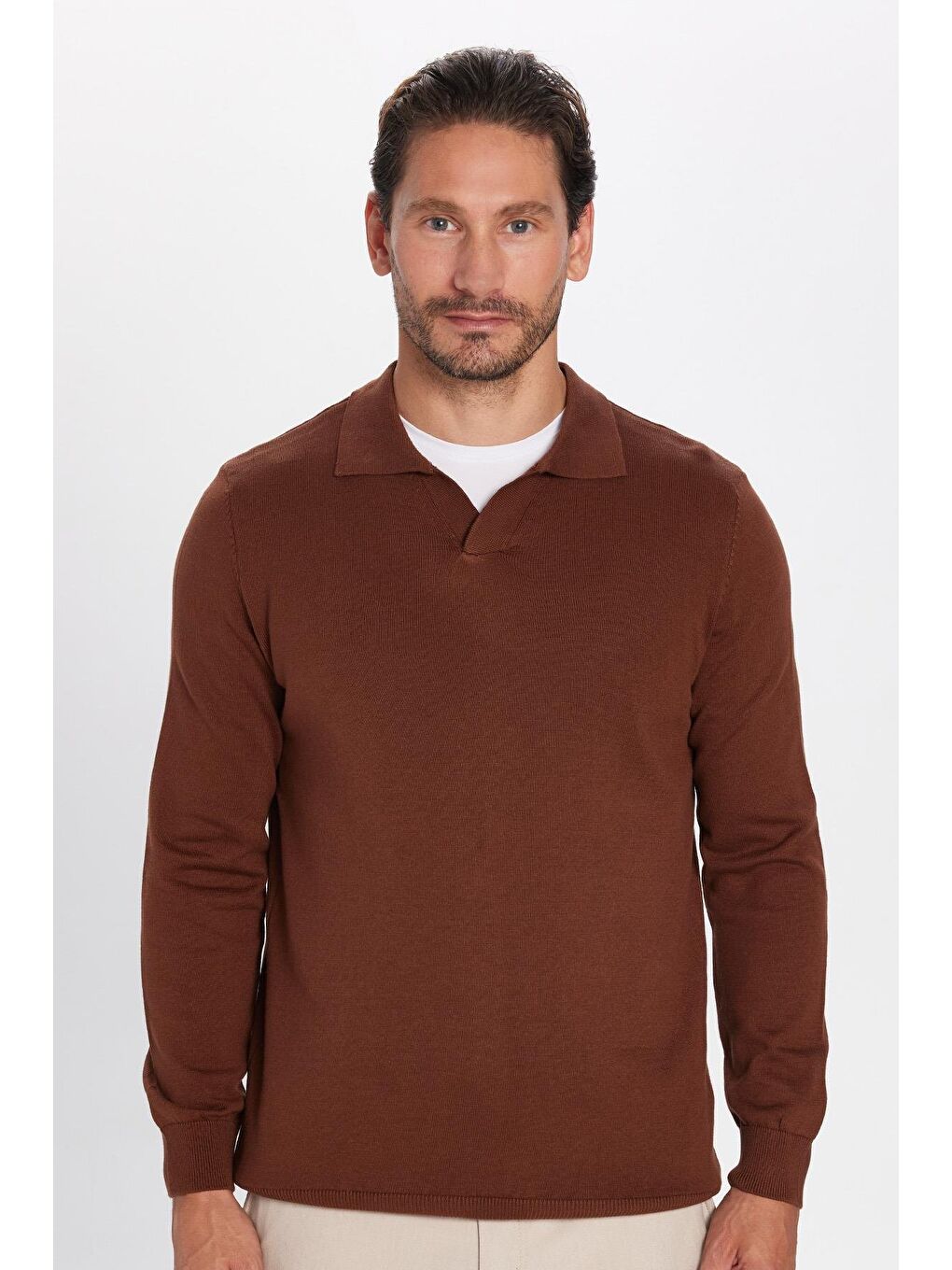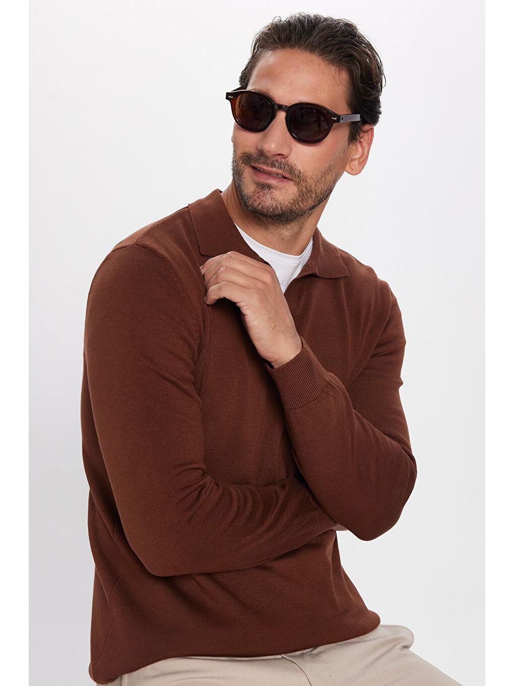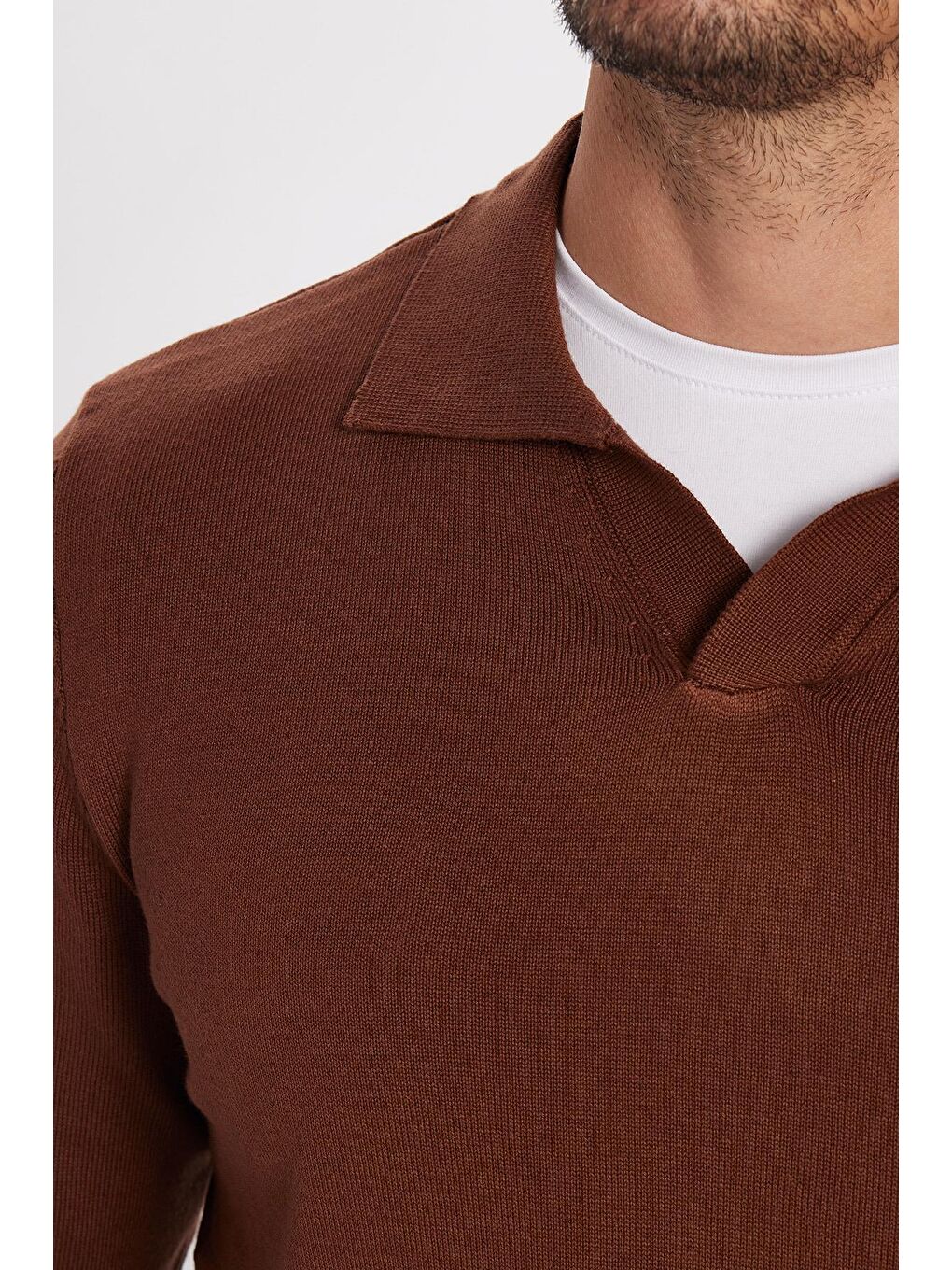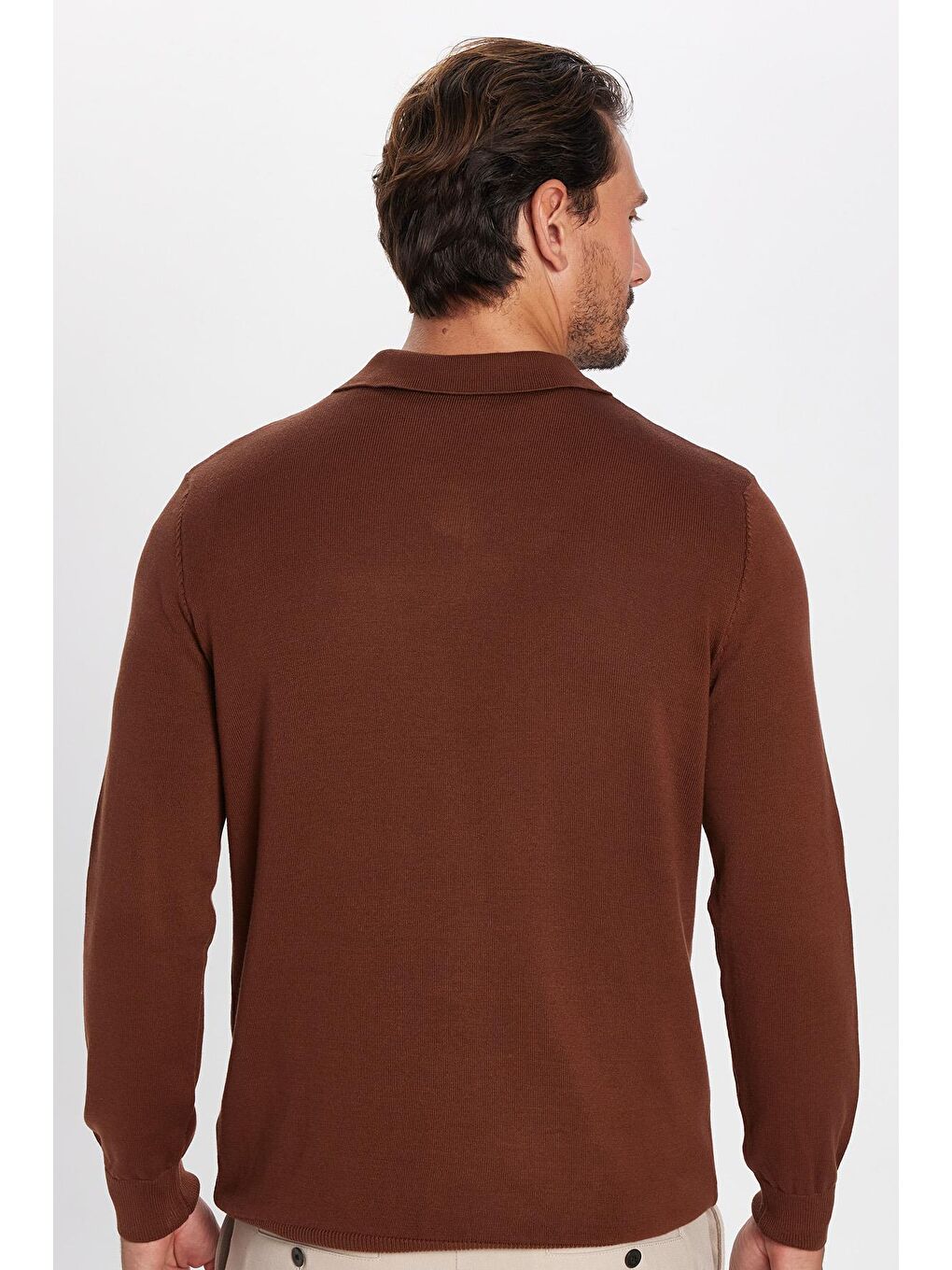 ژاکت بافتنی مردانه یقه هفت یقه گرد قهوهای برشدار معمولی سایز استاندارد