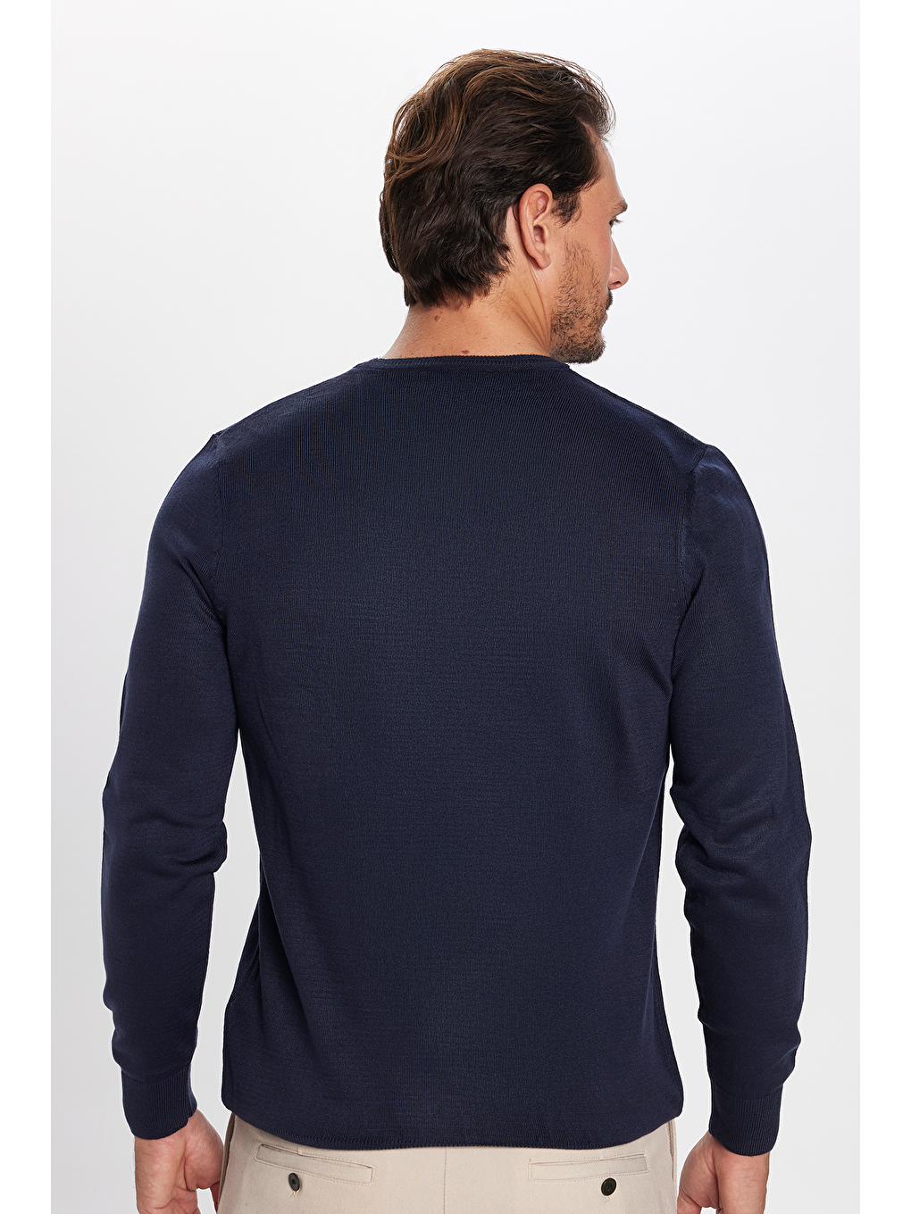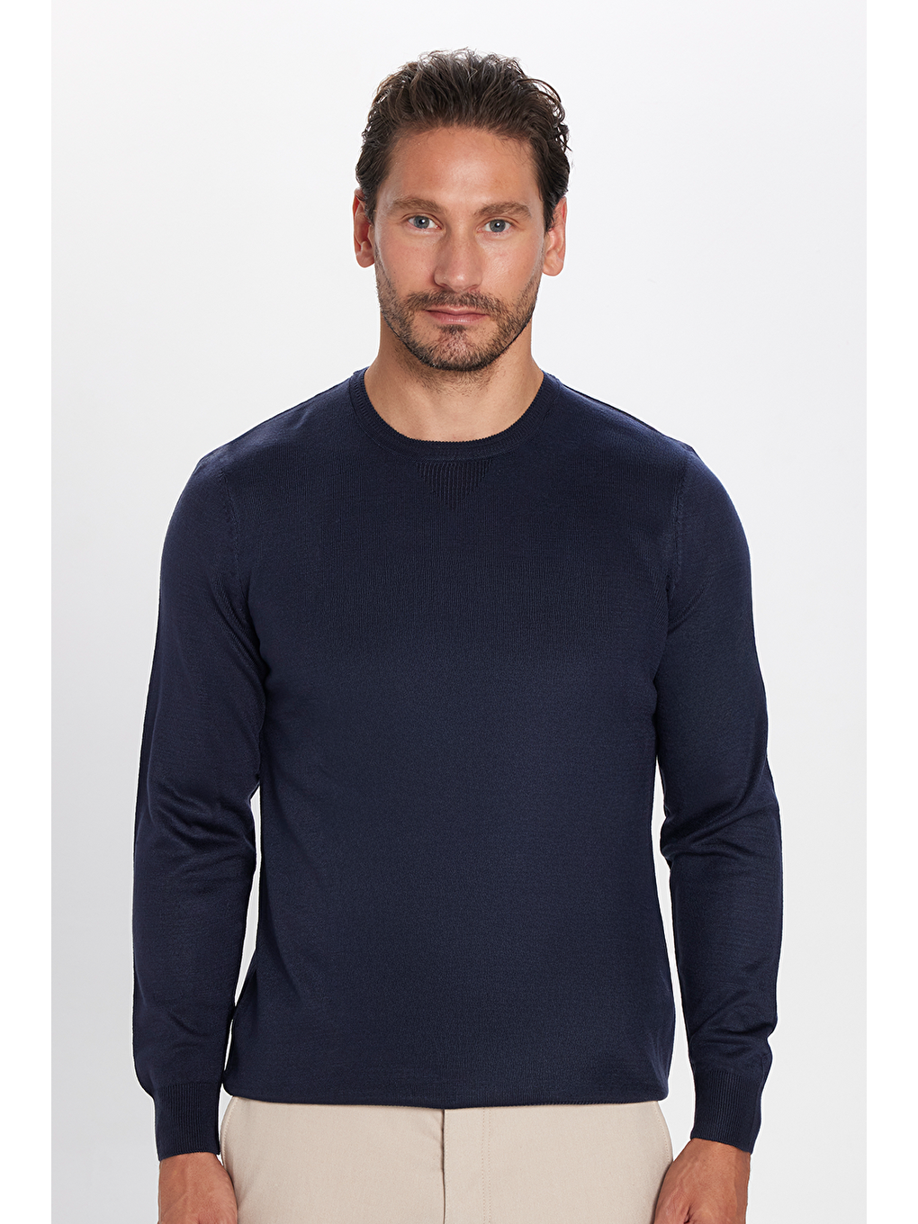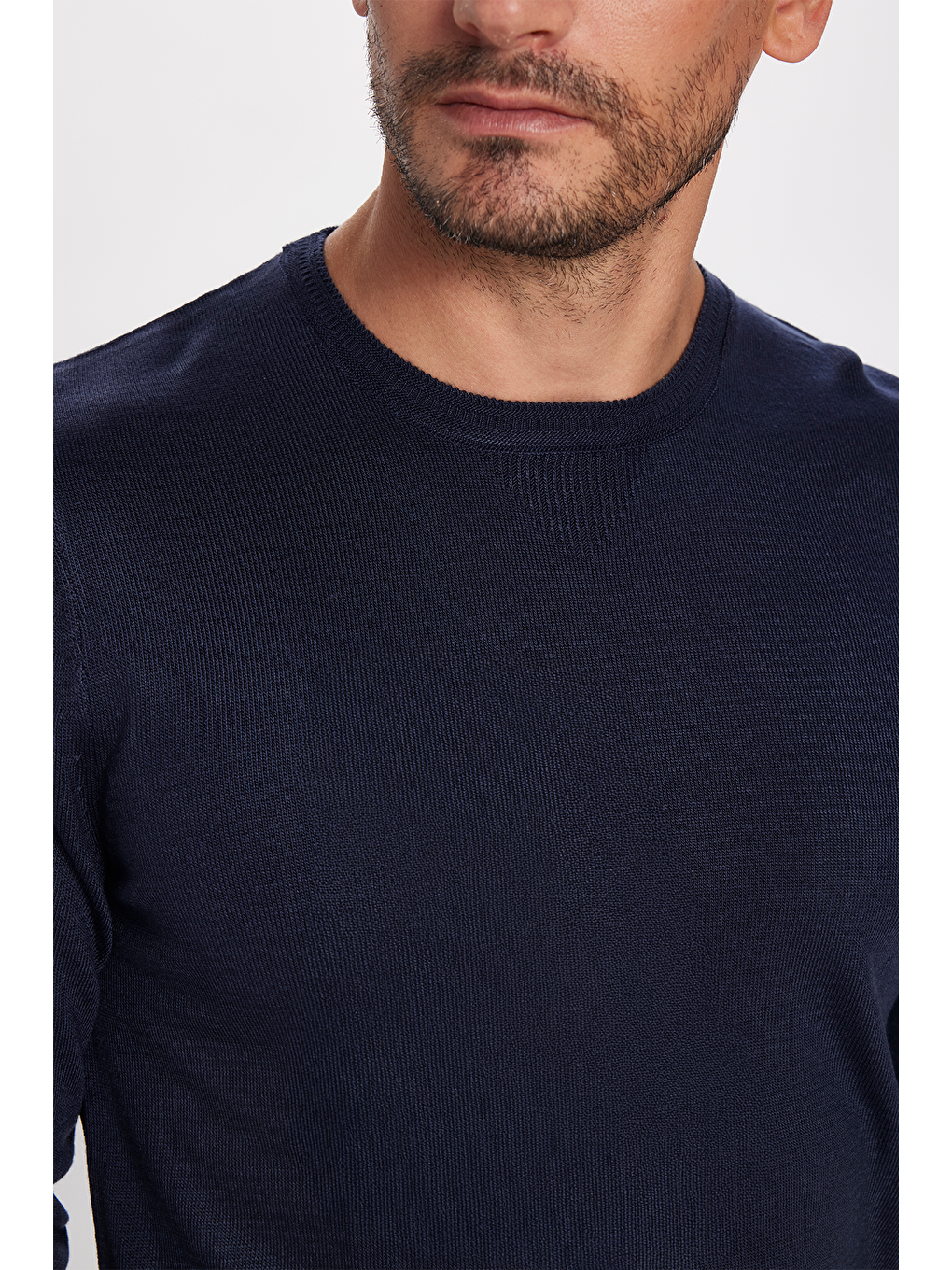 ژاکت بافتنی مردانه اسلیم فیت، اسلیم کات، بافت نرم، بدون پرز، سرمه‌ای، یقه گرد