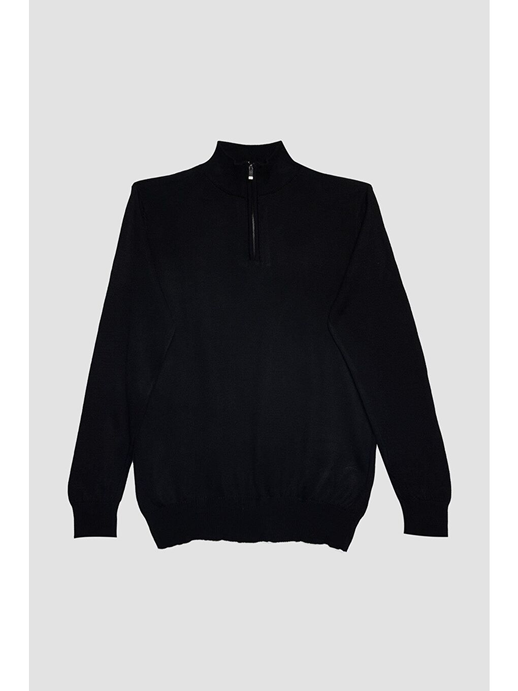 ژاکت بافتنی مردانه یقه ایستاده مشکی زیپدار پشمی برش معمولی فیت کلاسیک
