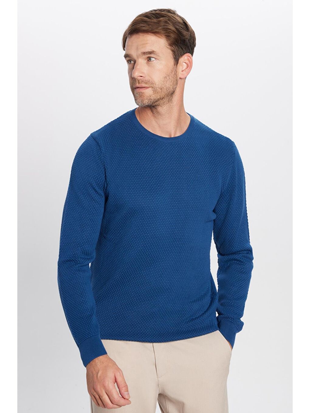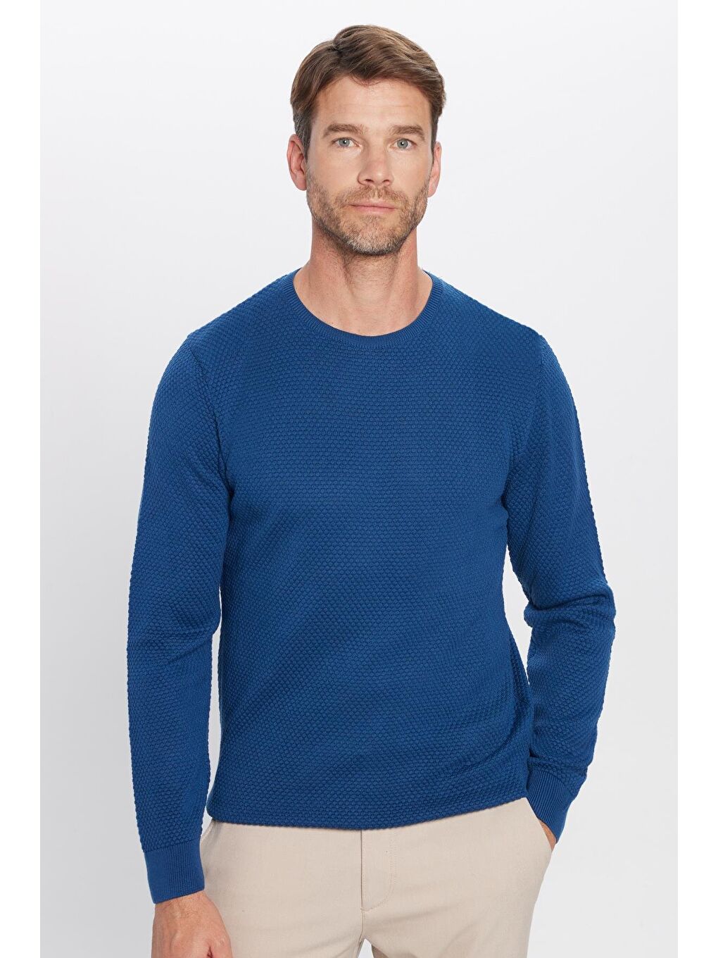 ژاکت بافتنی نیلی با یقه لانه زنبوری با تناسب استاندارد مردانه Indigo