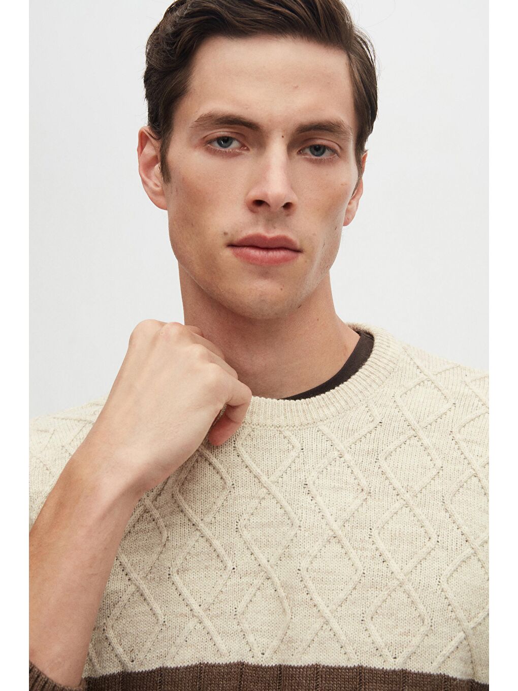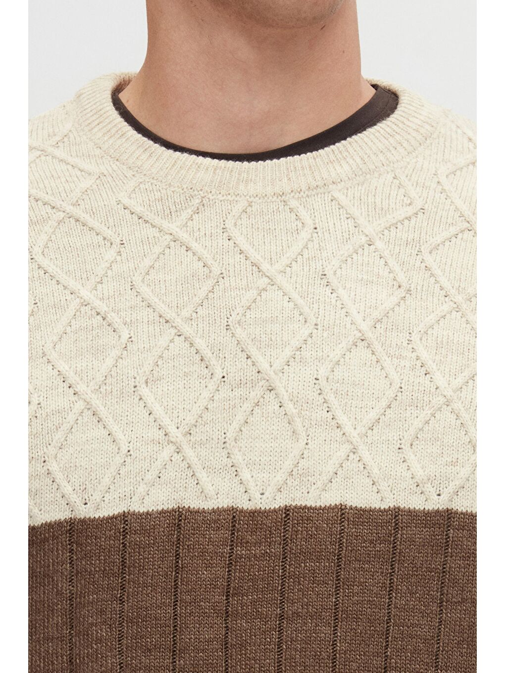 ژاکت بافتنی یقه گرد قهوهای الماسی بدون پرز، سایز معمولی