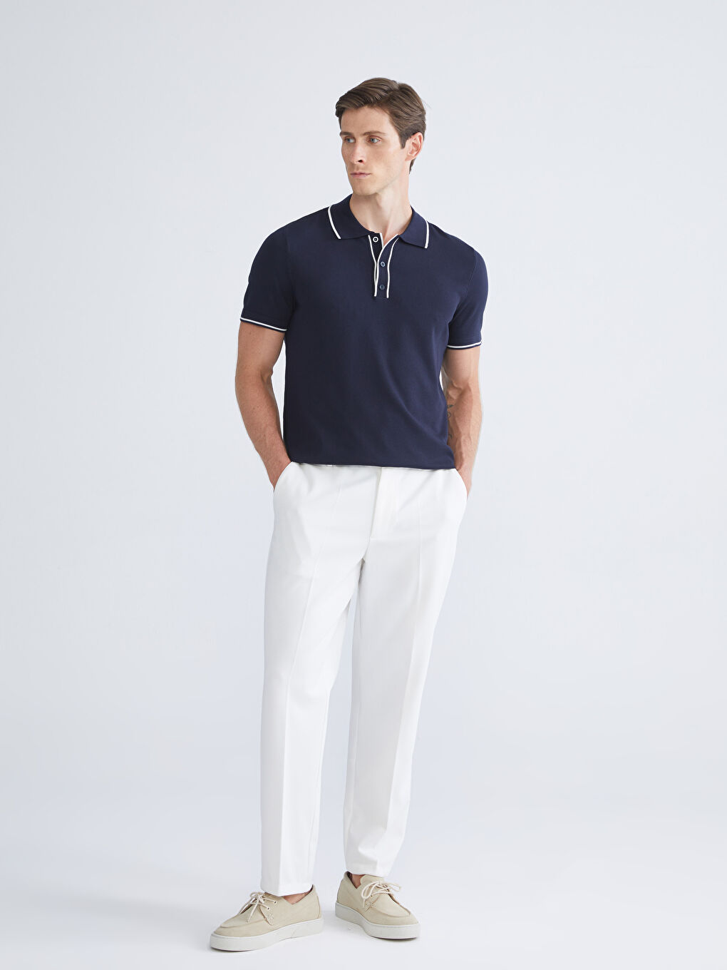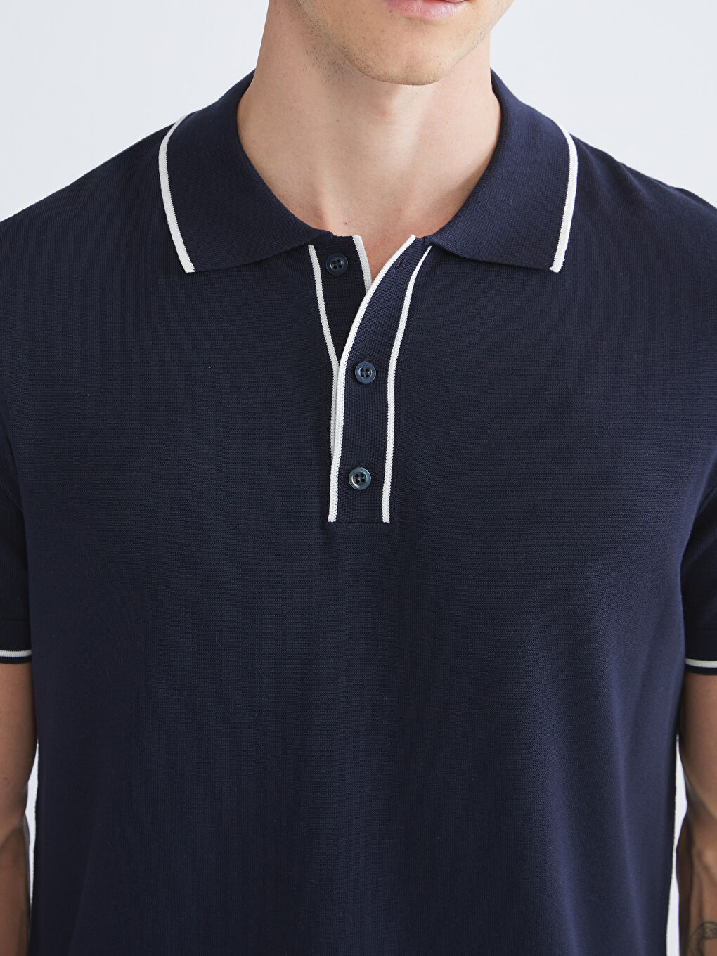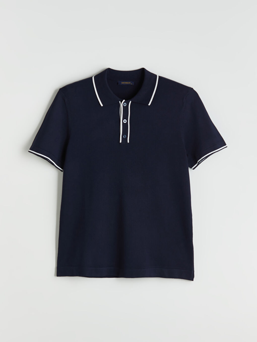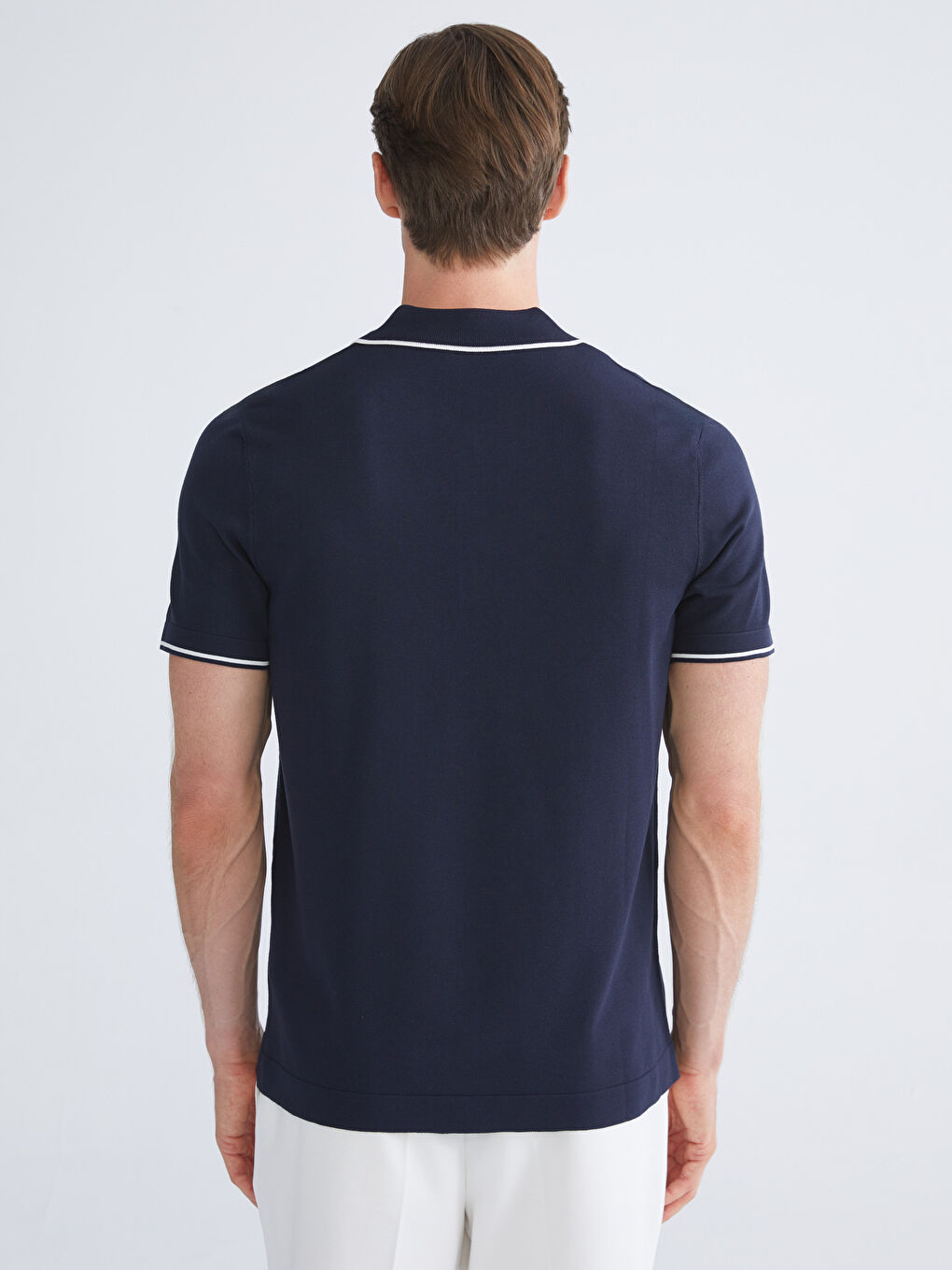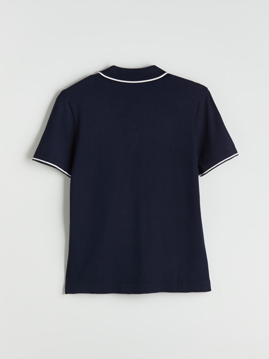 ژاکت بافتنی مردانه آستین کوتاه یقه دار سرمه ای