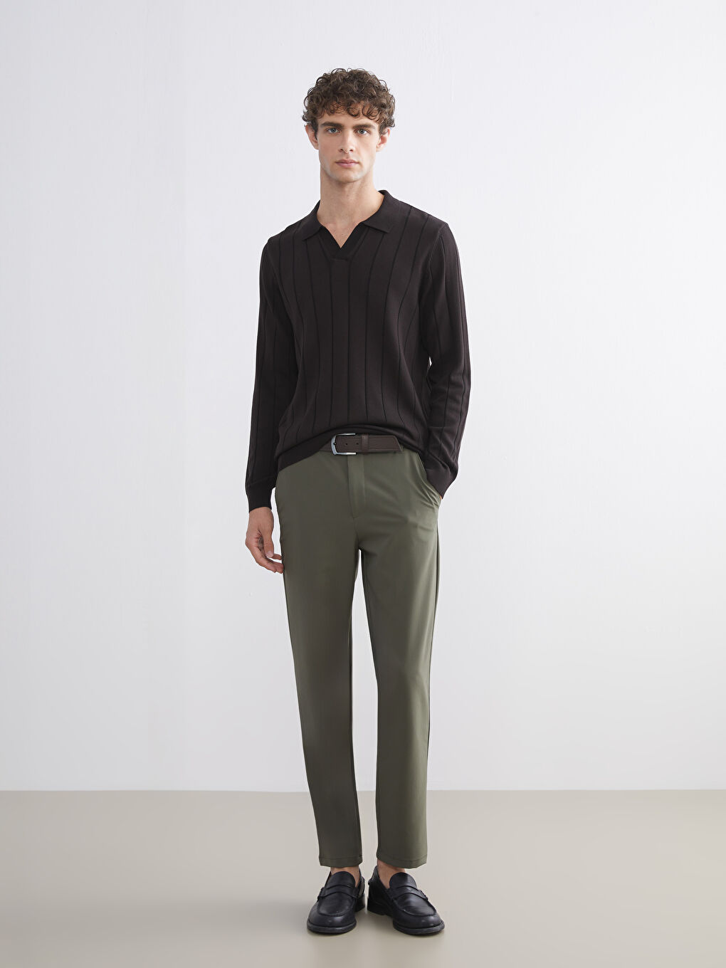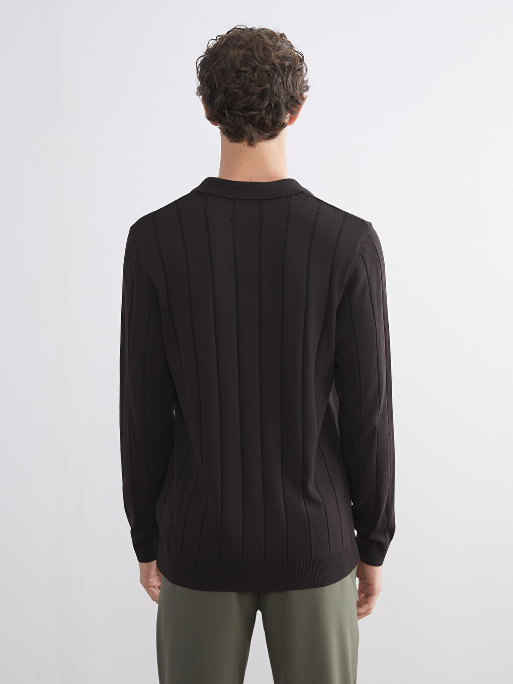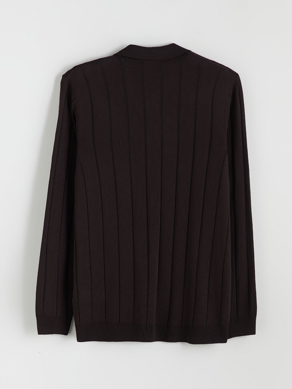 ژاکت بافتنی مردانه یقه پولو قهوه‌ای