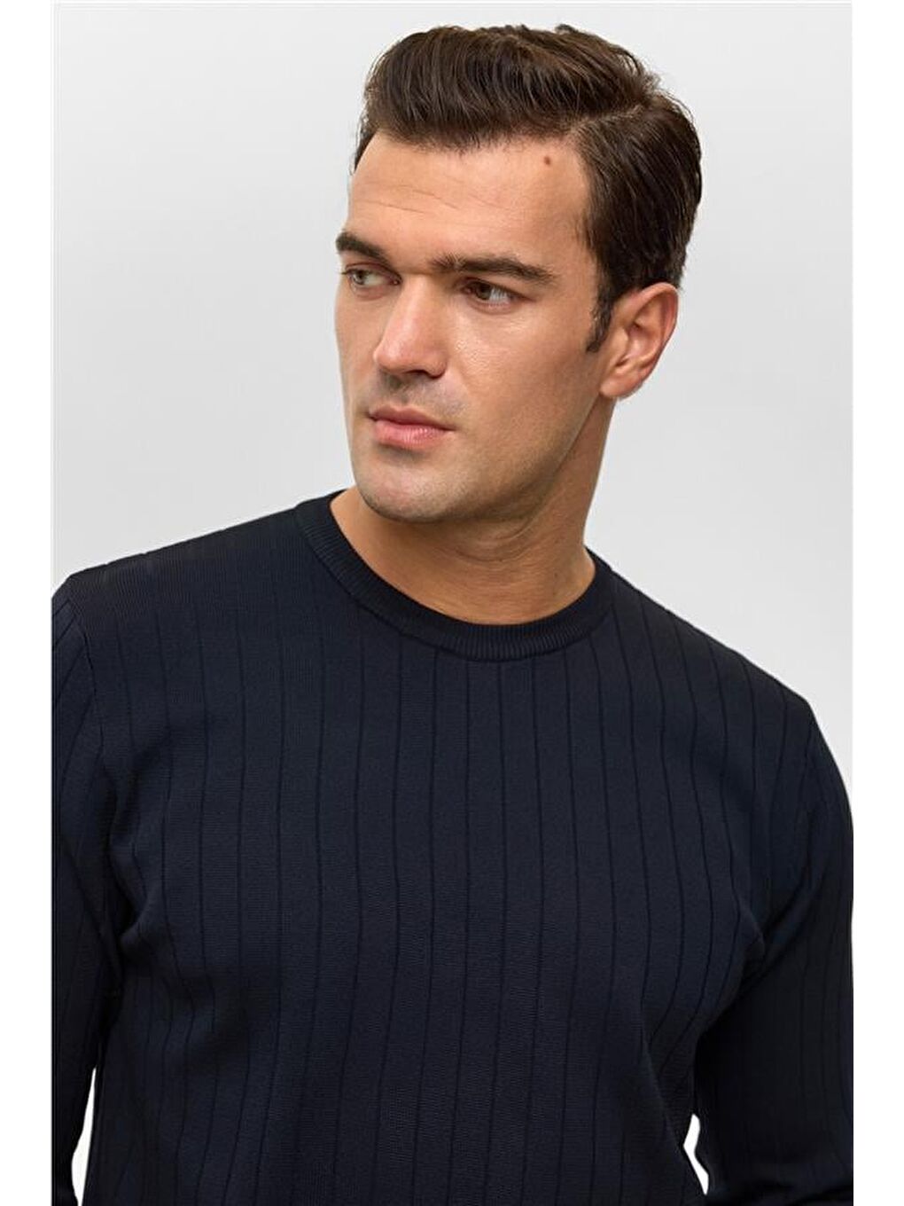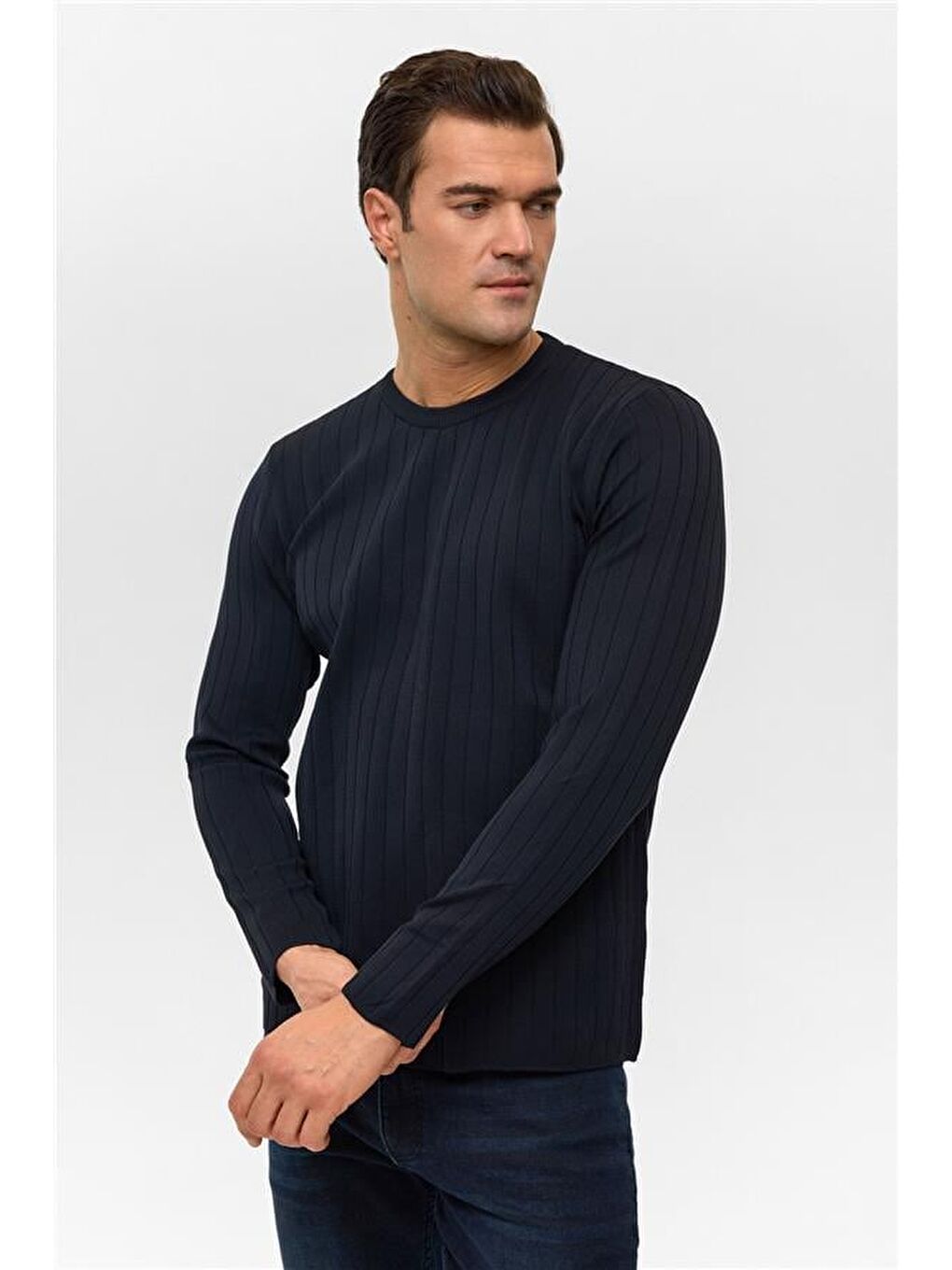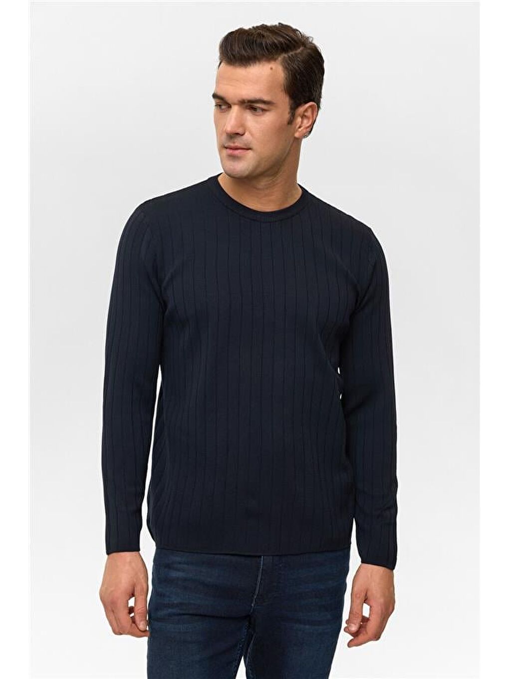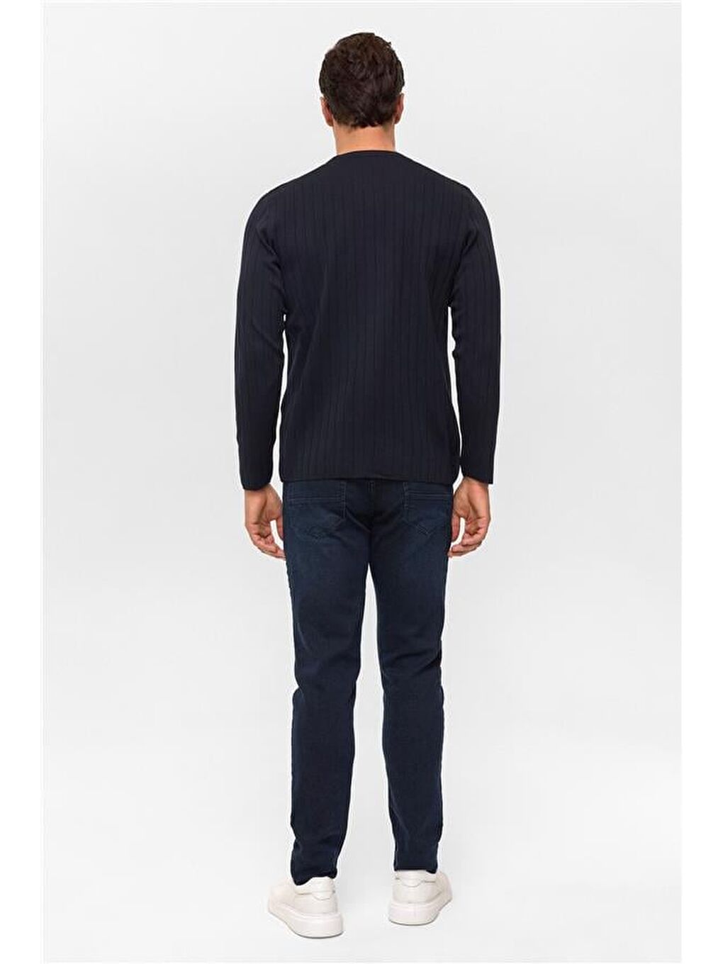 ژاکت یقه گرد طرح دار معمولی سرمه ای