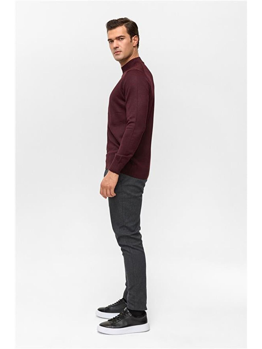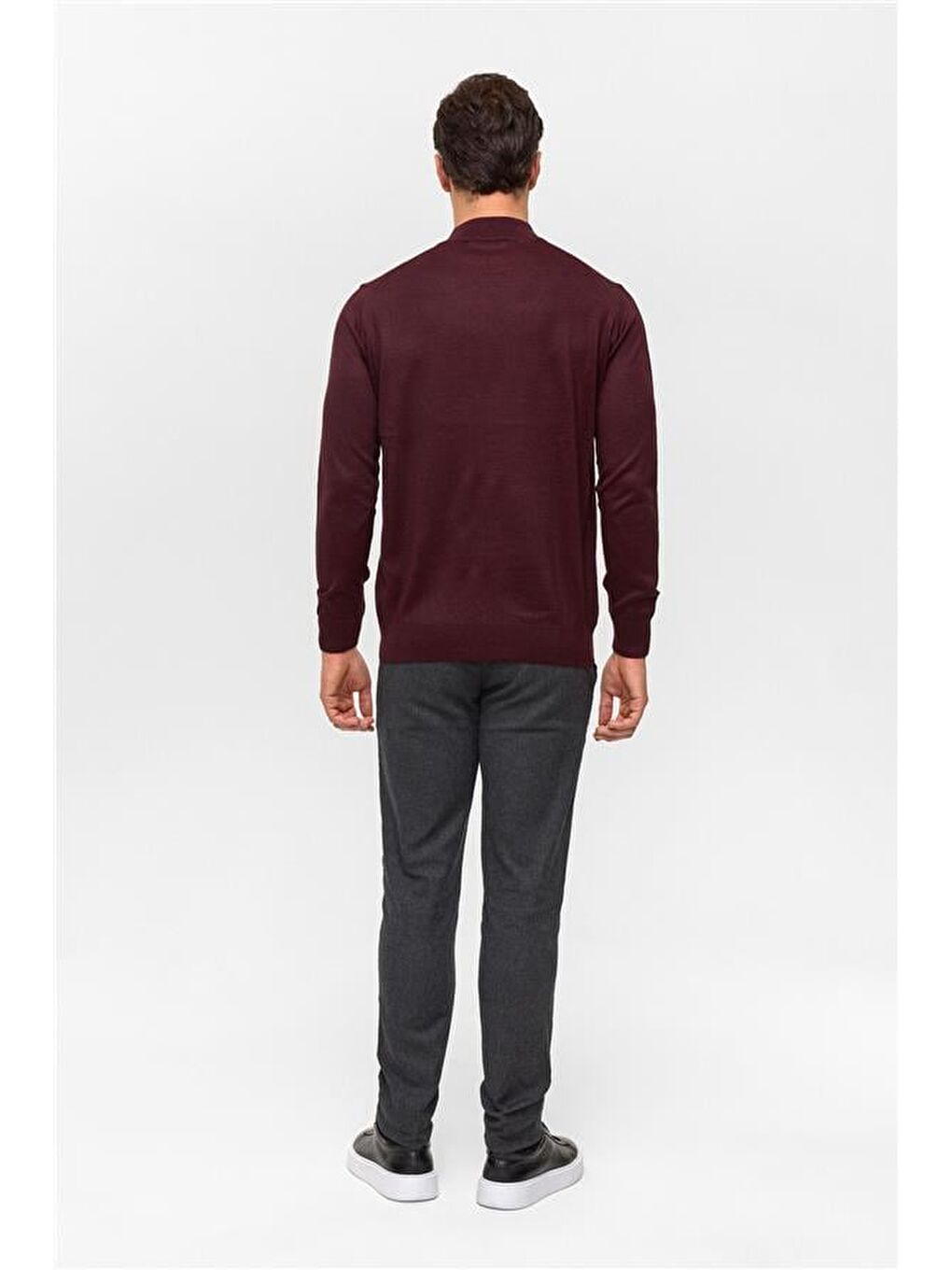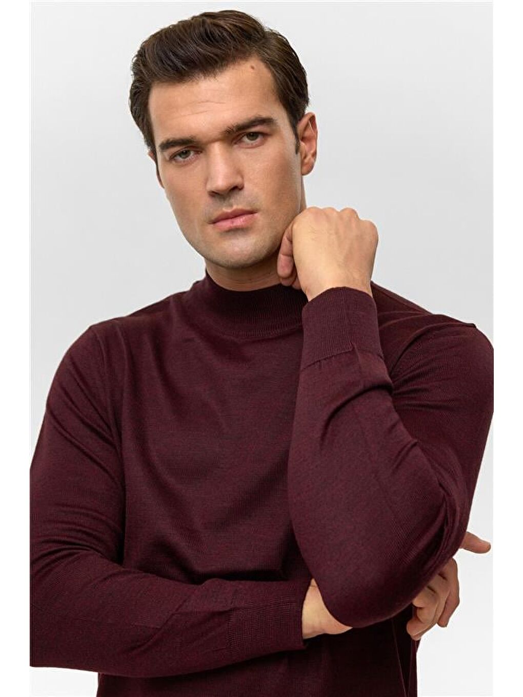 ژاکت یقه اسکی معمولی ساده و نیمه یقه اسکی زرشکی تیره زرشکی