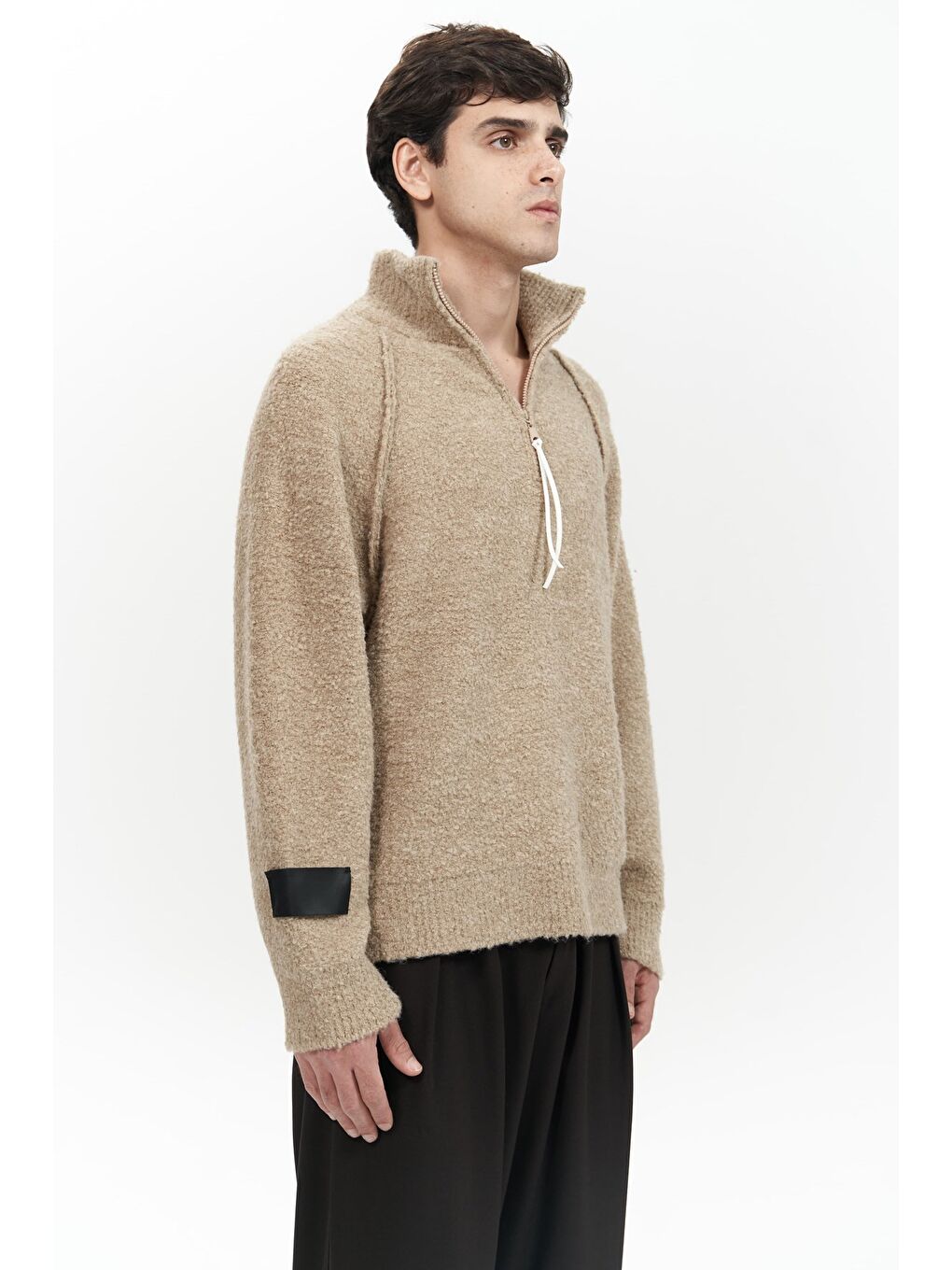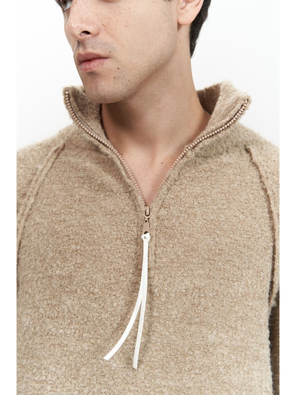ژاکت بافتنی مردانه سمور یا راسو با جزئیات زیپ بژ زین