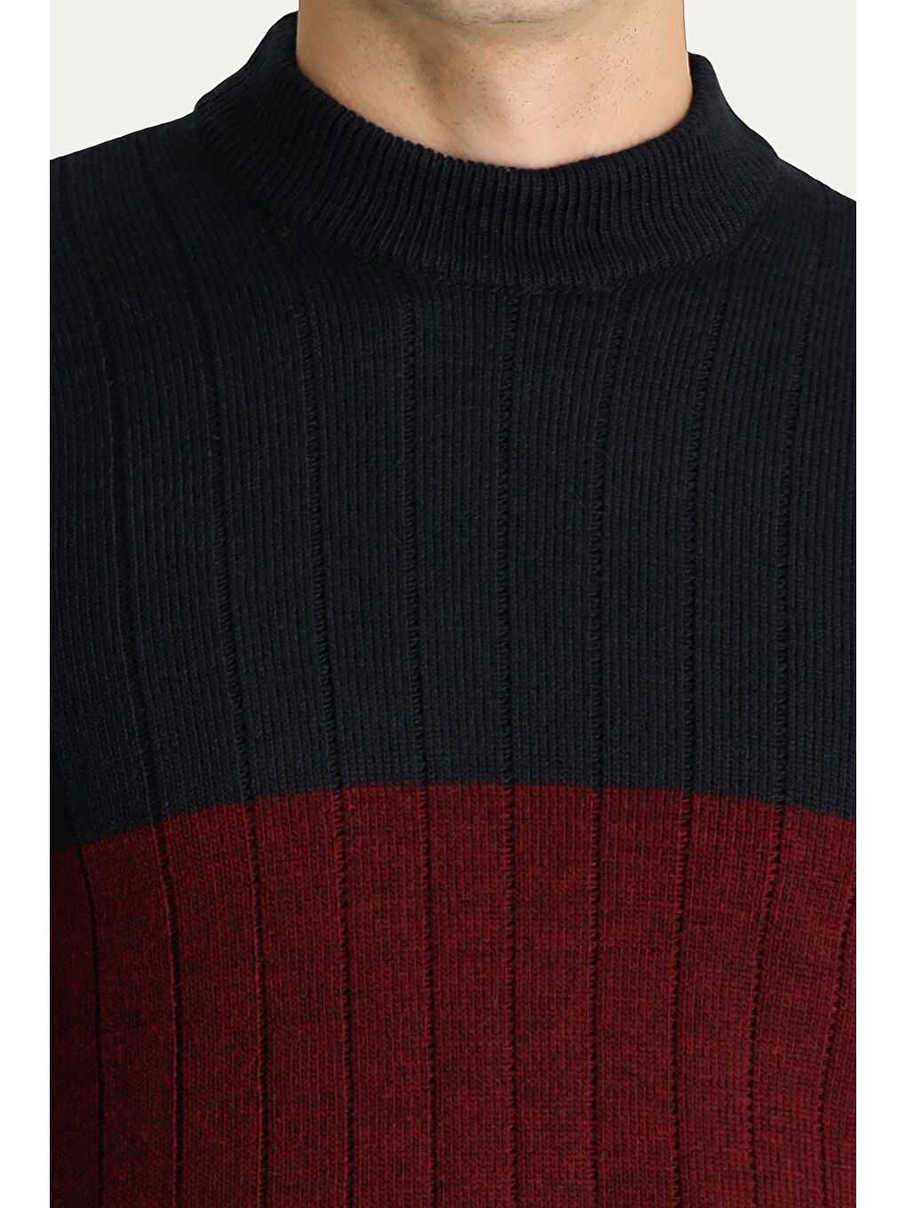 ژاکت بافتنی طرحدار یقه گرد سرمهای، اسلیم فیت، اسلیم کات