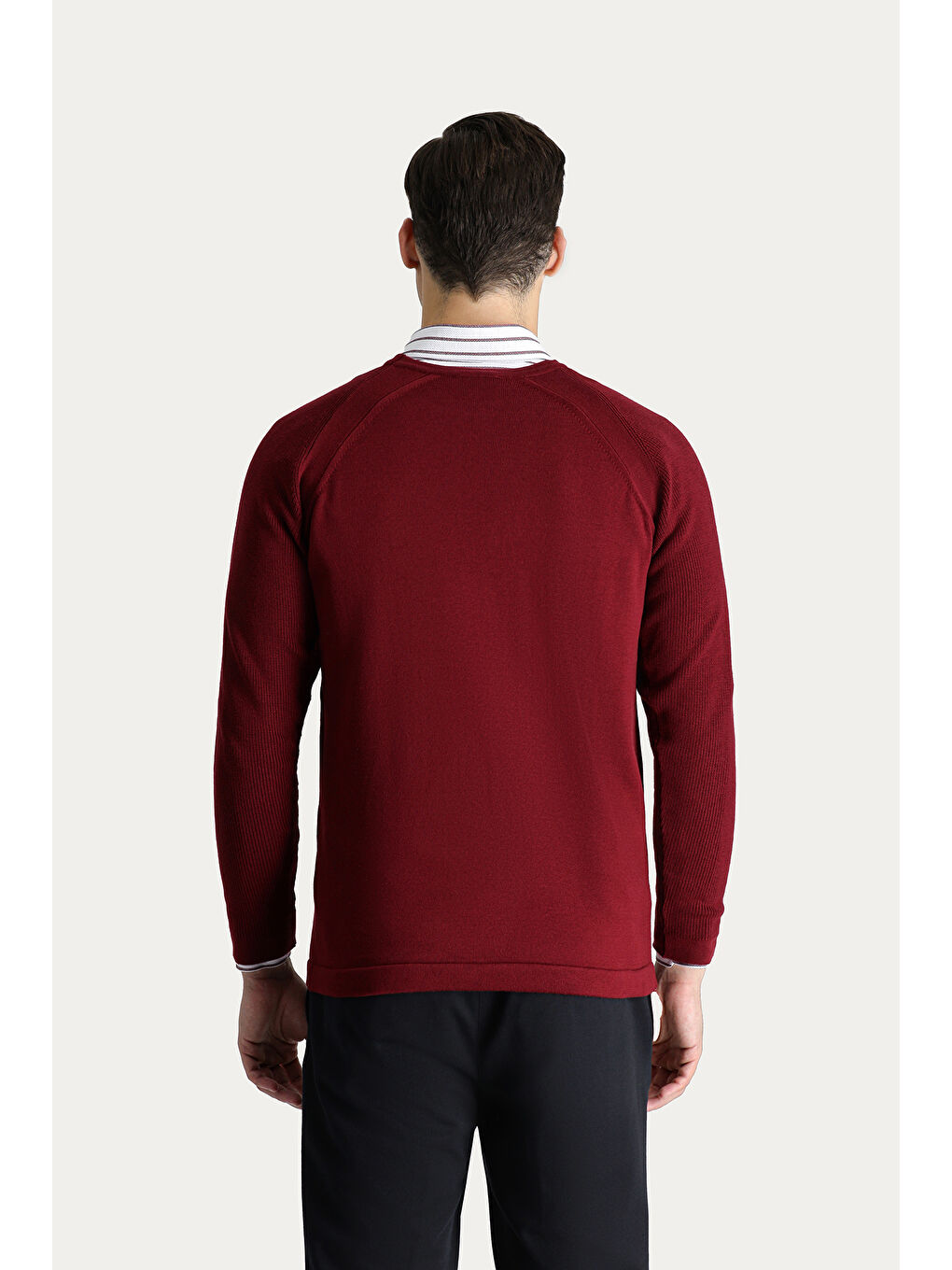 ژاکت بافتنی نخی یقه گرد زرشکی، اسلیم فیت، اسلیم کات