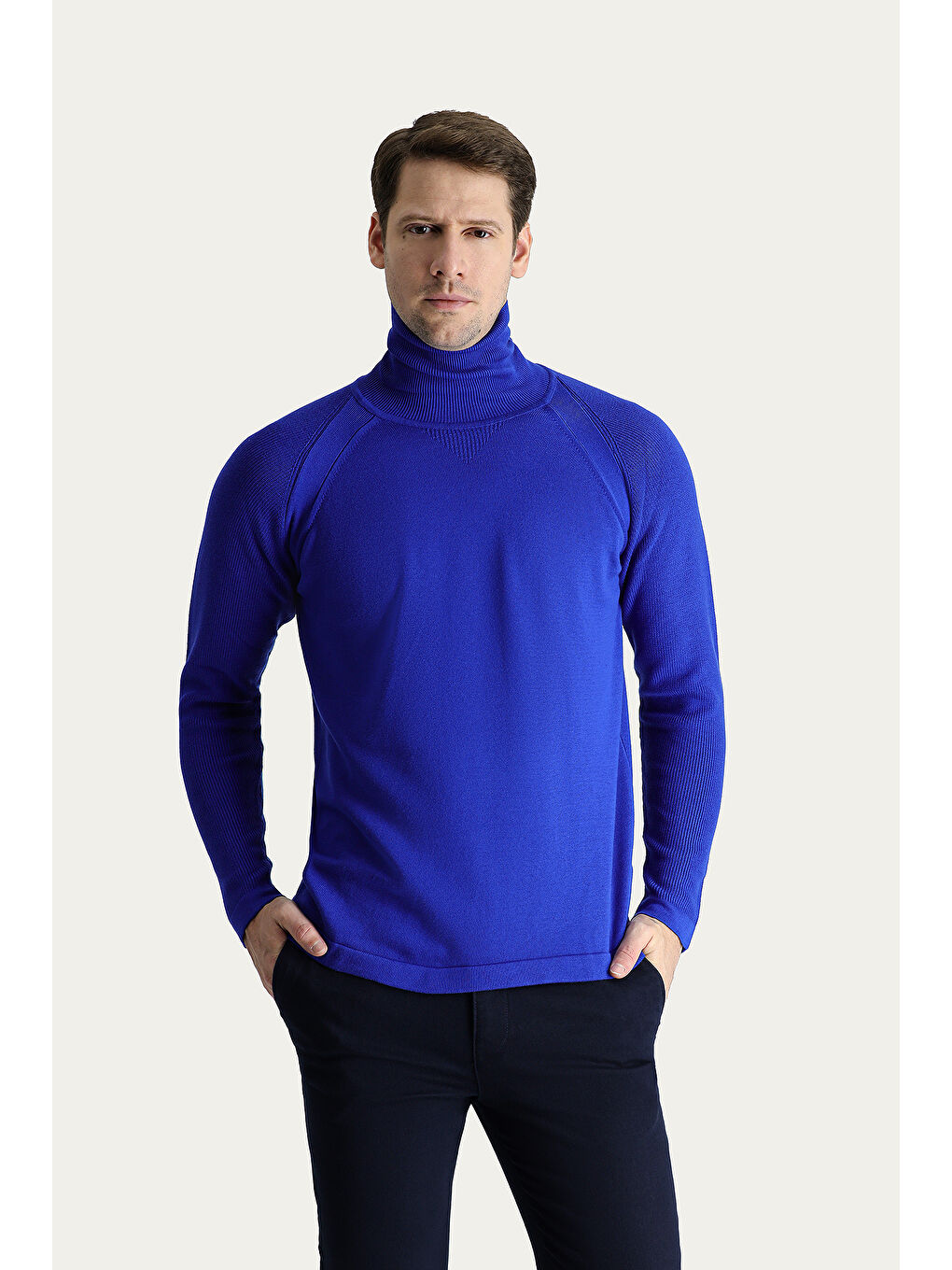 ژاکت بافتنی نخی طرحدار یقه اسکی آبی اسلیم فیت اسلیم کات