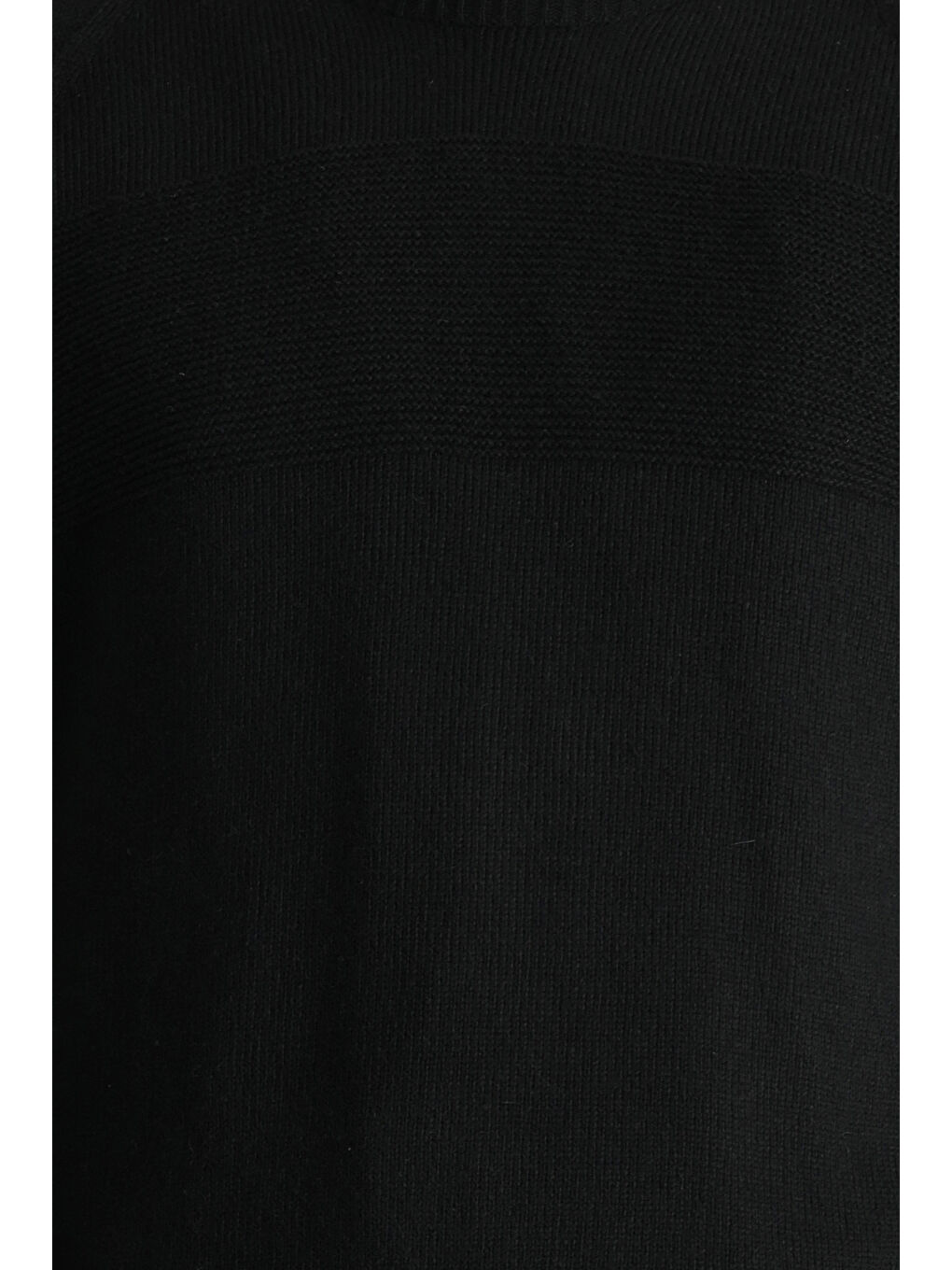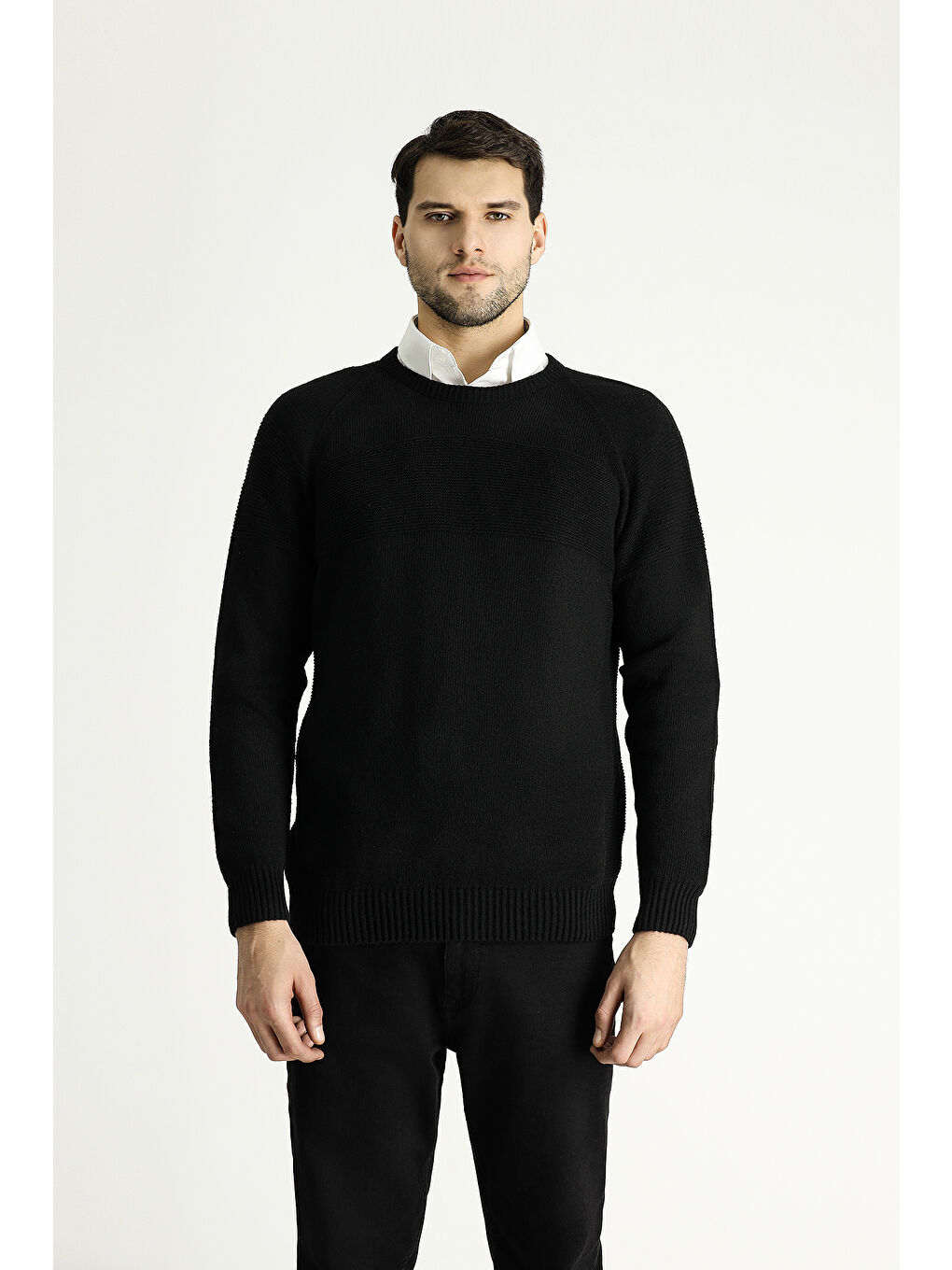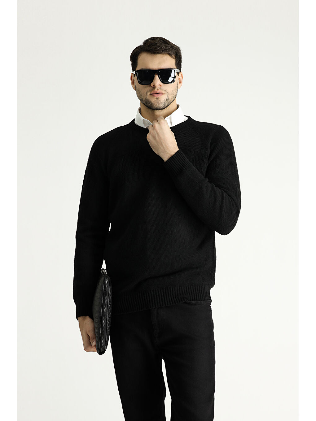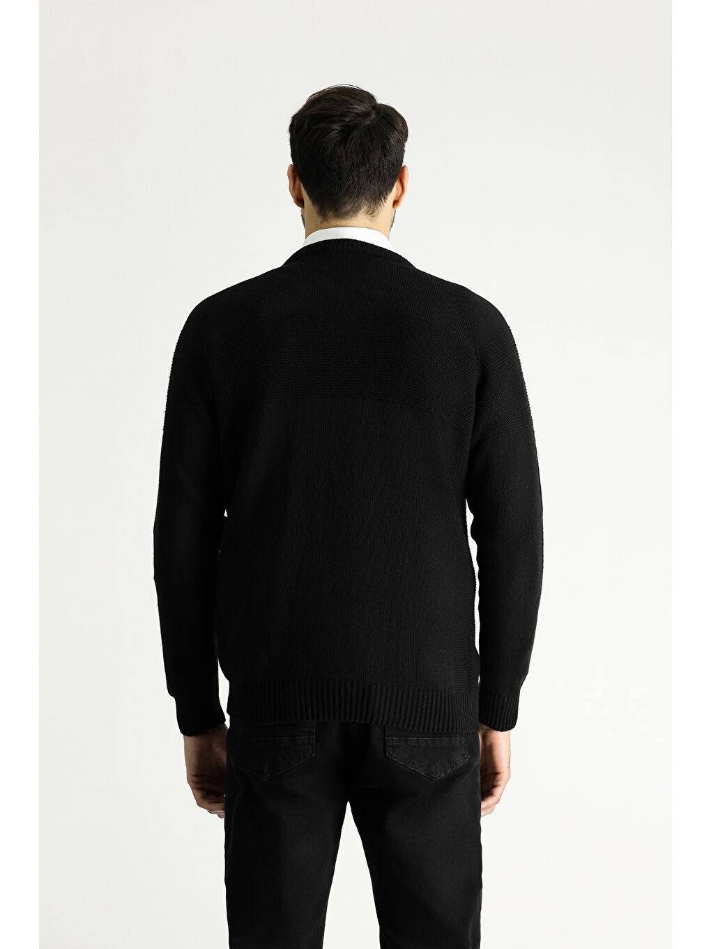 ژاکت بافتنی پشمی طرح‌دار بدون درز یقه گرد مشکی، اسلیم فیت، اسلیم کات