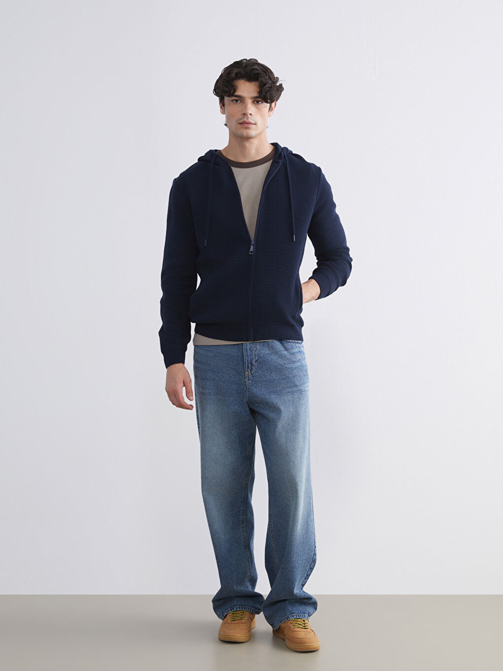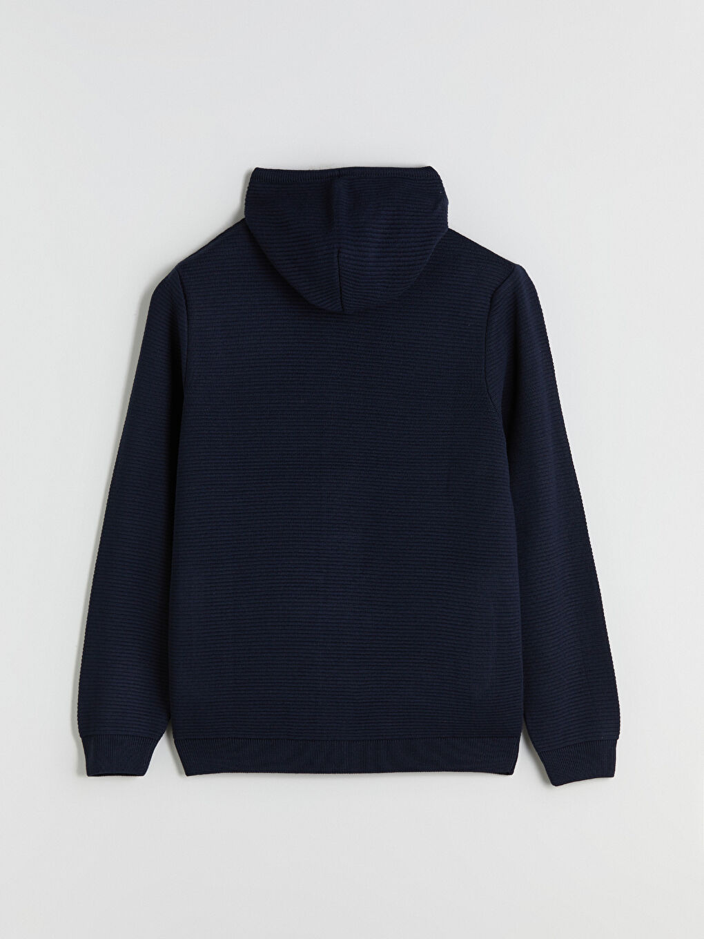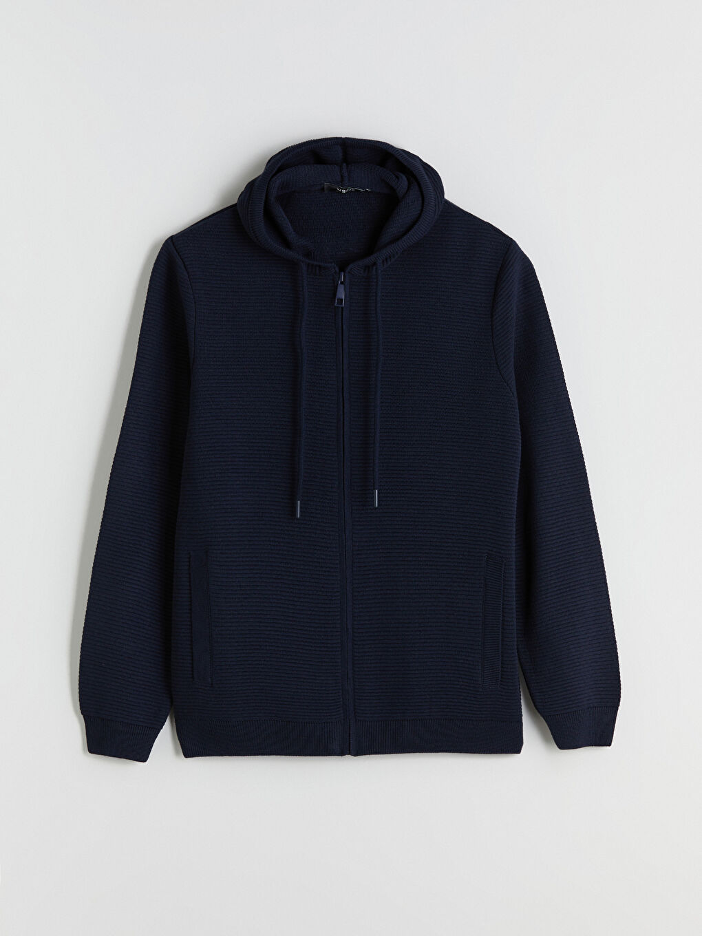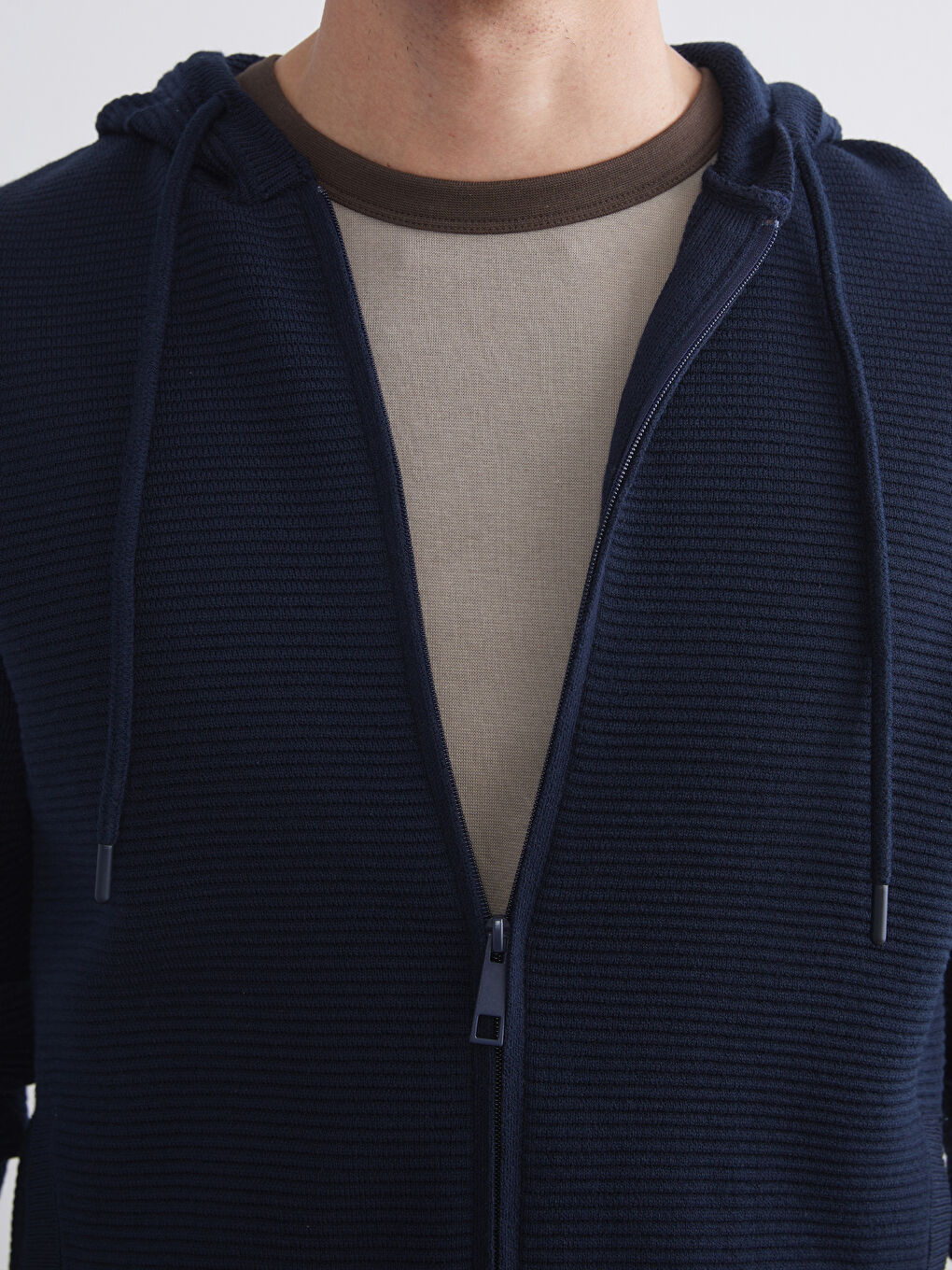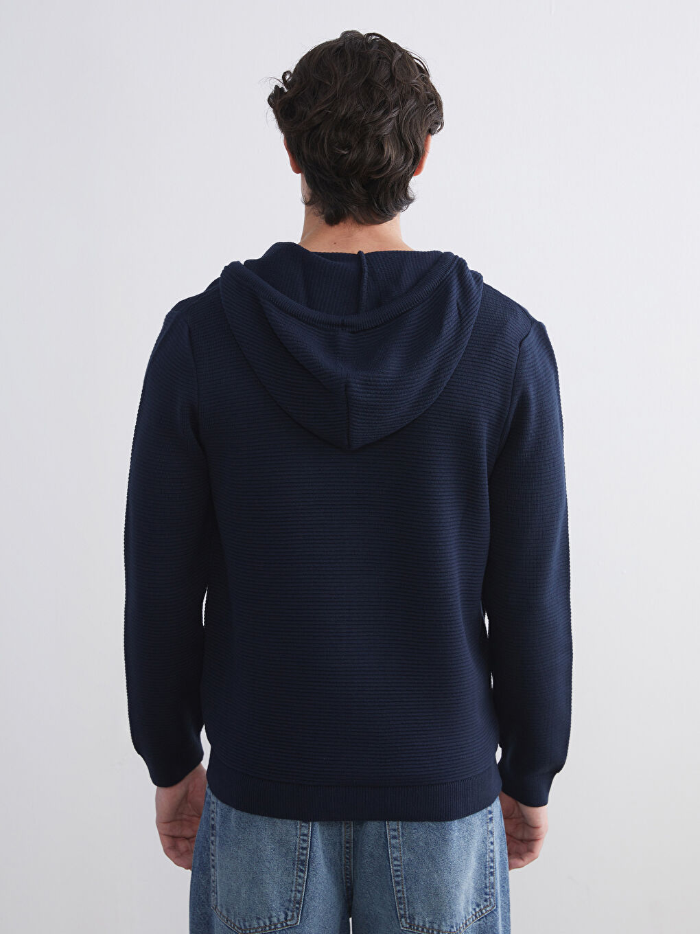 ژاکت بافتنی مردانه آستین بلند کلاه دار سرمه ای