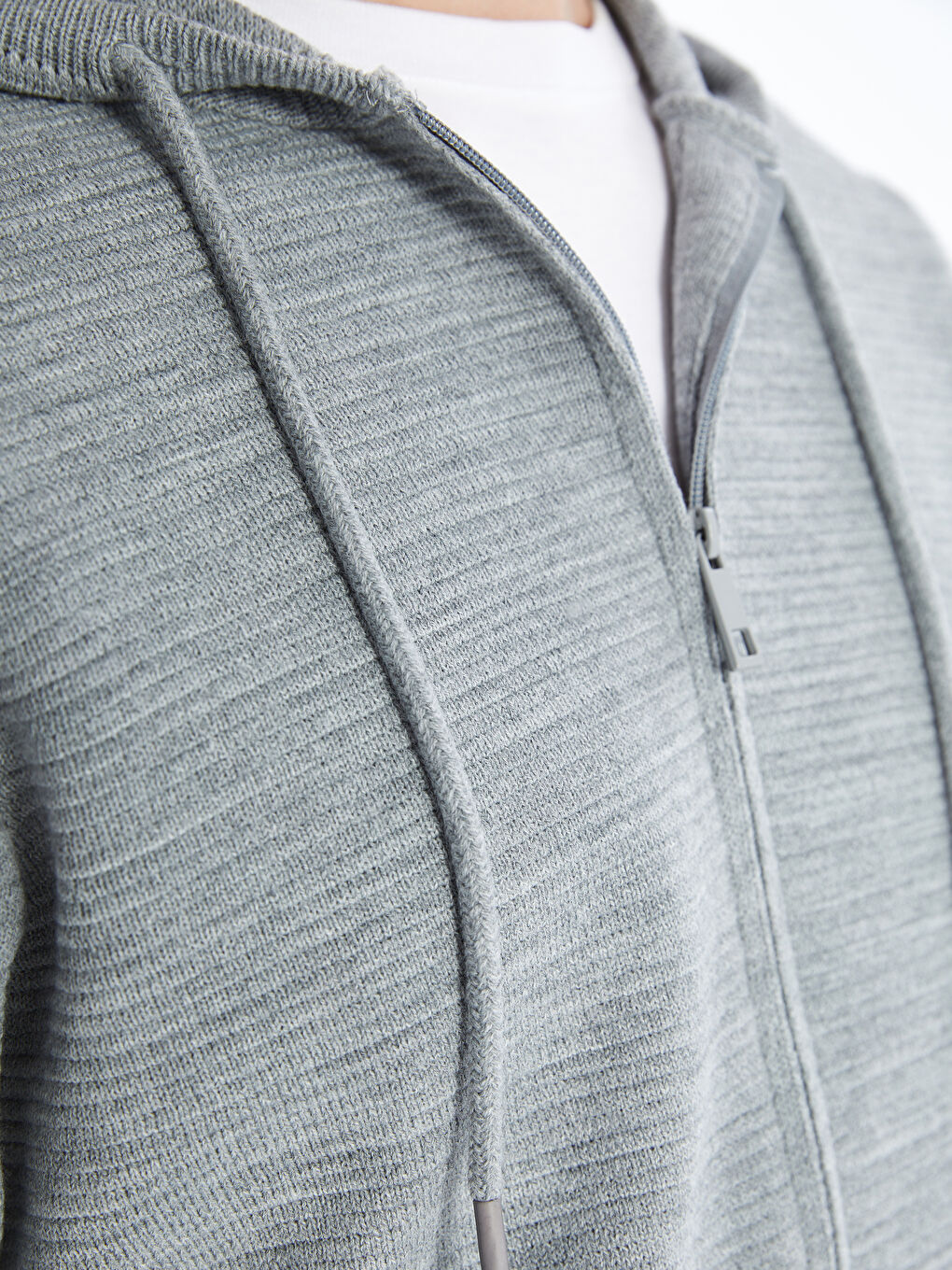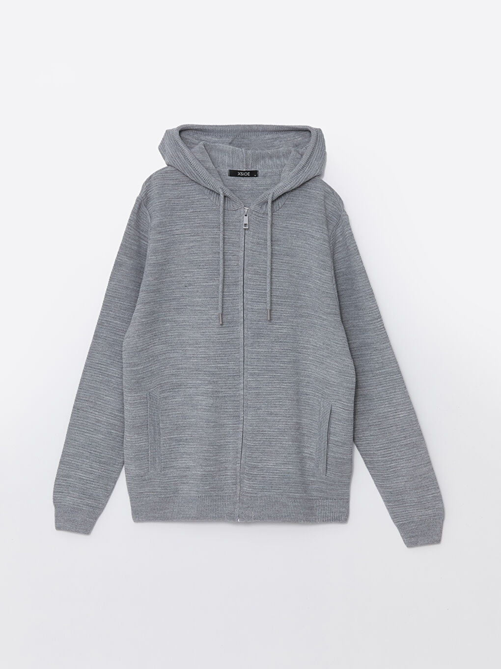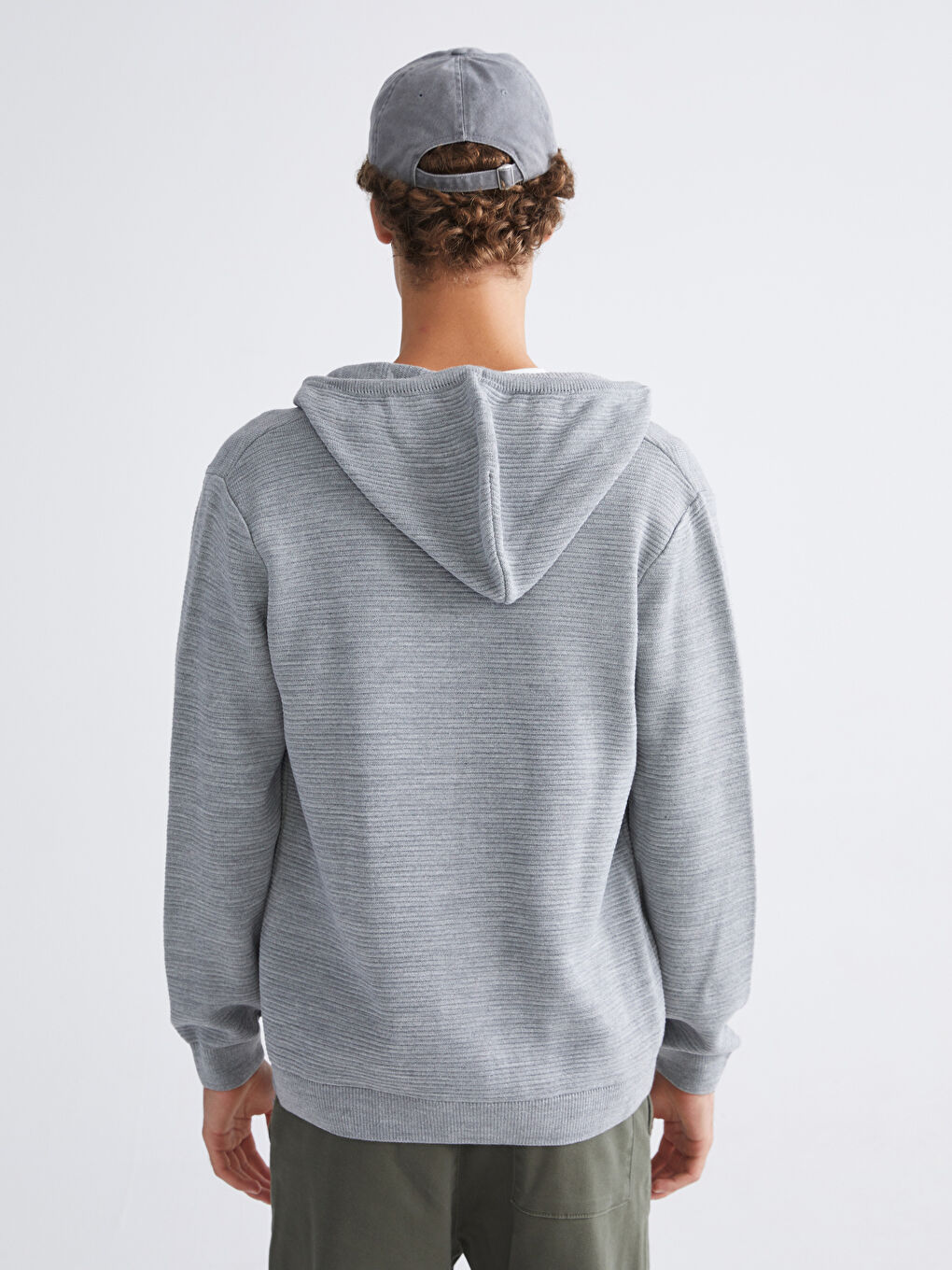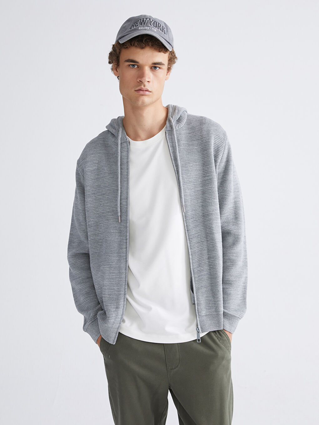 ژاکت بافتنی مردانه آستین بلند کلاه دار خاکستری