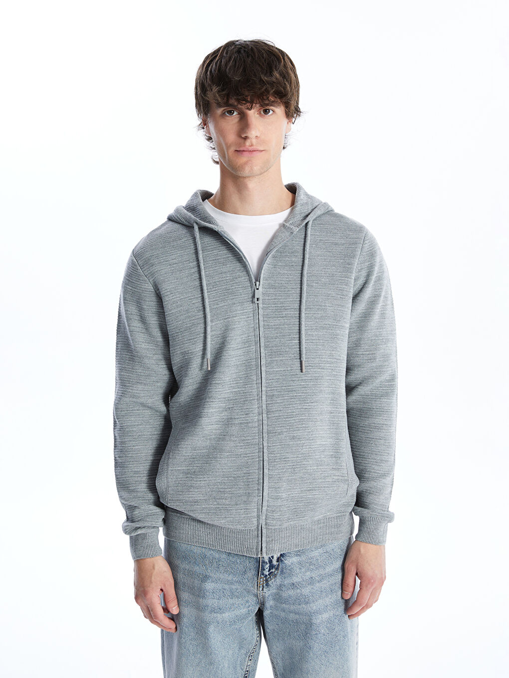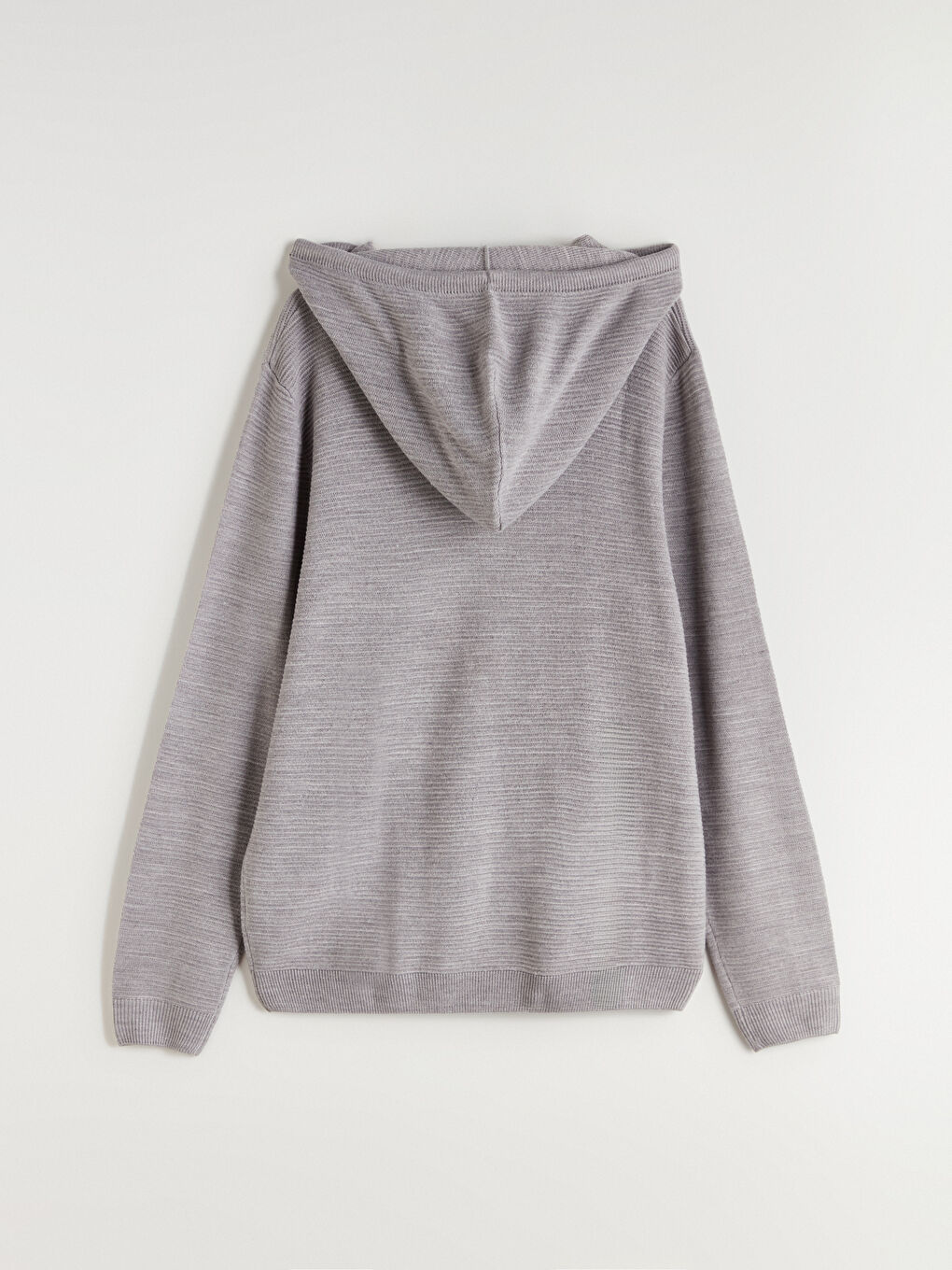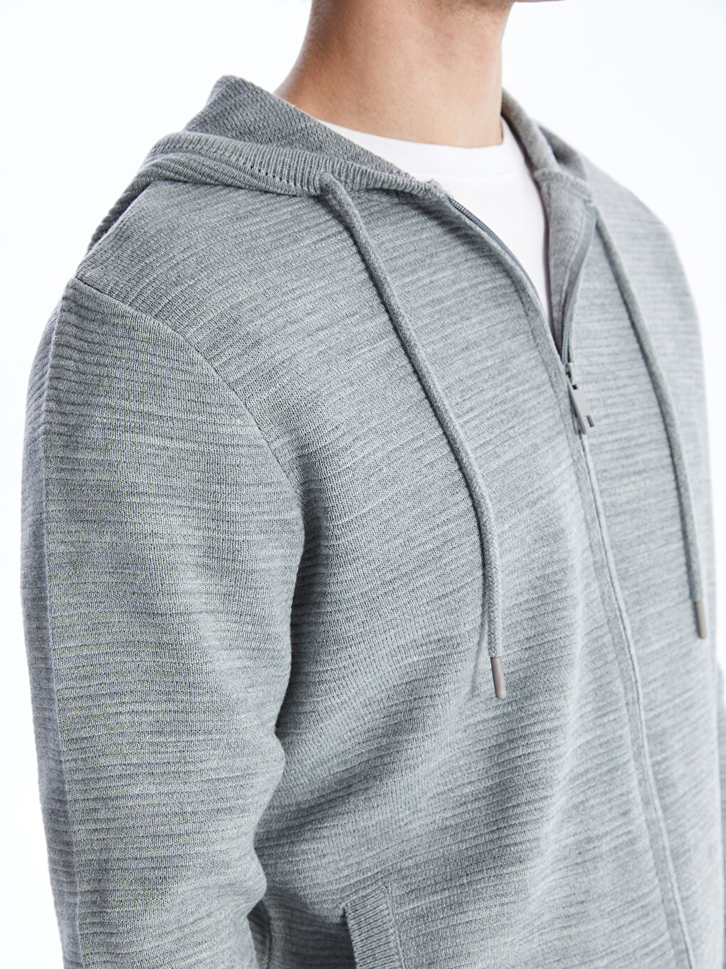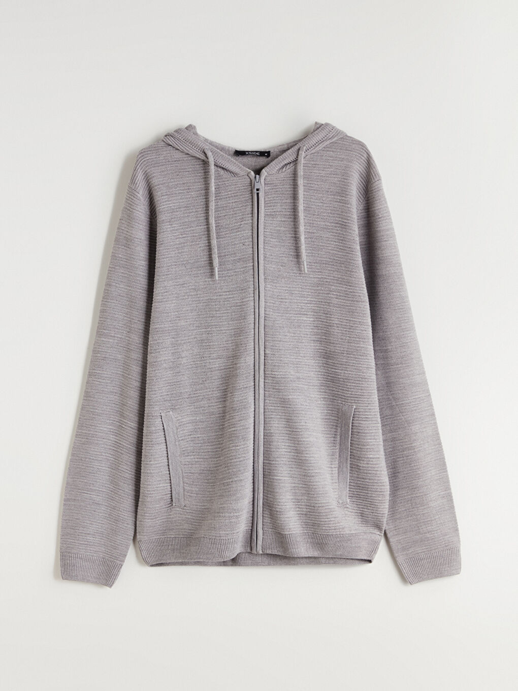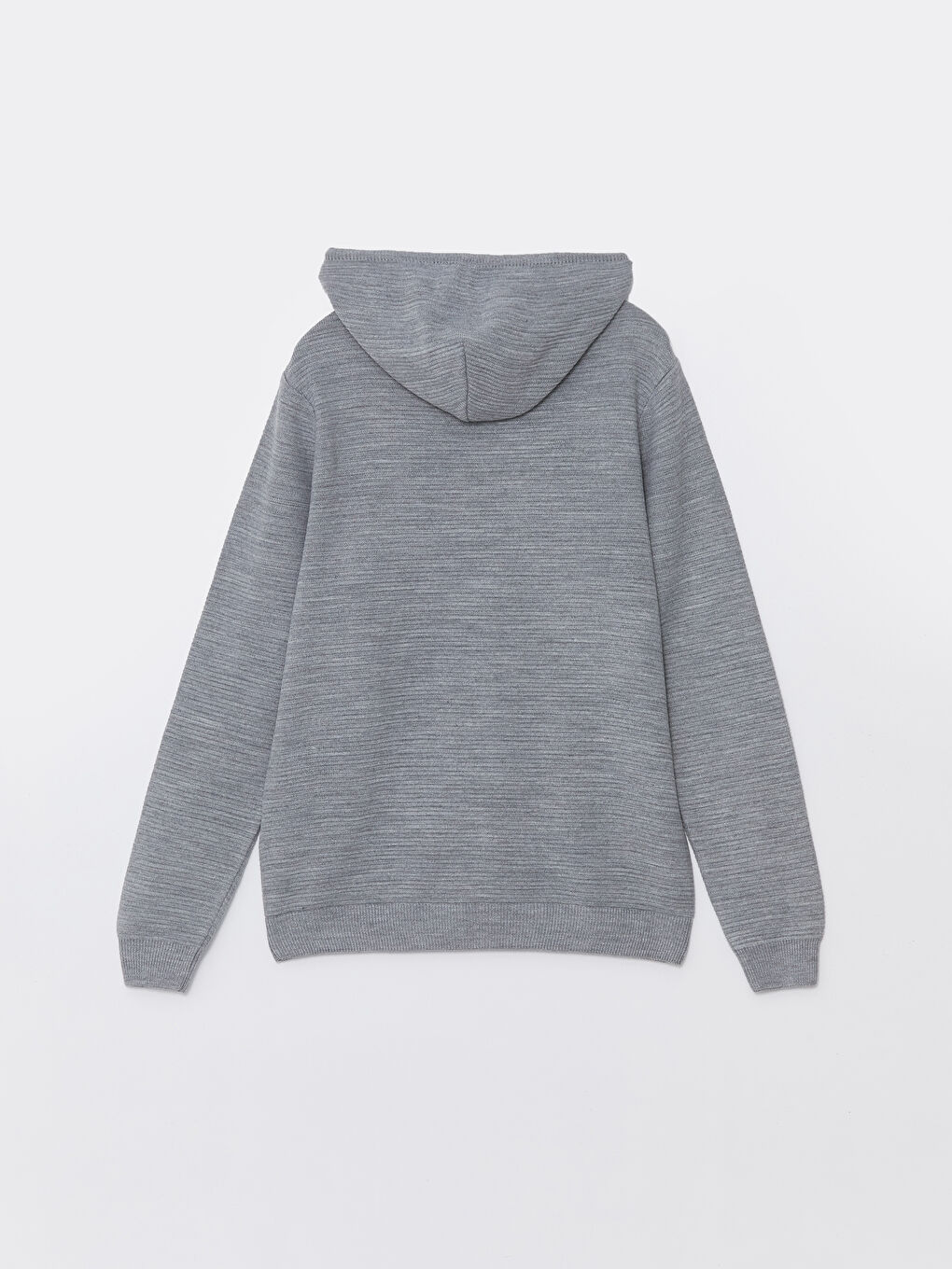 ژاکت بافتنی مردانه آستین بلند کلاه دار خاکستری