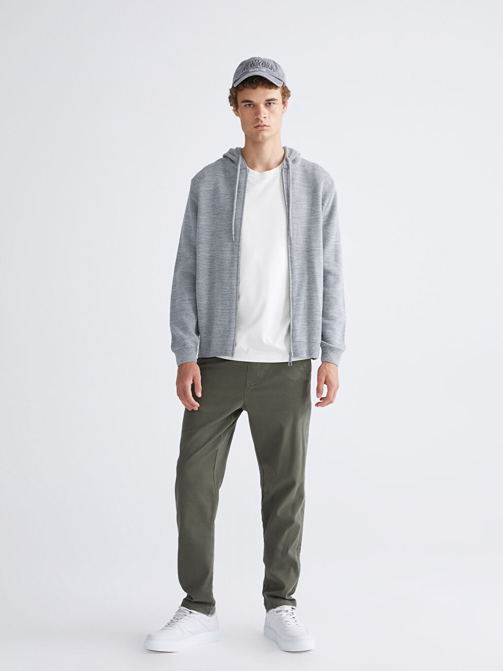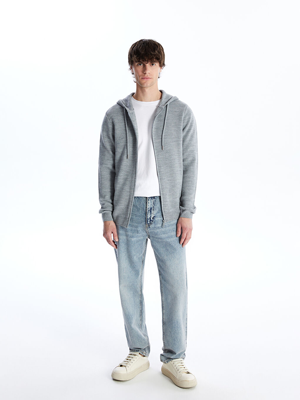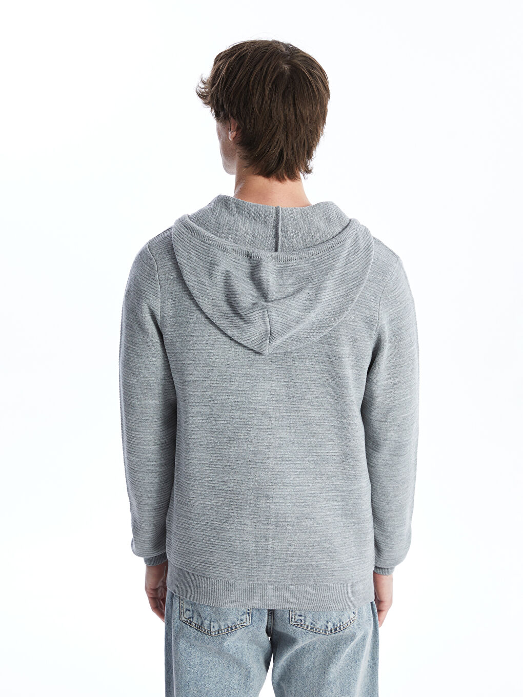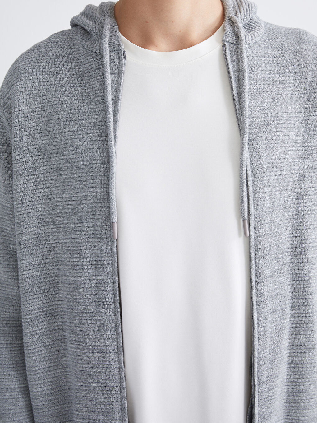 ژاکت بافتنی مردانه آستین بلند کلاه دار خاکستری
