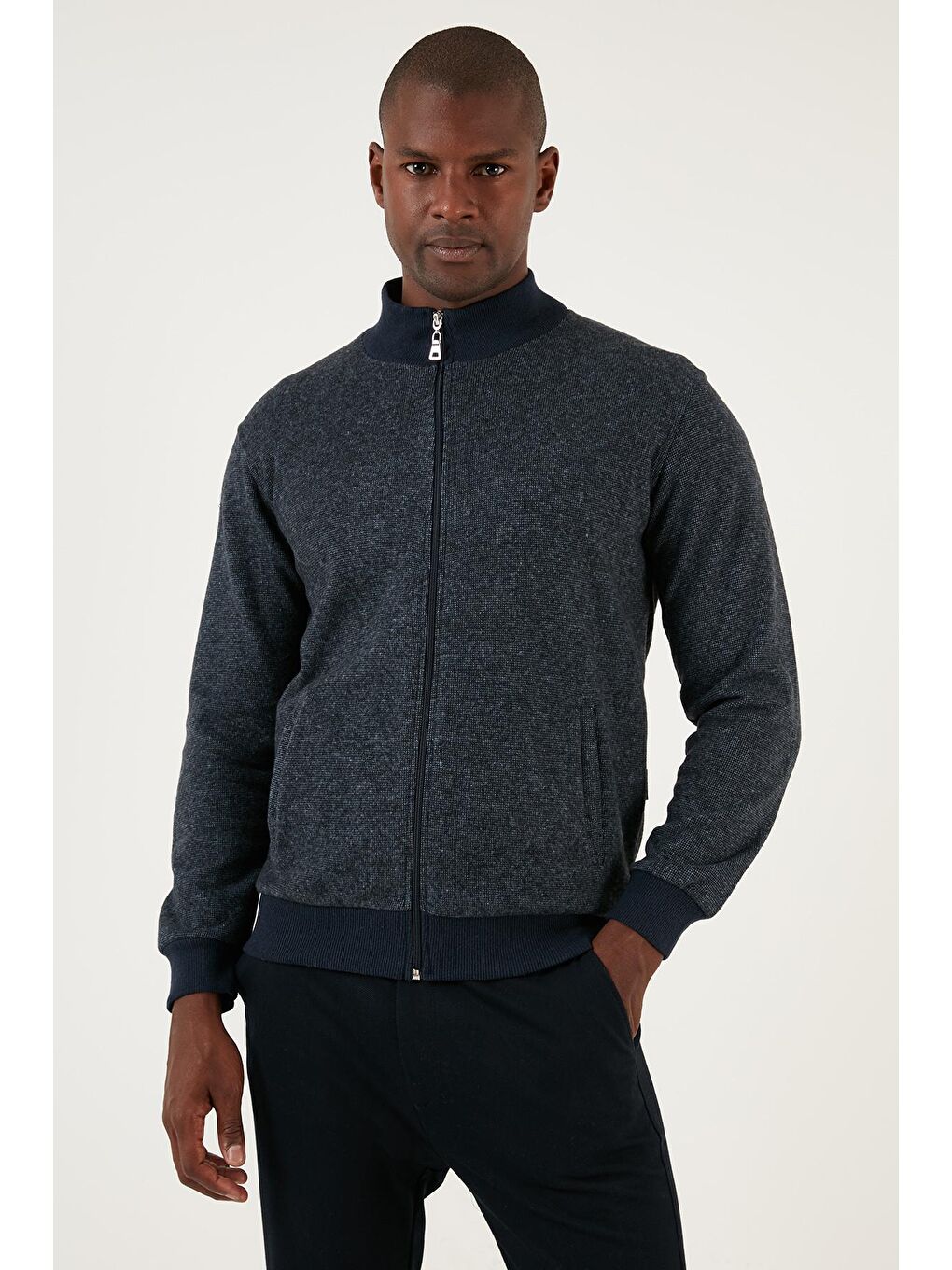 ژاکت کش باف پشمی زیپدار یقه ایستاده طرح ایندیگو کد ۴۵۶۲۱۰