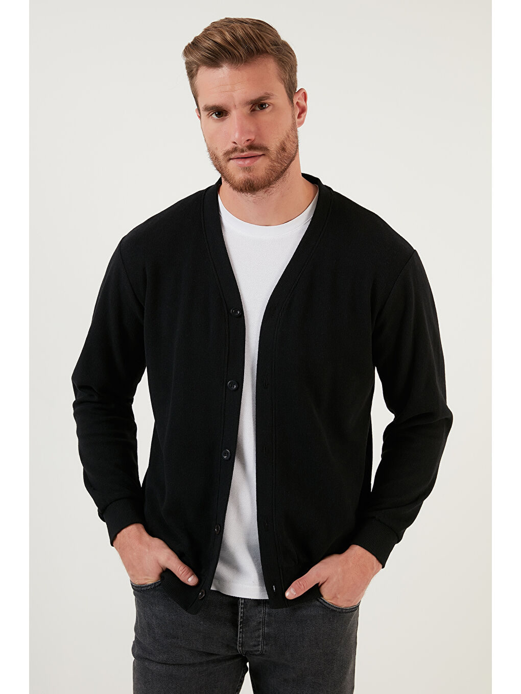 مدل: ژاکت کشباف فصل: پاییز/زمستان جنس: ۸۰٪ پنبه ۲۰٪ پلیاستر یقه: یقه هفت اطلاعات آستین: آستین بلند اطلاعات نحوه بسته شدن: دکمهدار اطلاعات الگو: فرم معمولی ابعاد مدل: قد: ۱.۸۸ سانتیمتر / سینه: ۱۰۰ سانتیمتر / کمر: ۸۱ سانتیمتر / باسن: ۱۰۱ سانتیمتر / سایز: M محل تولید: ترکیه