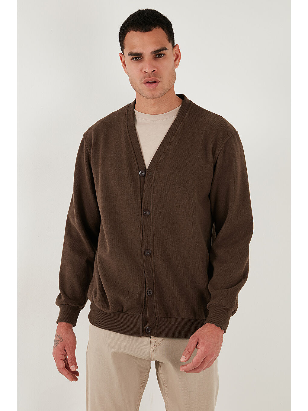 ژاکت بافتنی یقه هفت دکمهدار قهوهای سایز معمولی، بسته دو عددی، کد ۴۵۶۲۰۵S۲
