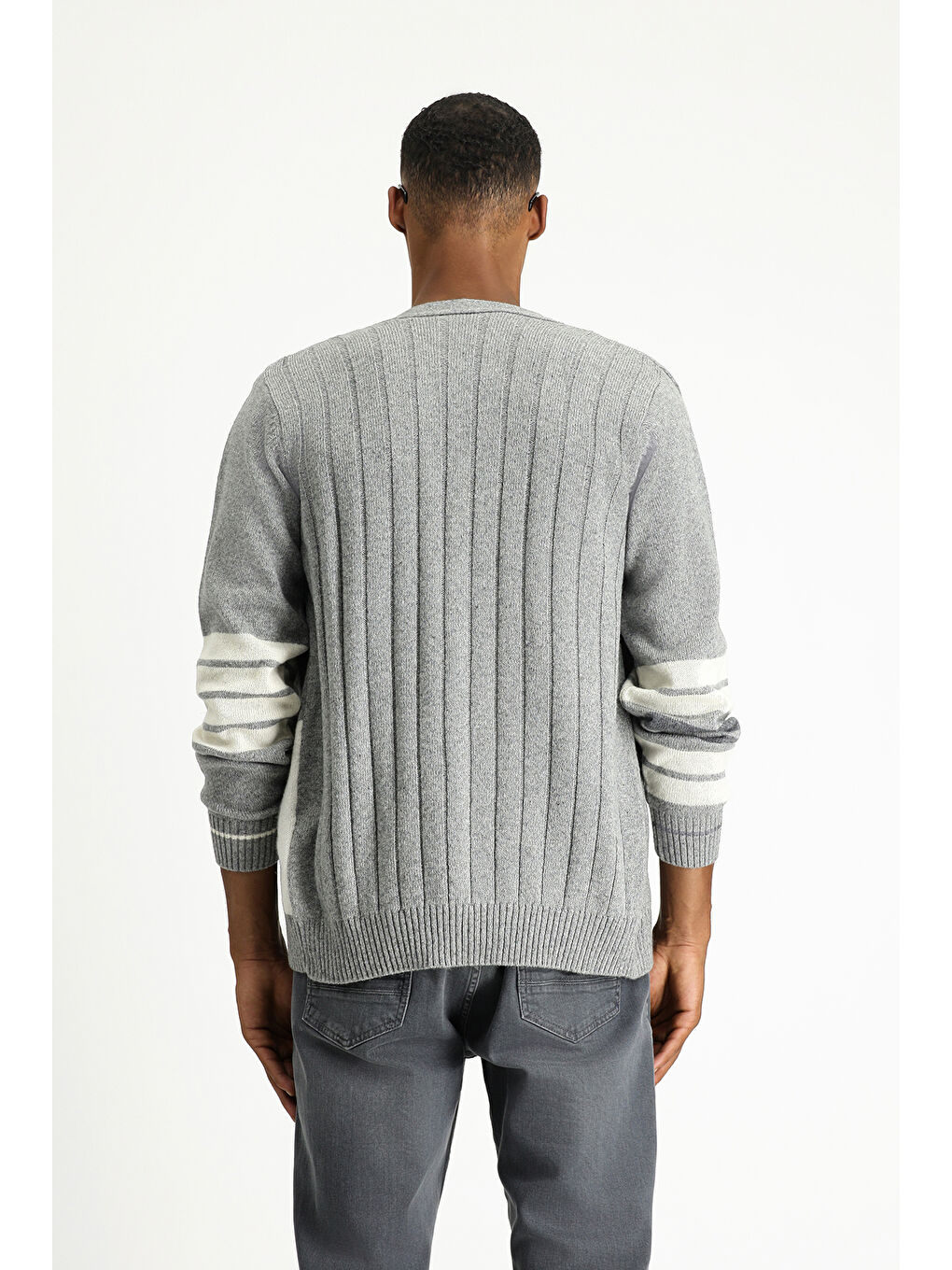 ژاکت بافتنی طرح دار پشمی خاکستری