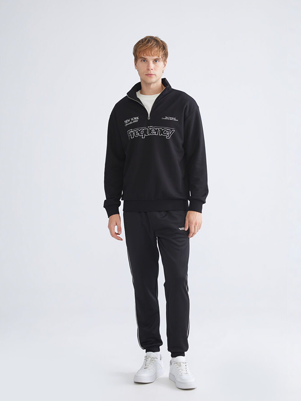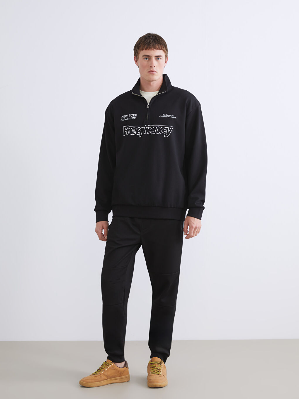 سویشرت مردانه طرحدار یقه ایستاده مشکی