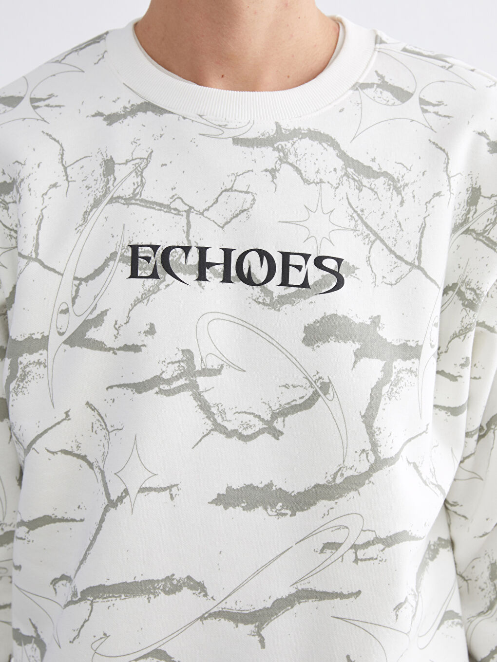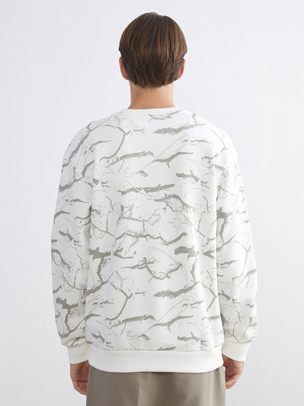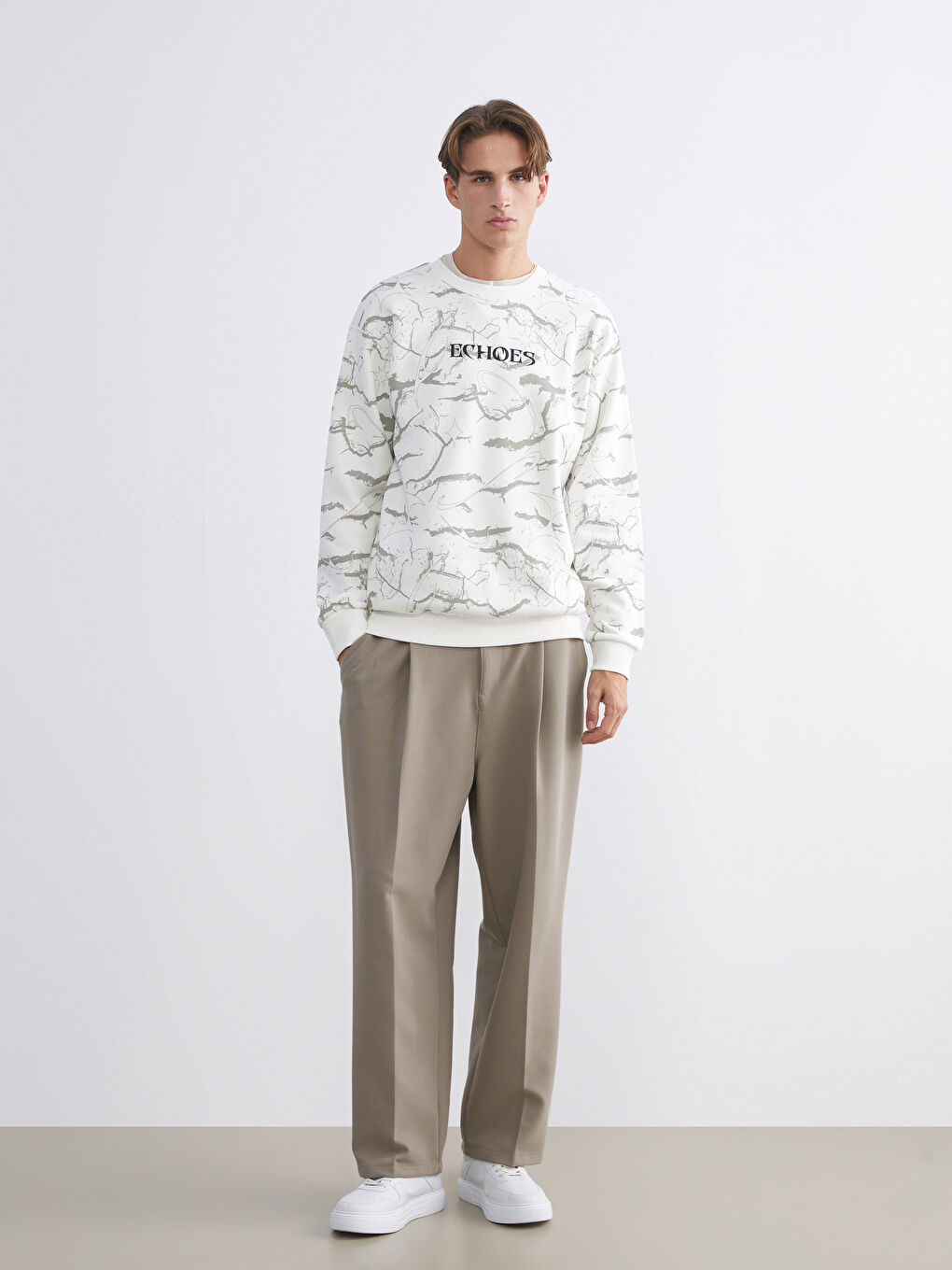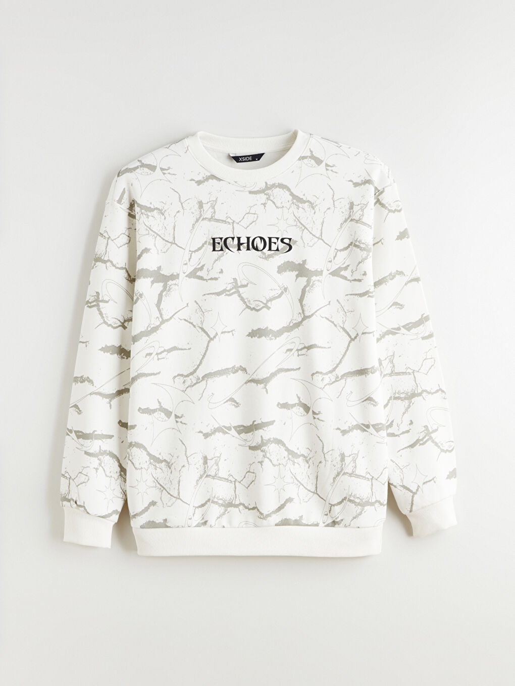 سویشرت مردانه طرحدار یقه گرد Ecru