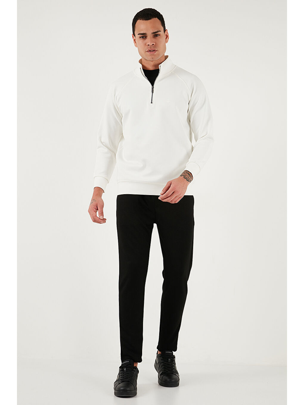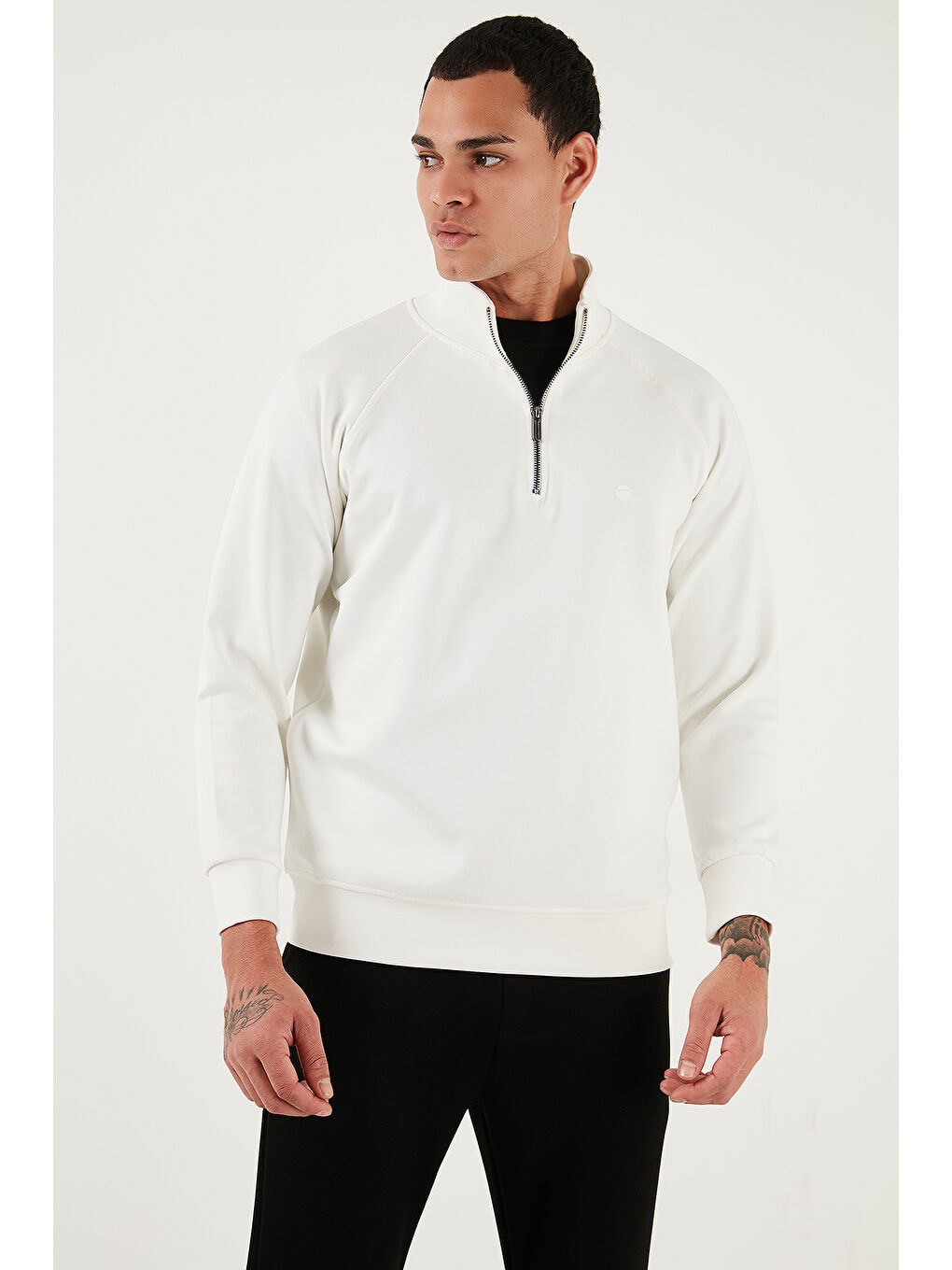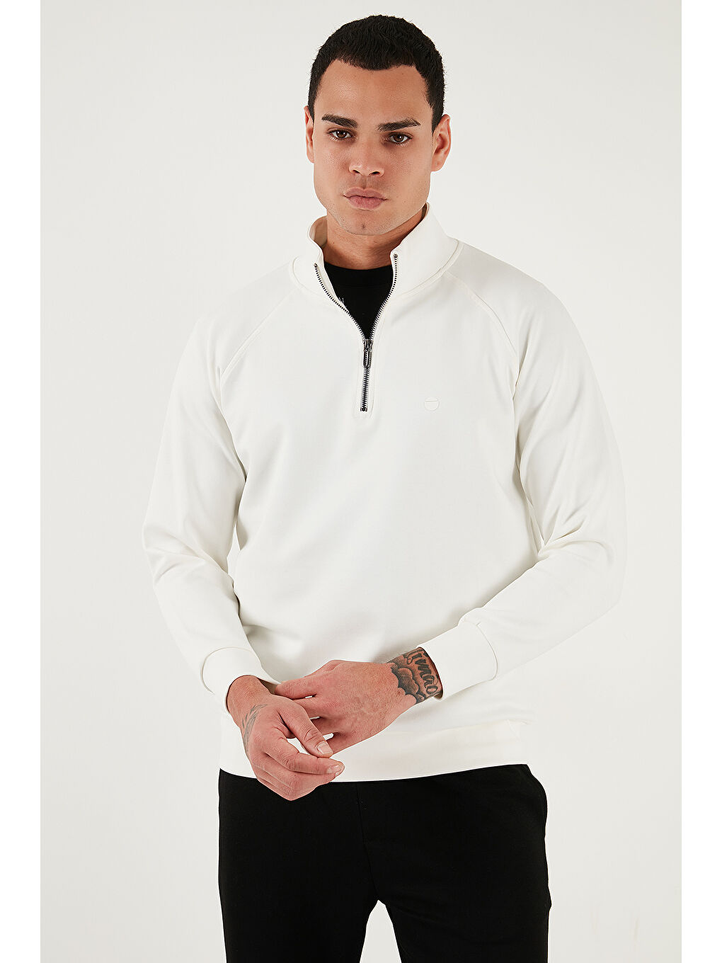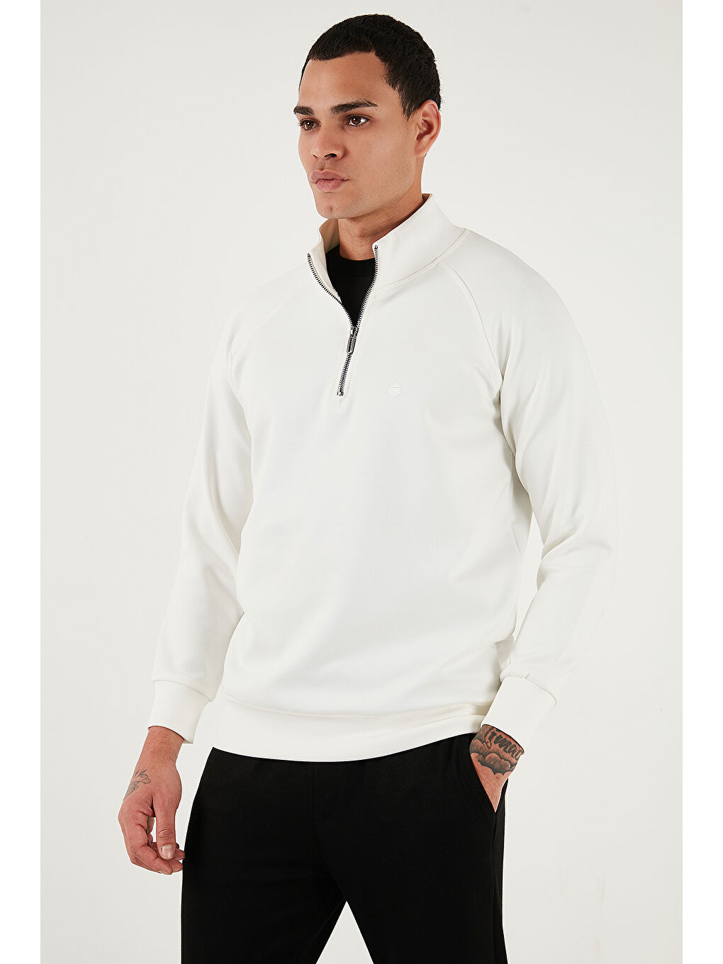 سویشرت یقه ایستاده نیم زیپ نخی رنگ کرم روشن کد ۵۹۰۱۲۳۲